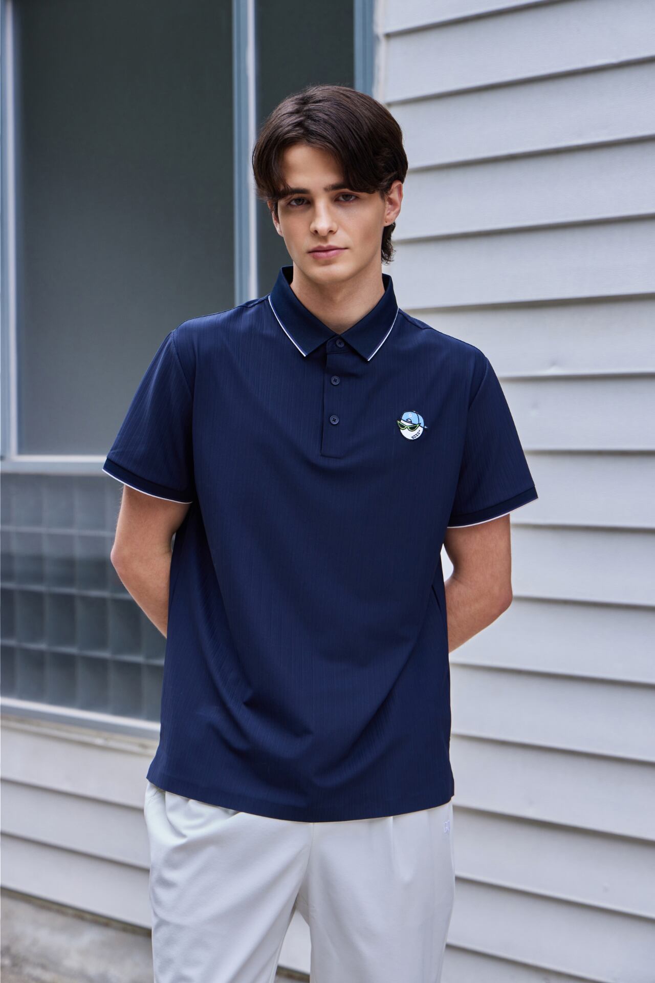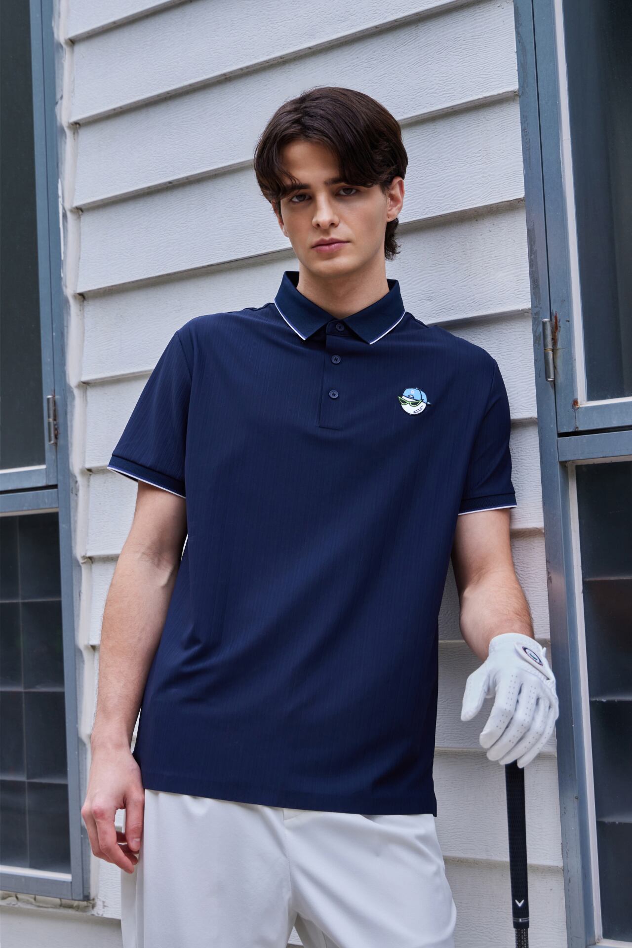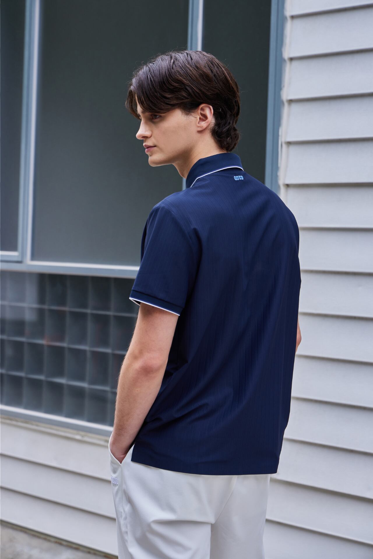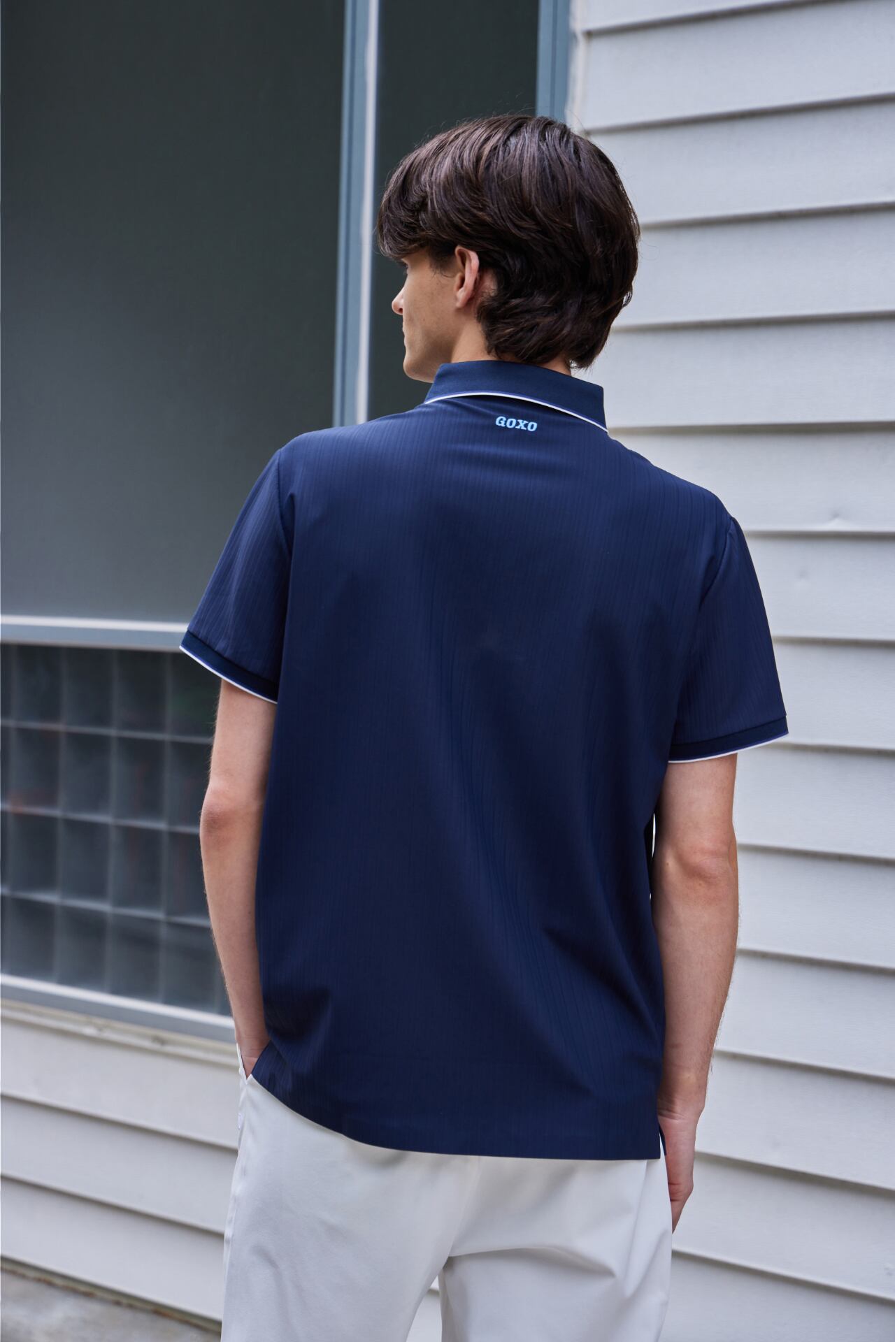 ストライプテクスチャーがほのかに生きている機能性半袖カラーTシャツです。