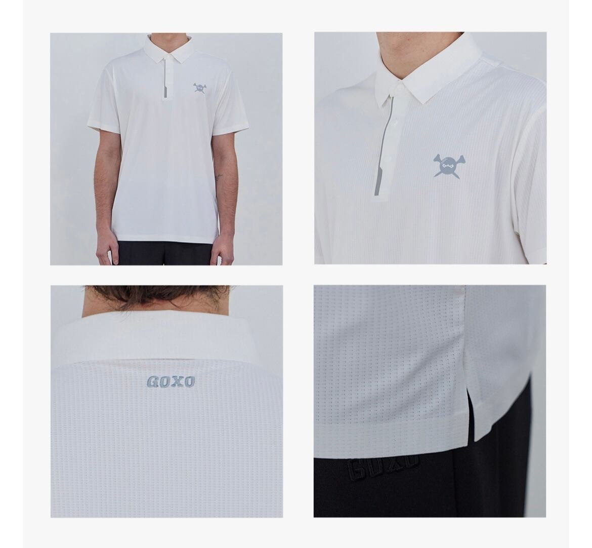 軽くて通気性に優れた素材で夏のラウンドに最適化されており、前面ロゴ転写と背面GOXO刺繍でブランドアイデンティティを強調しました。