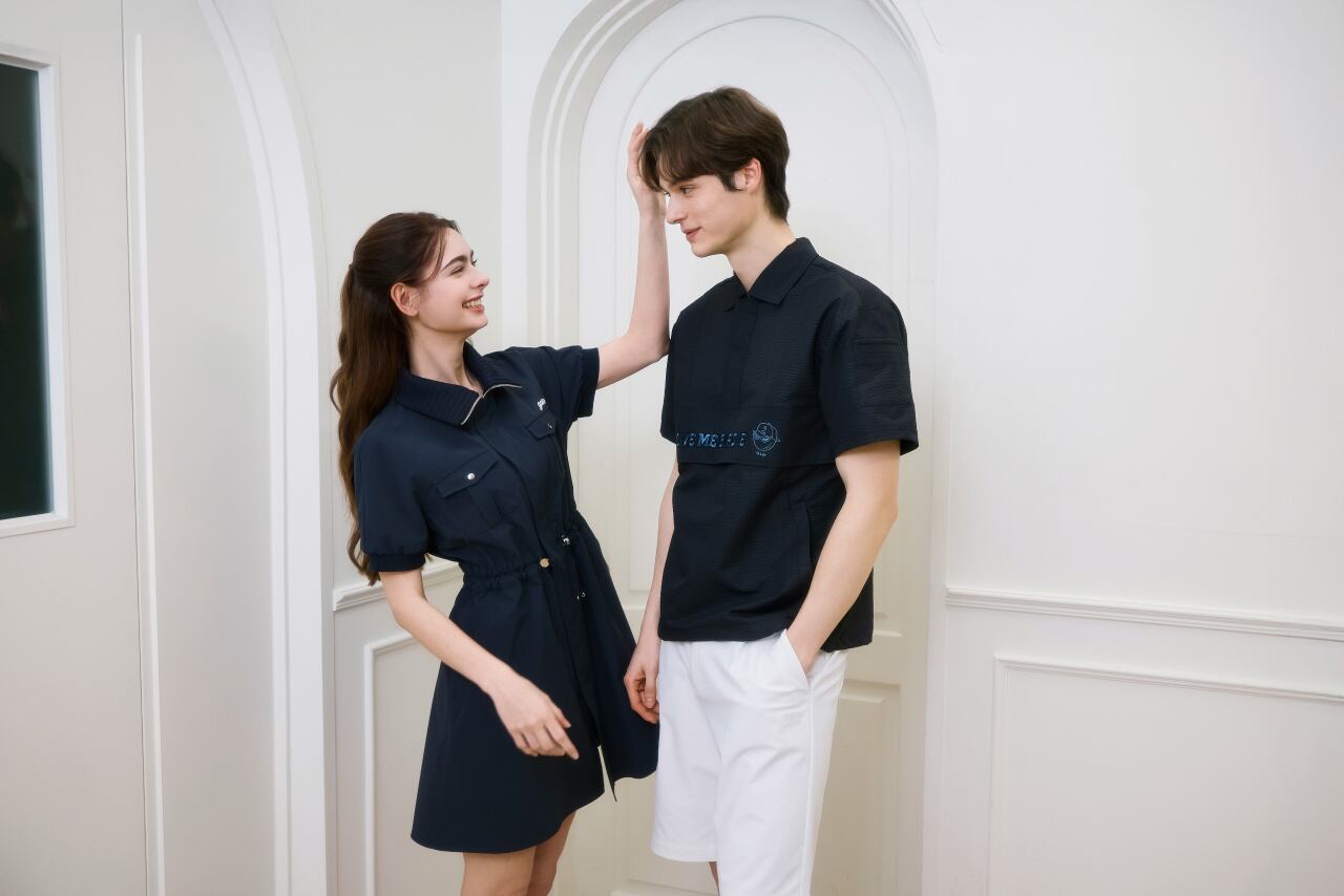 前のパネルにGOXOのシグネチャー刺繍と斜線切開のディテールでポイントを与えました。