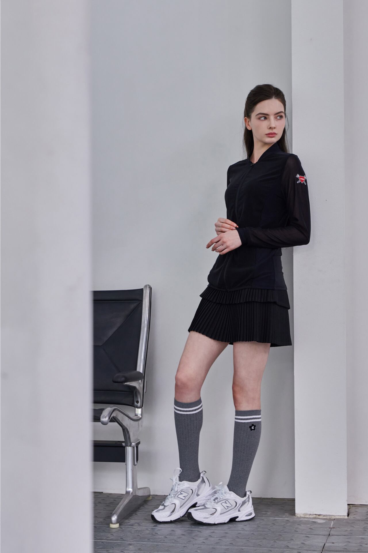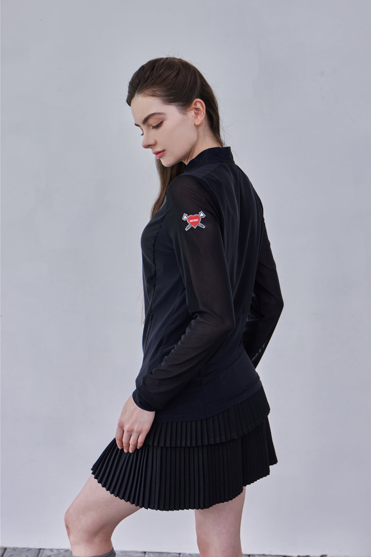 GOXO ゴーエックスオー ハートアタックメッシュスリーブジップアップ ブラック