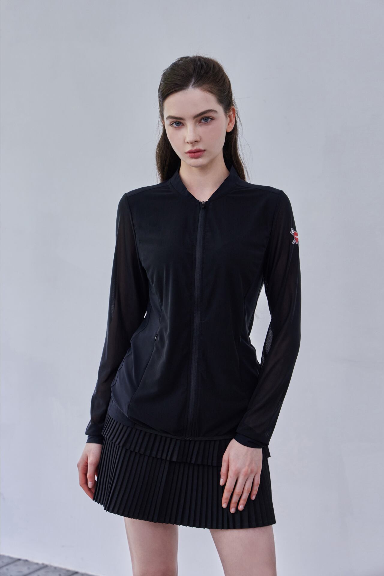 切開ラインでスリムなフィットで演出され、軽い着用感の機能性ジップアップです。