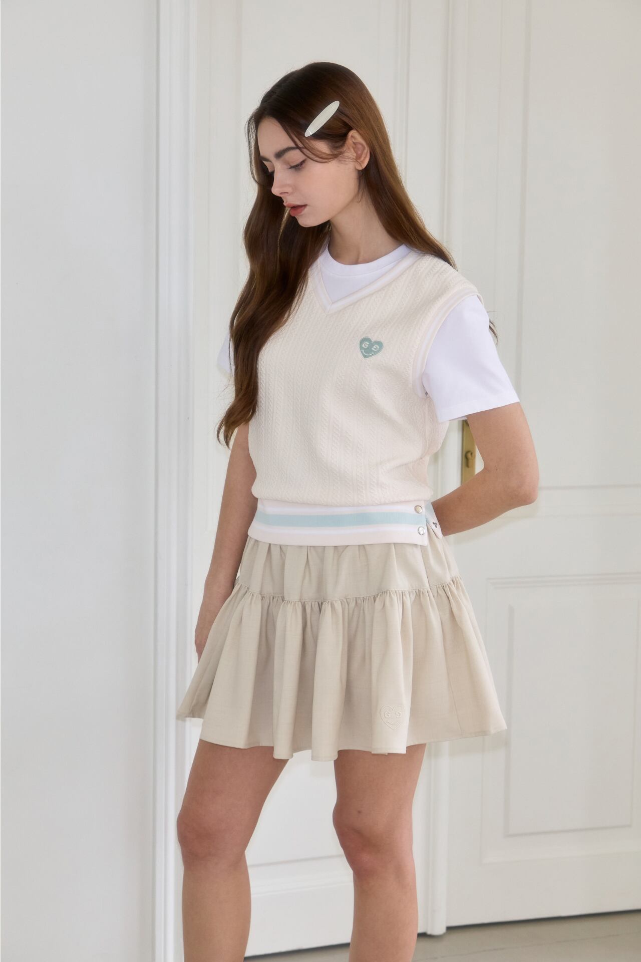 GOXO ゴーエックスオー ゴルフウェア スマイルハートザガードVネックベスト クリーム