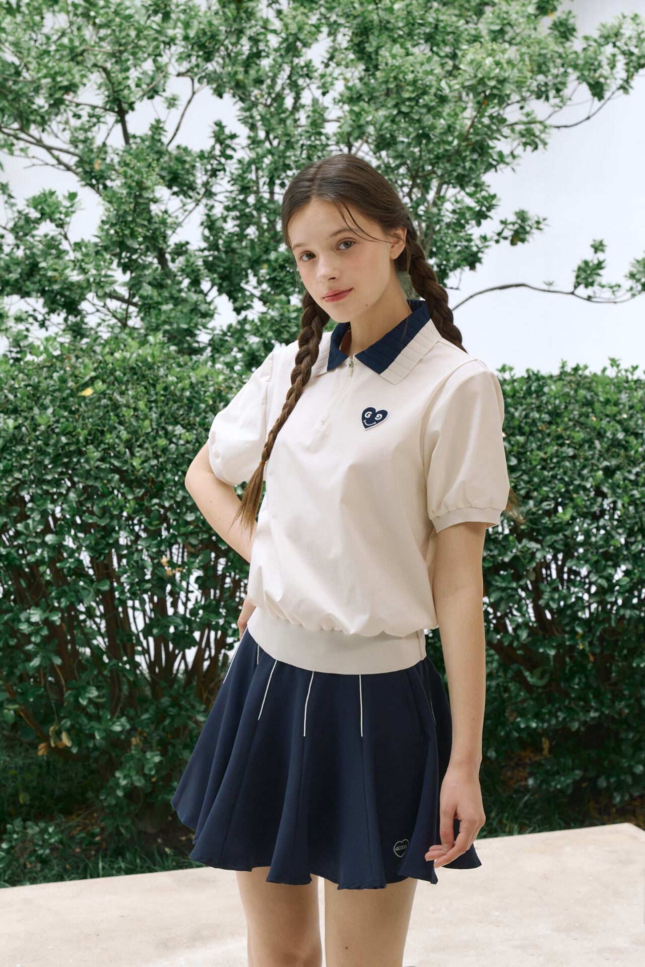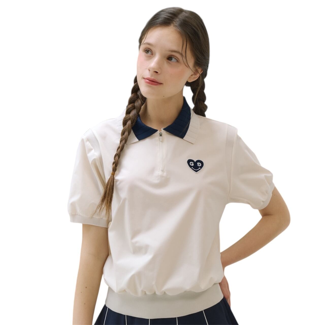 GOXO ゴーエックスオー ゴルフウェア スマイルハート半袖Tシャツ クリーム