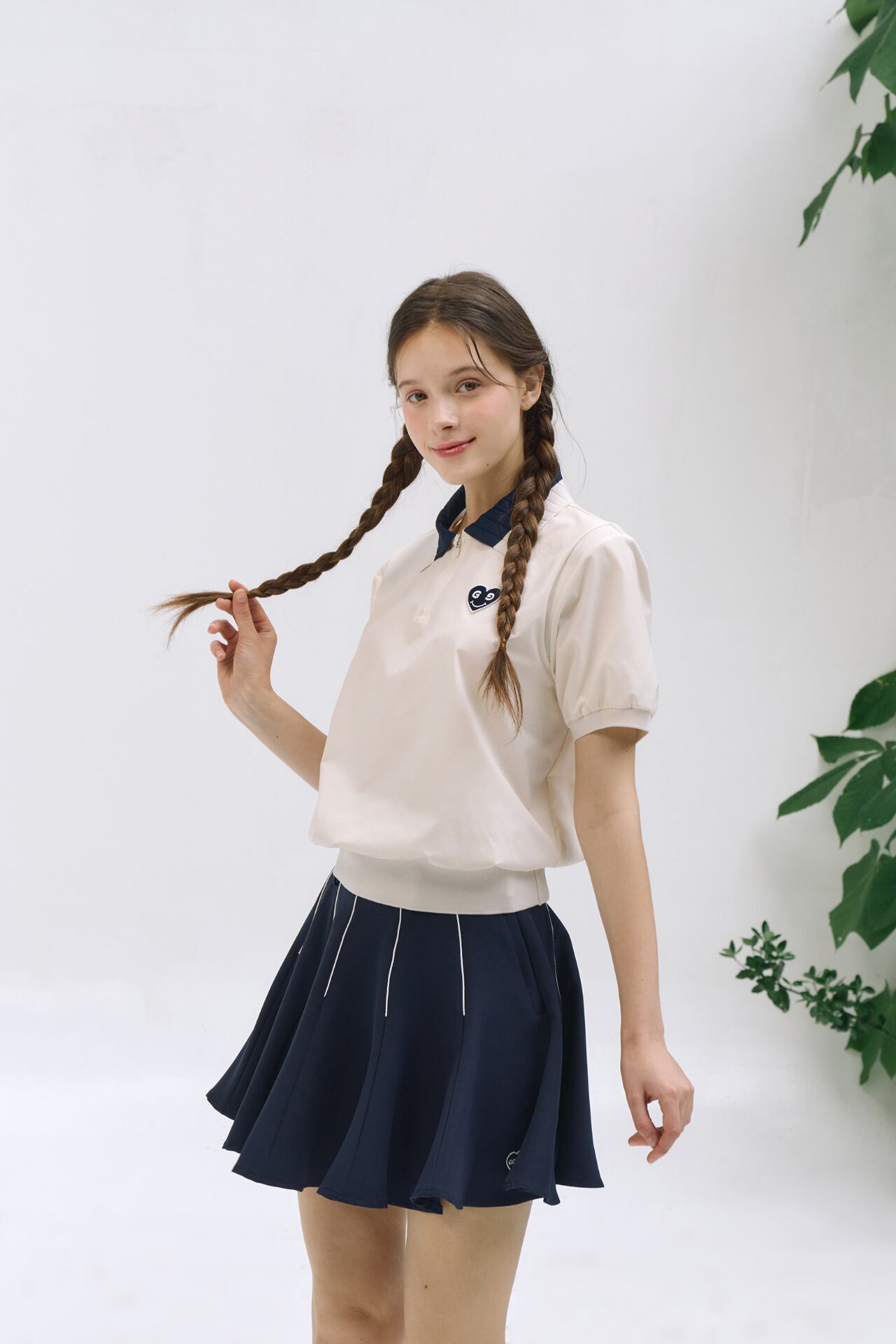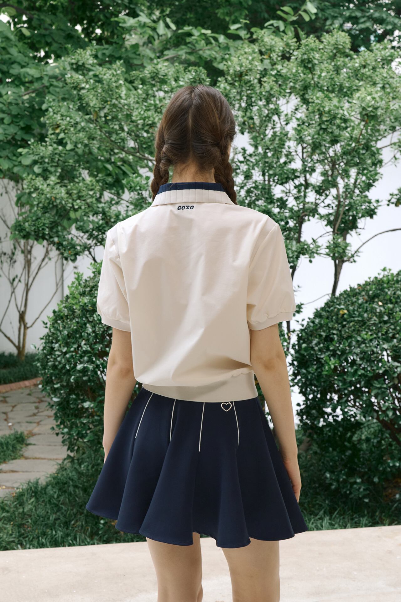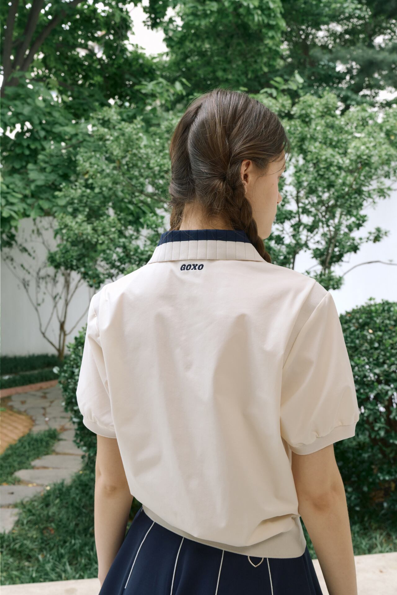 袖口と裾にはしっかりとしたフラットニットで仕上げ、安定したフィット感を味わい、後ろの首元にはGOXOの刺繍も施され、ネックラインの配色ポイントでカジュアルなムードを感じる事ができます。