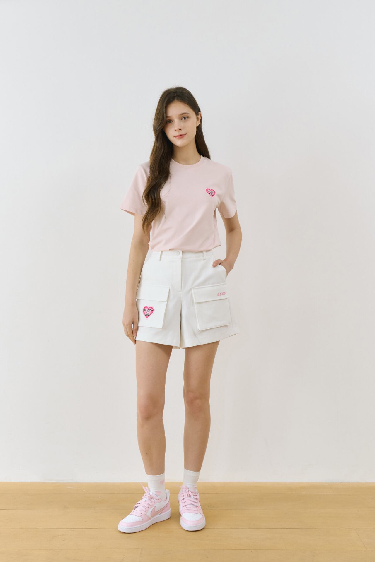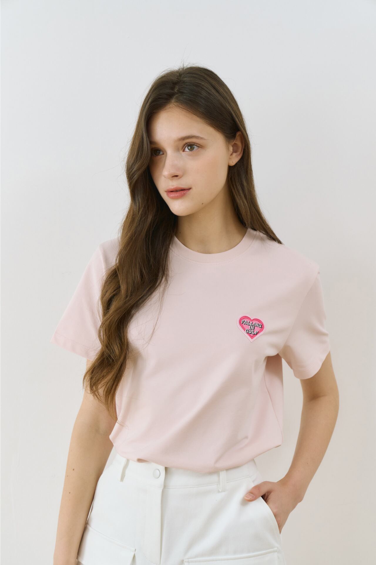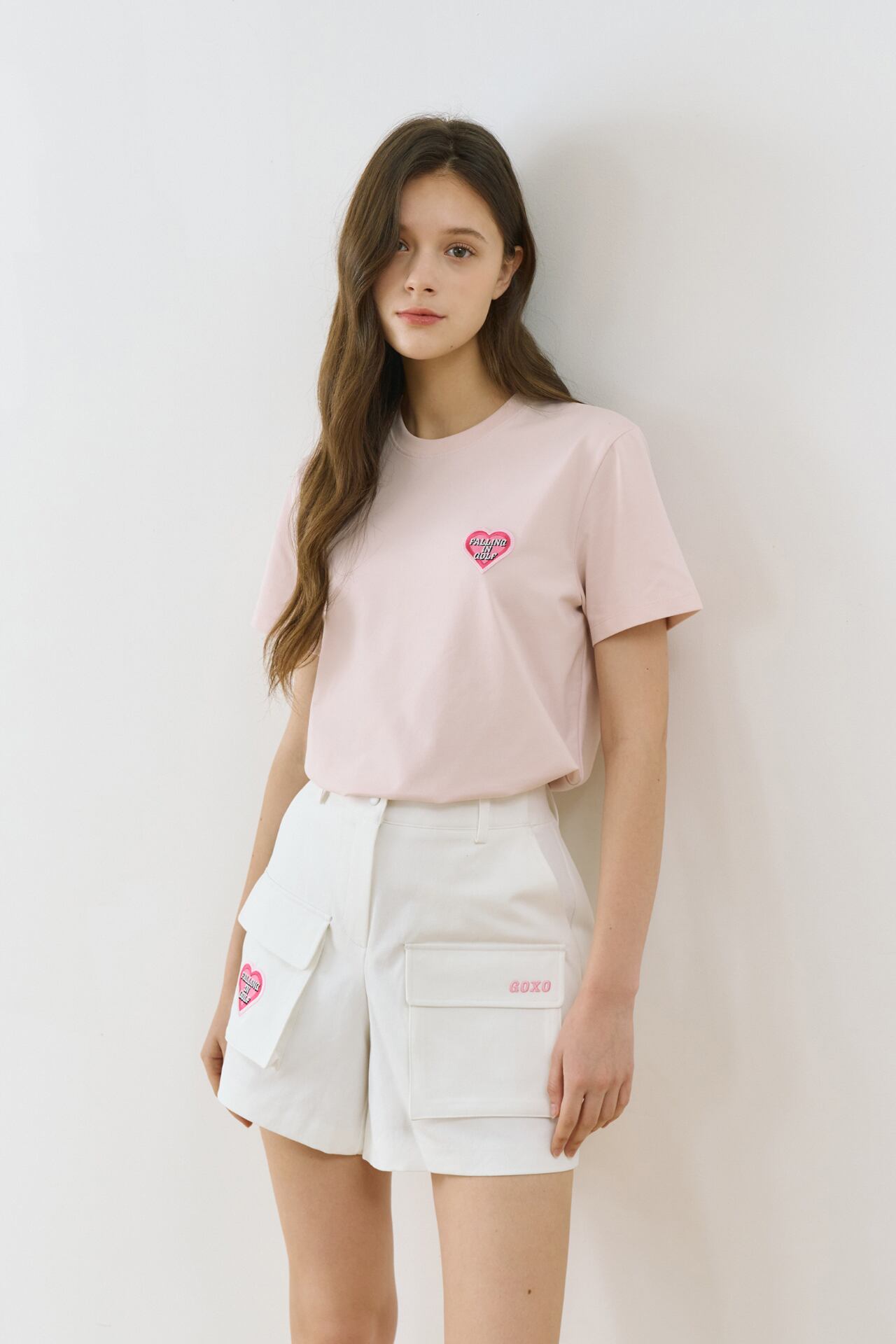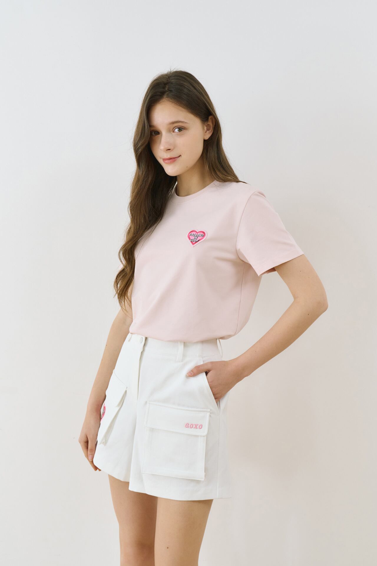 刺繍及びナヨムでポイントを与えたカジュアルな外観にコットンポリがミックスされた糸を使って柔らかいタッチ感と吸湿速乾機能がある半袖Tシャツです。