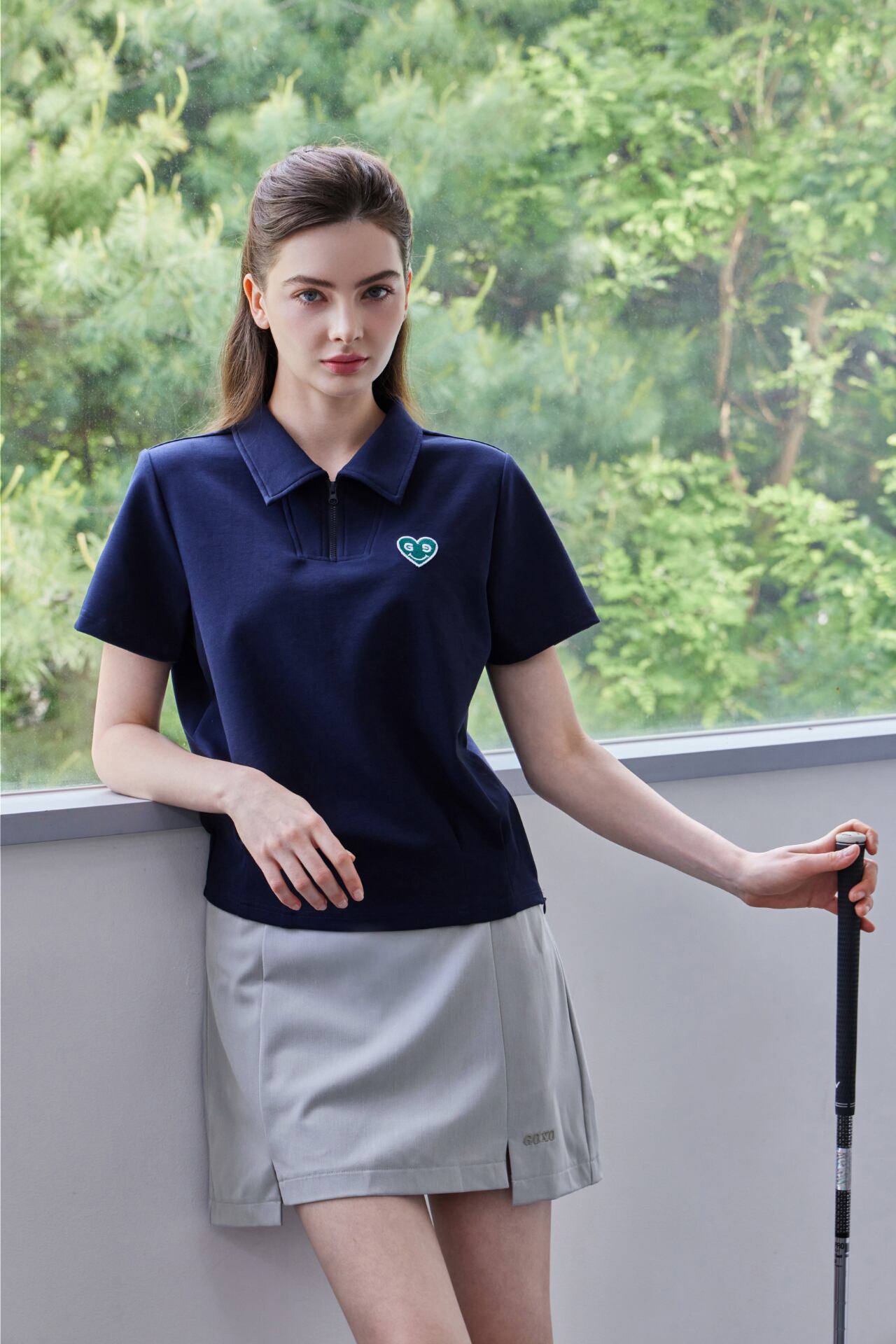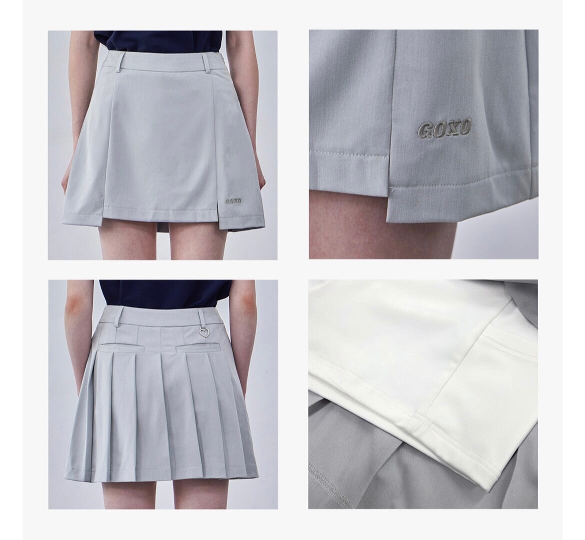 前後が違うデザインで二つのムードを演出できるゴルフスカートです。
