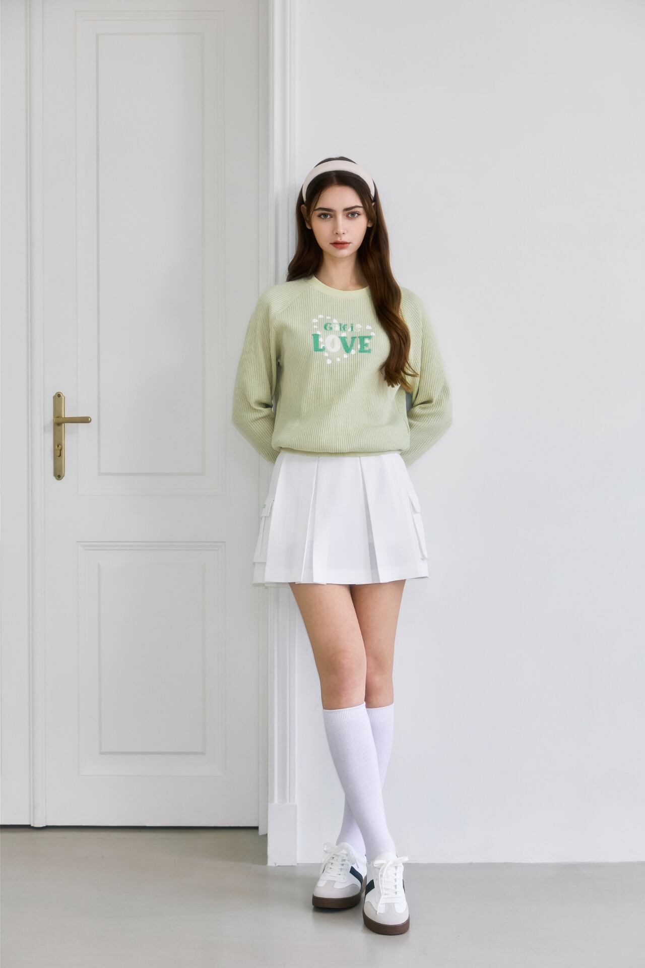 GOXO ゴーエックスオー ゴルフウェア レタリングツーポケット プリーツスカー ホワイト