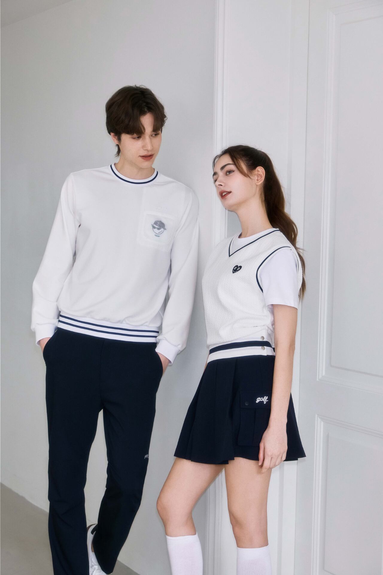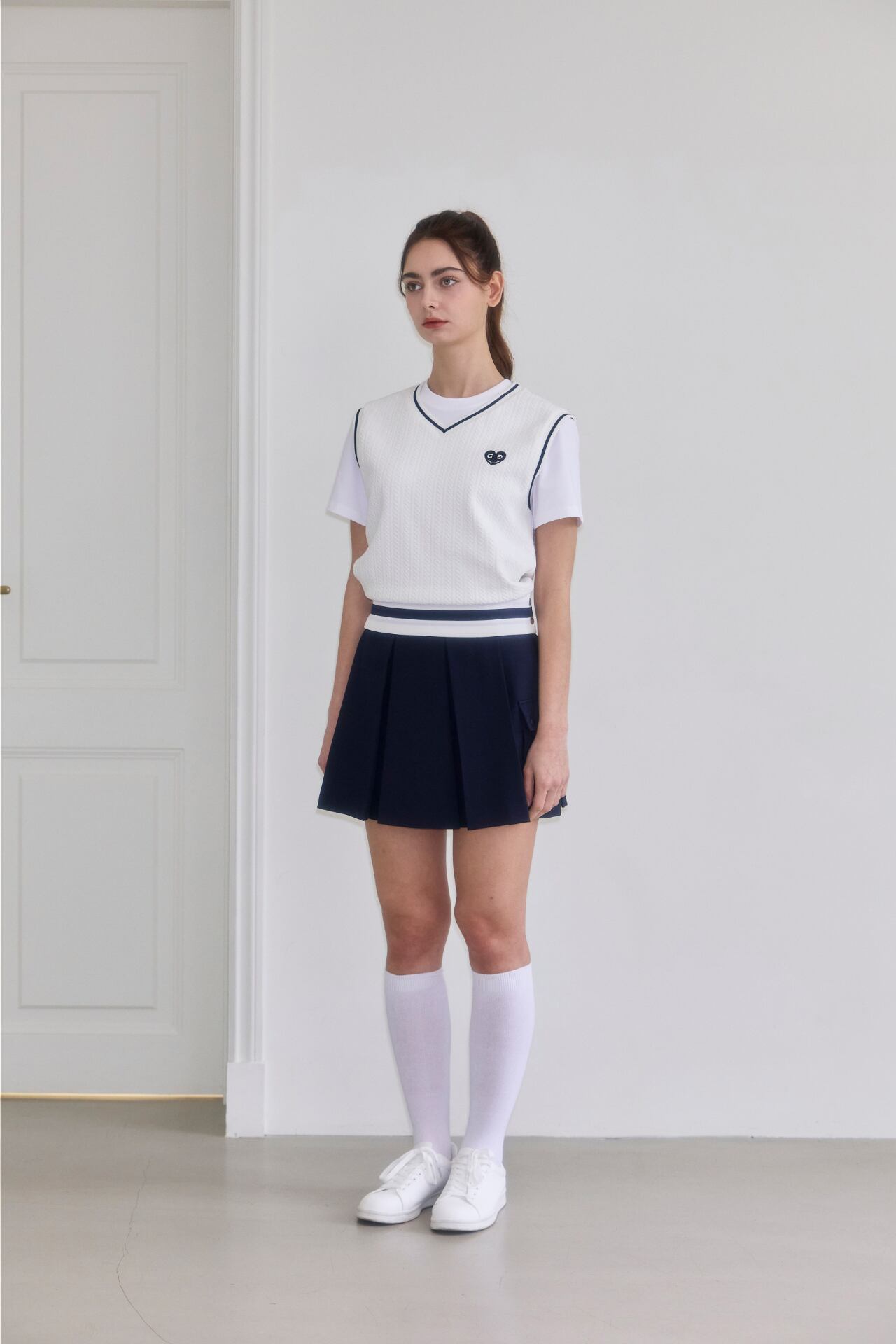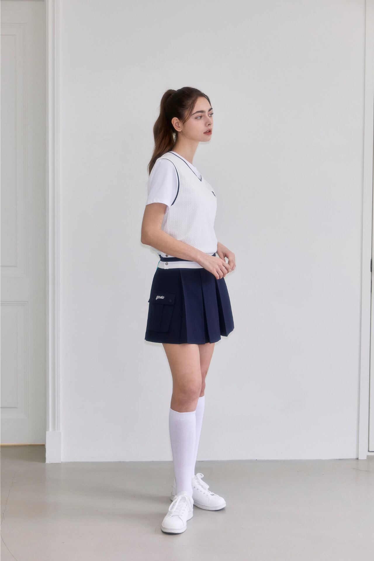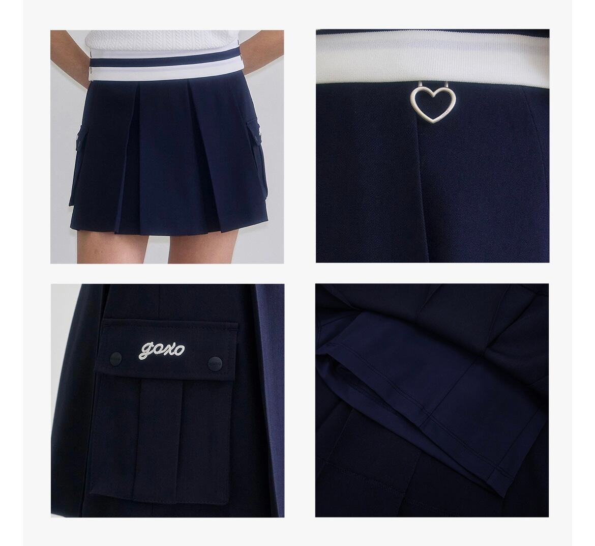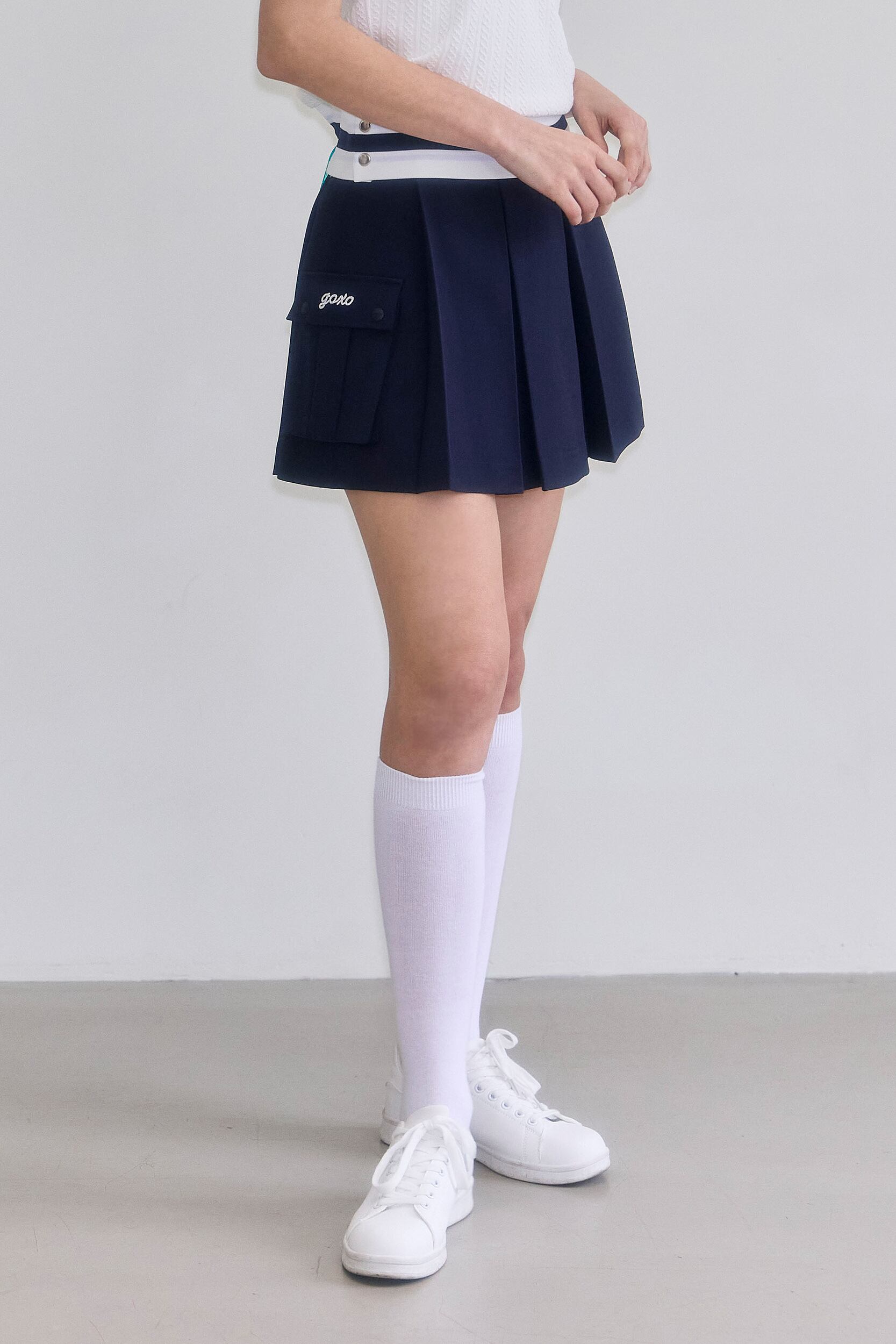 GOXO ゴーエックスオー ゴルフウェア レタリングツーポケット プリーツスカー ネイビー