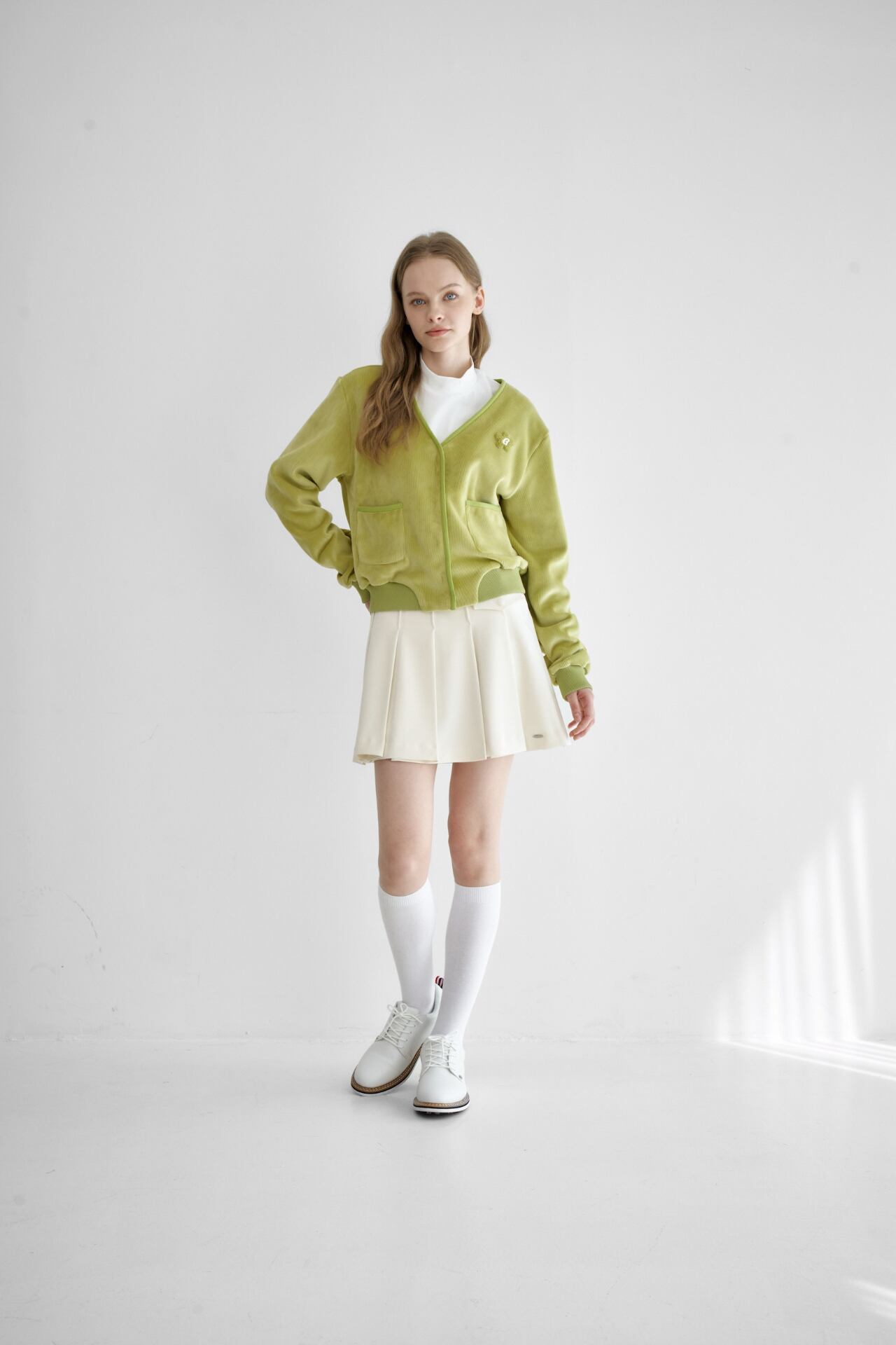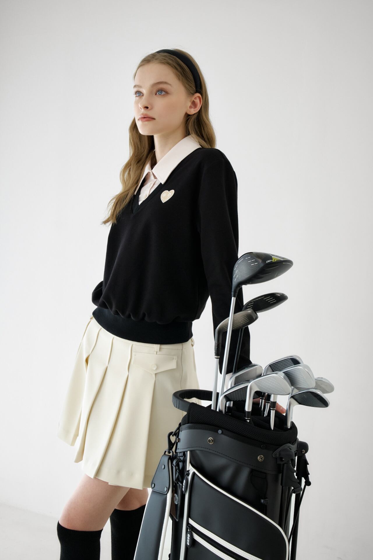 GOXO ゴーエックスオー ゴルフウェア メタルロゴフラッププリーツスカート アイボリー