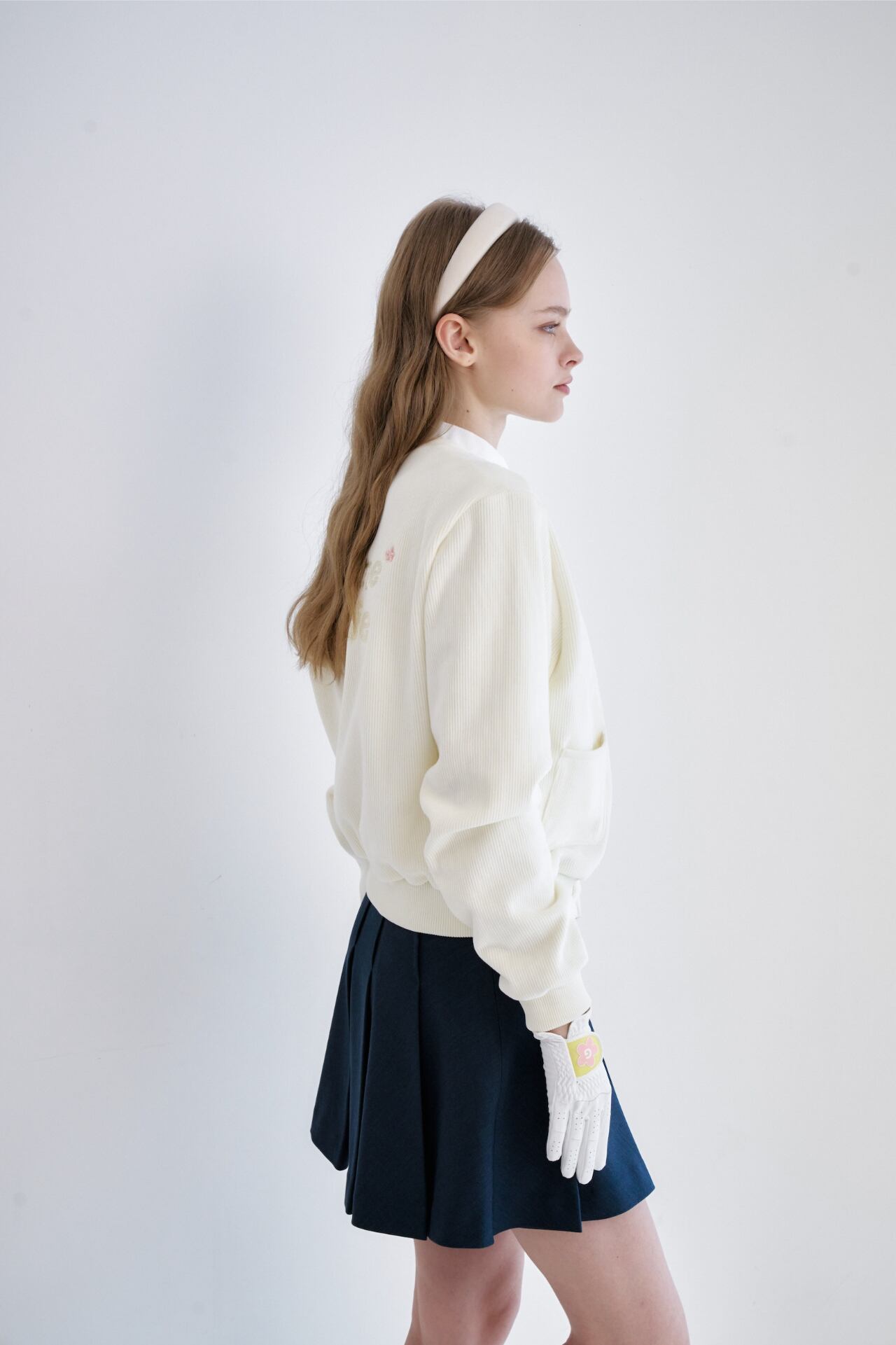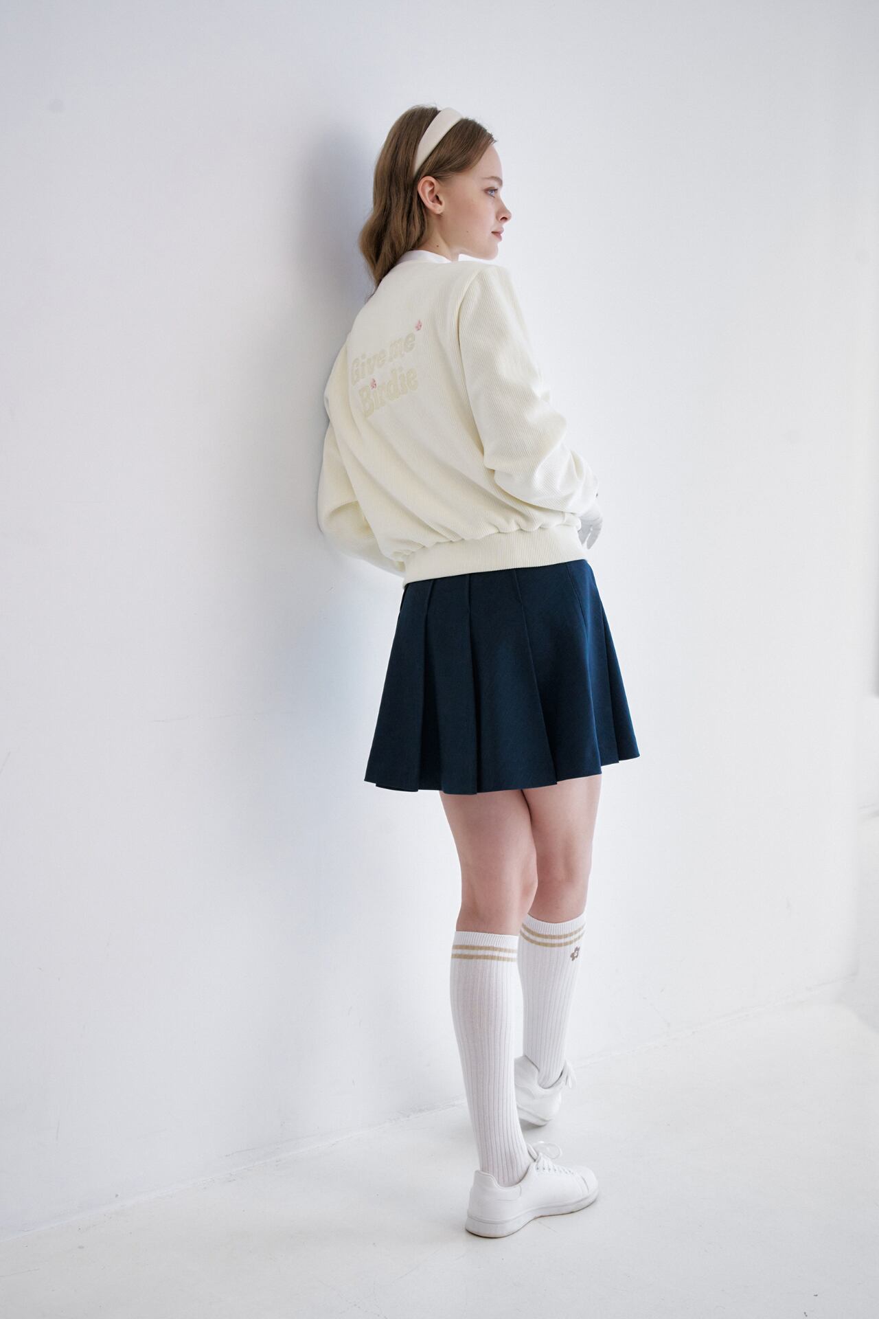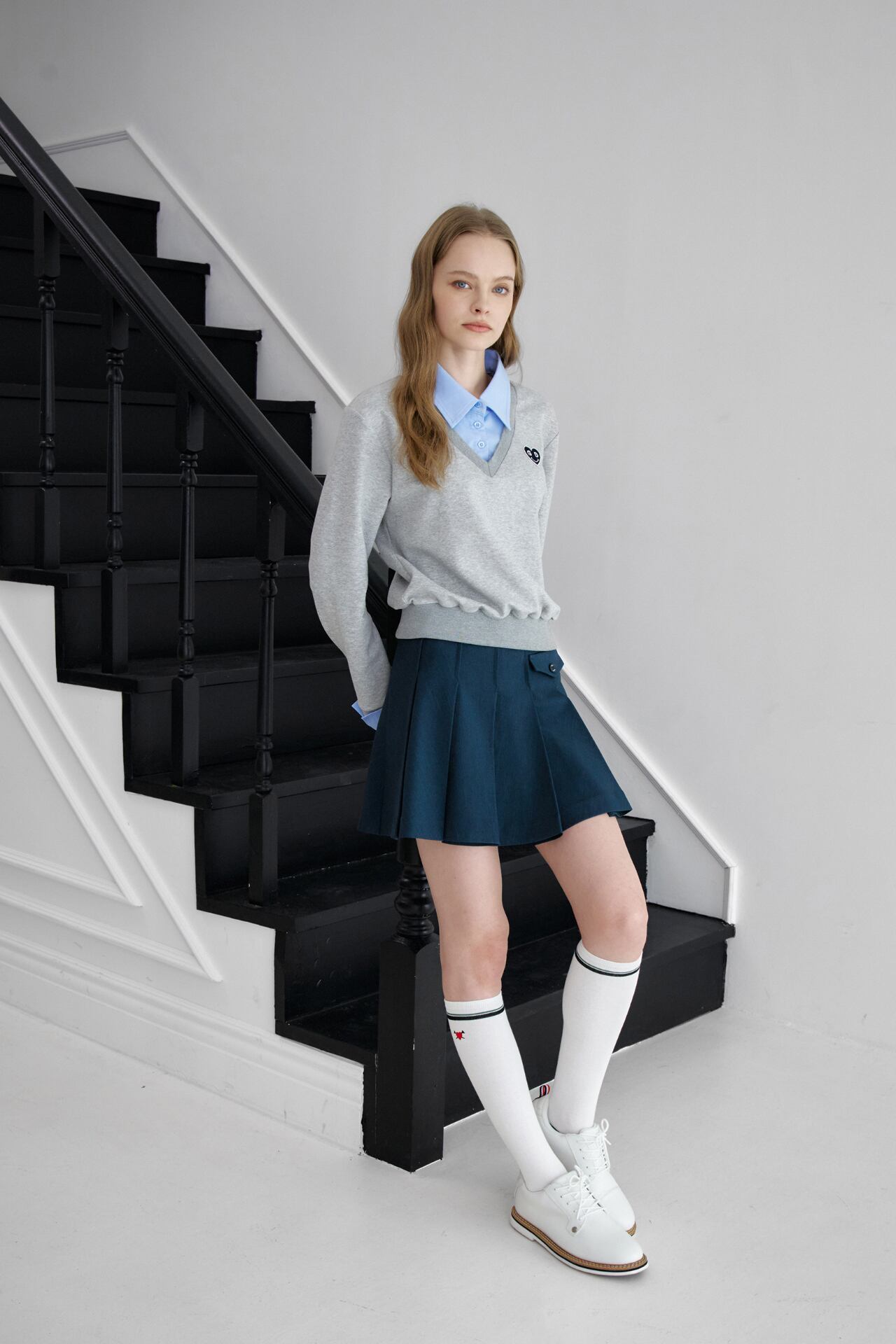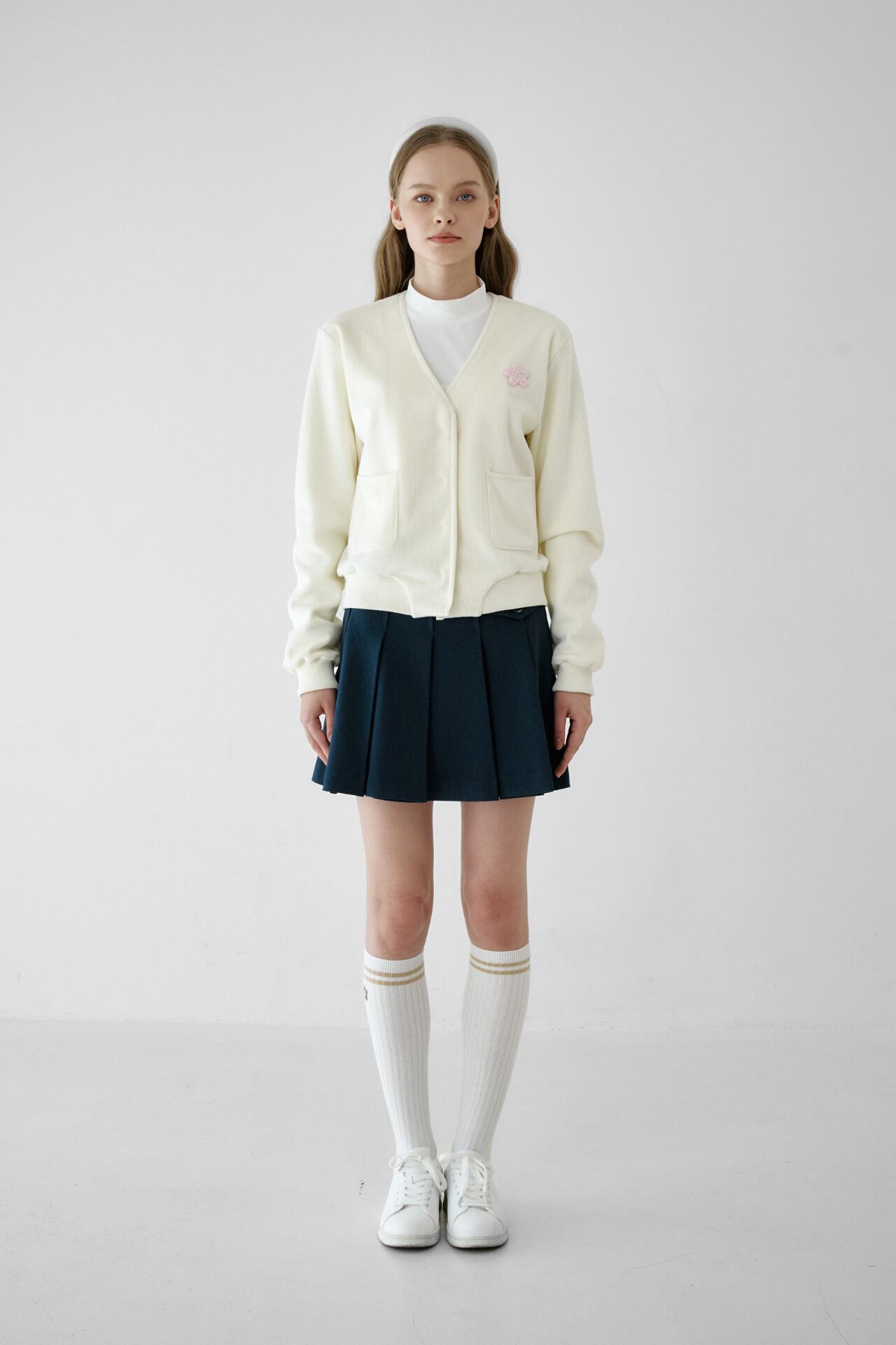すっきりと落ちるプリーツラインで軽快なムードを感じることができ、メタルロゴのディテールでブランドのアイデンティティを表現し、クラシックで高級感を漂わせます。