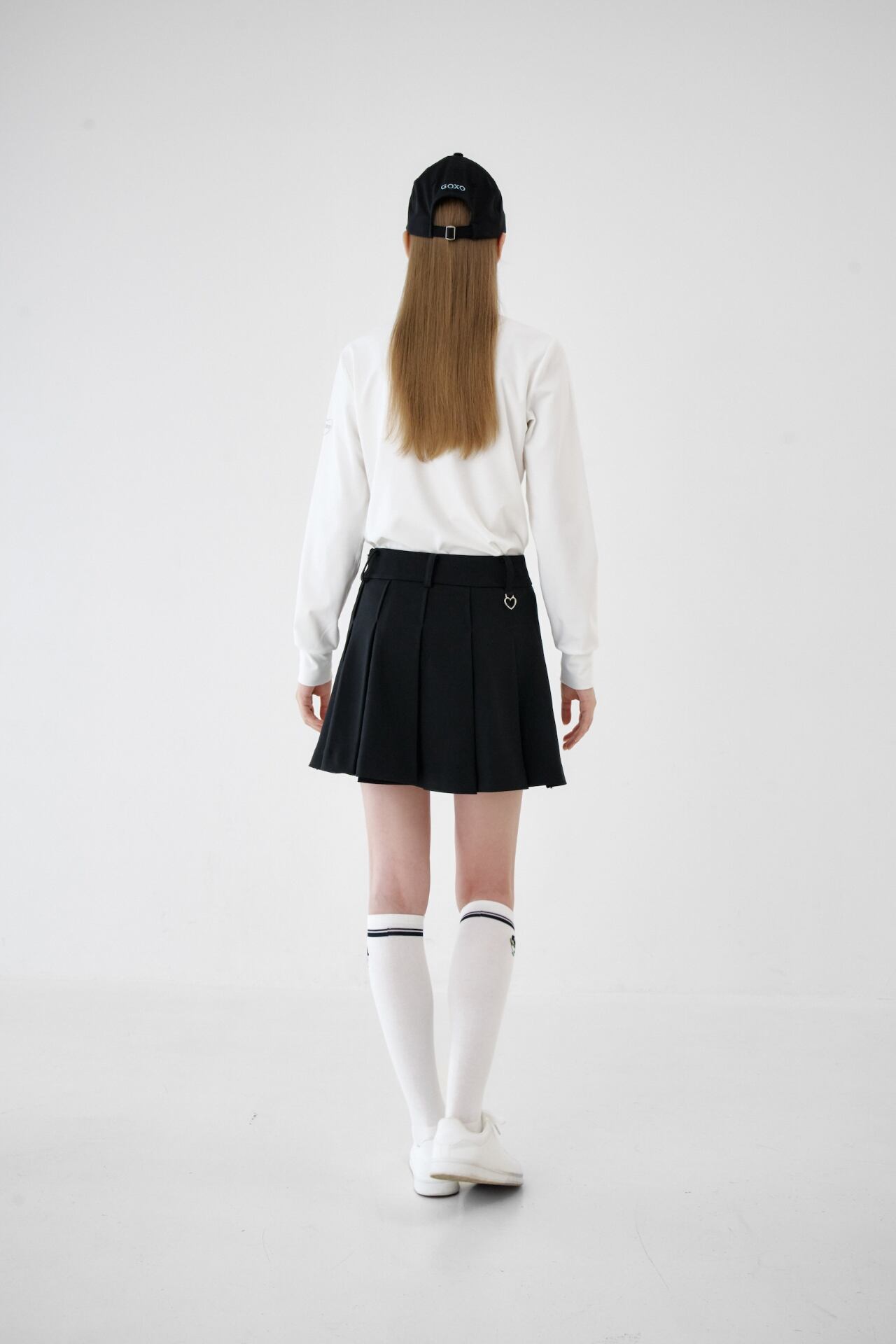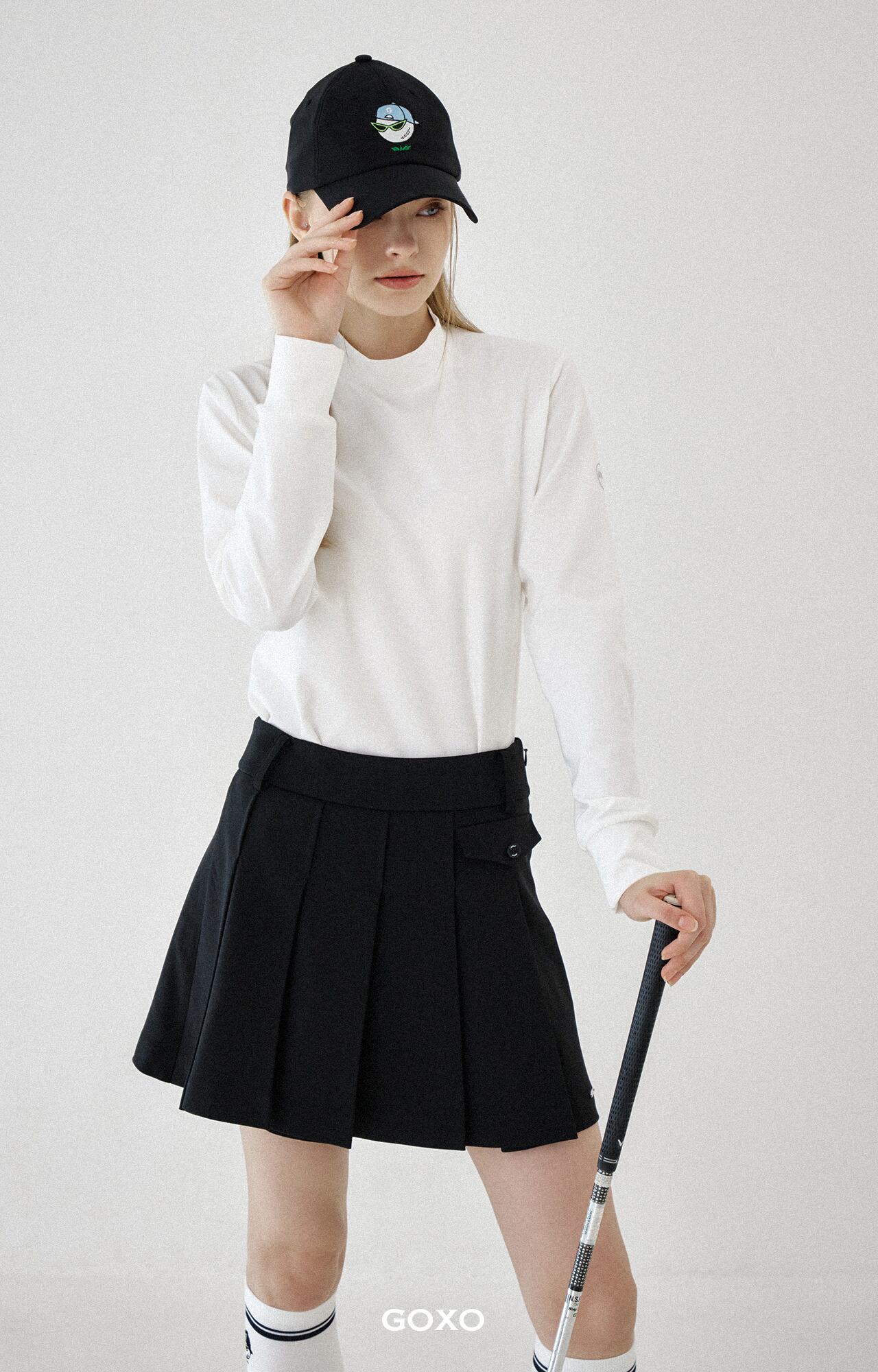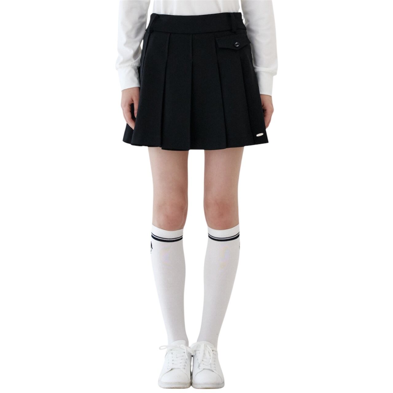 GOXO ゴーエックスオー ゴルフウェア メタルロゴフラッププリーツスカート ブラック