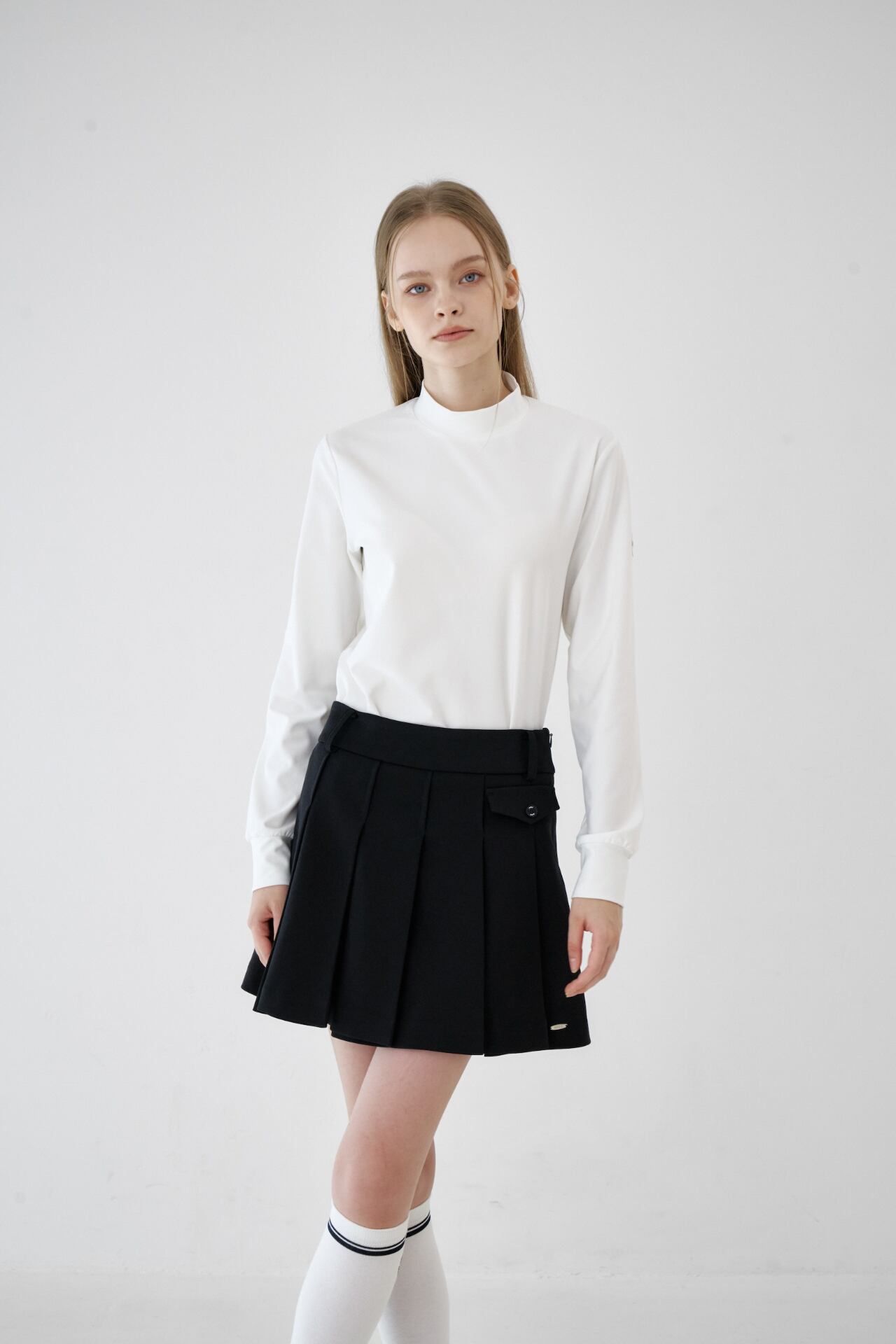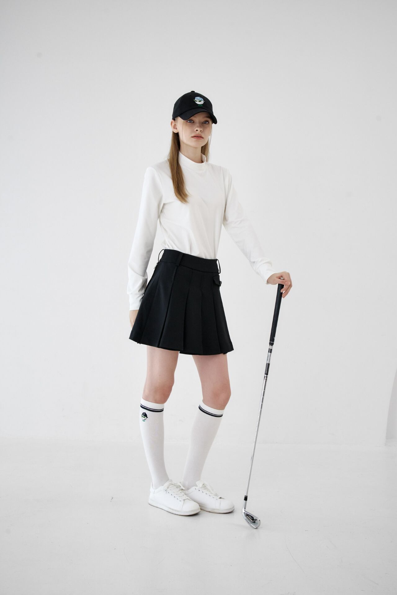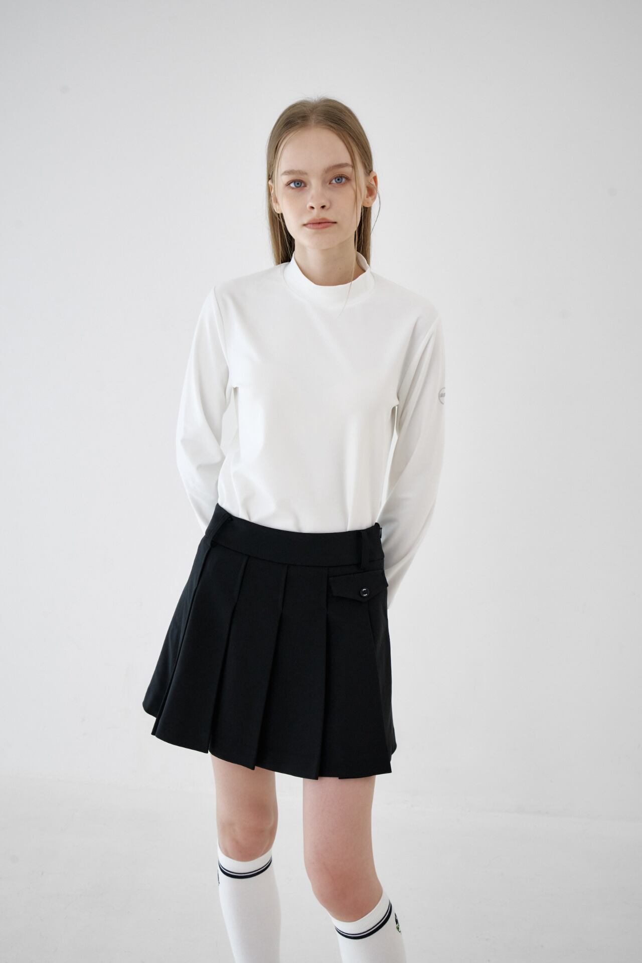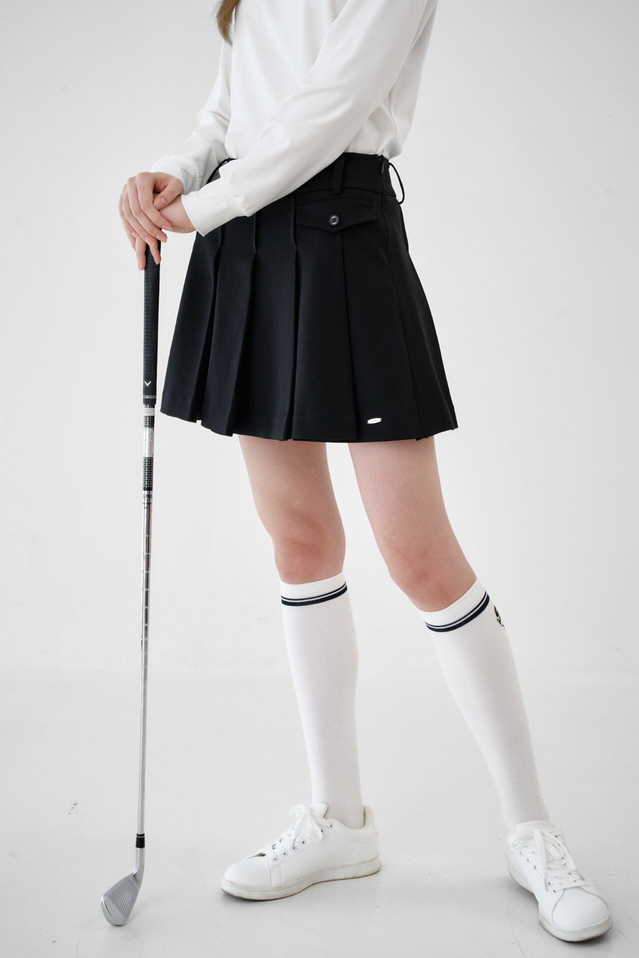 GOXO ゴーエックスオー ゴルフウェア メタルロゴフラッププリーツスカート ブラック