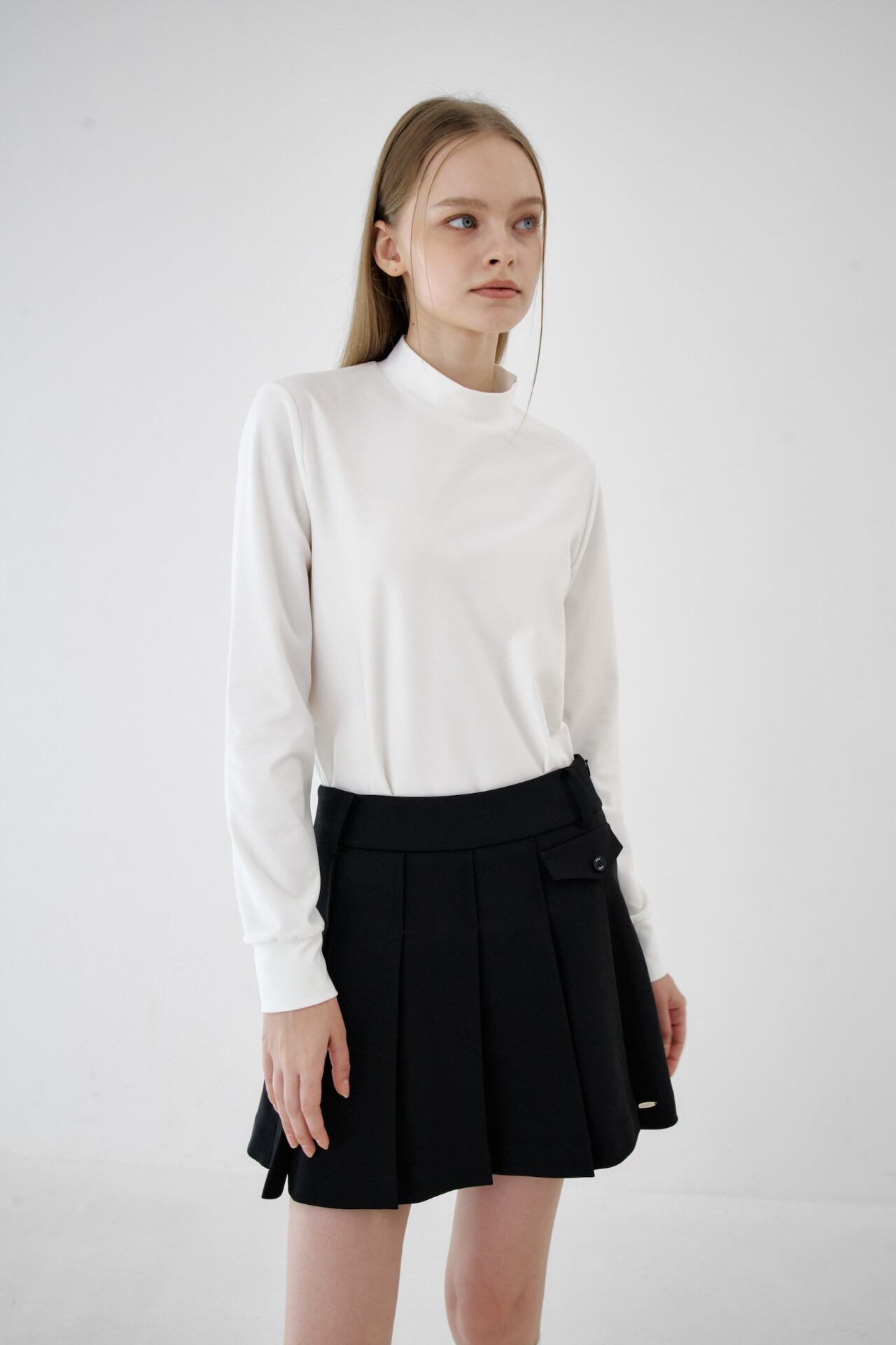 すっきりと落ちるプリーツラインで軽快なムードを感じることができ、メタルロゴのディテールでブランドのアイデンティティを表現し、クラシックで高級感を漂わせます。