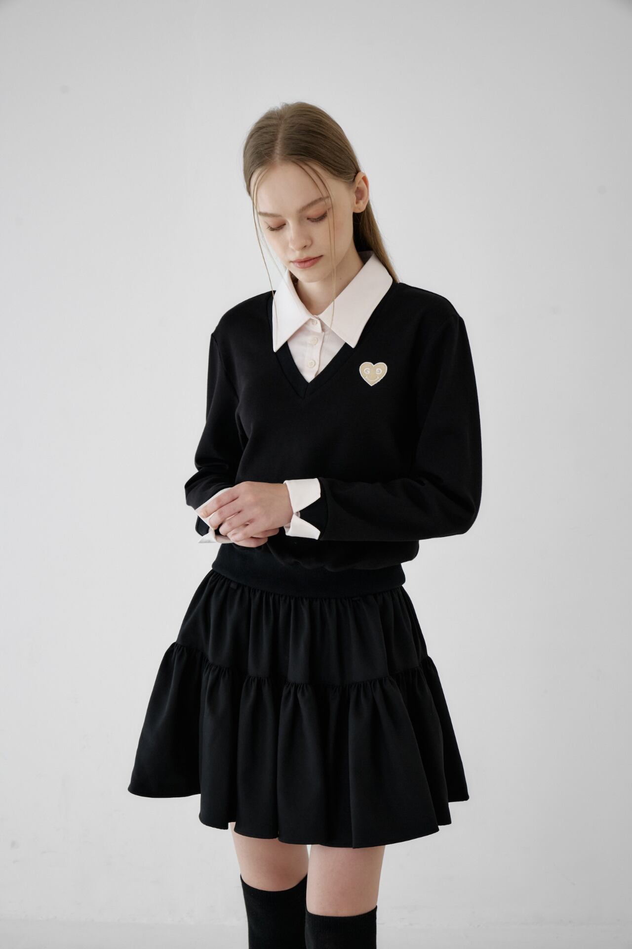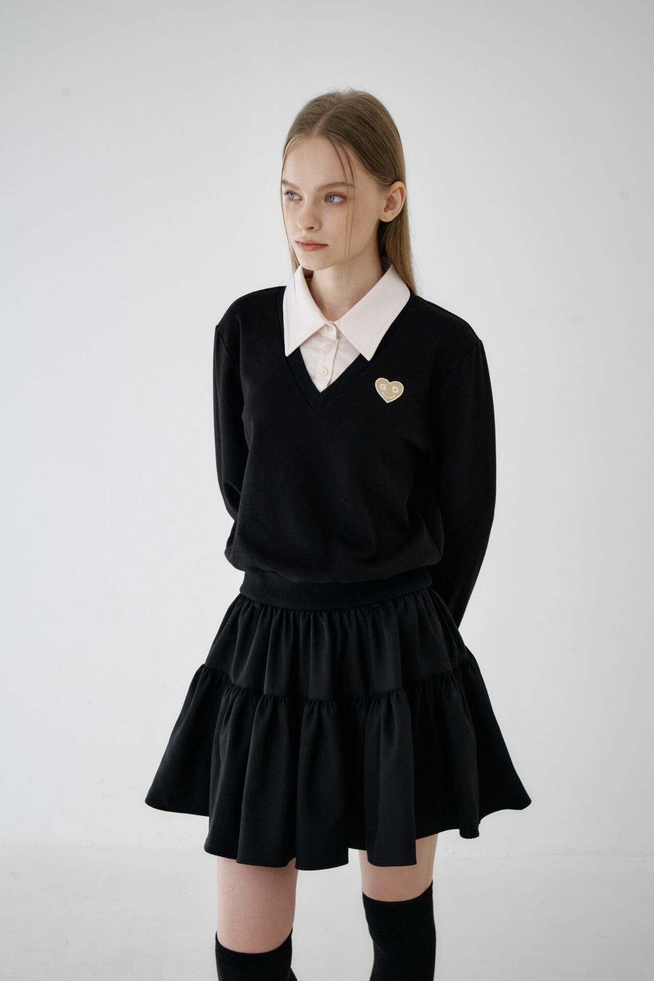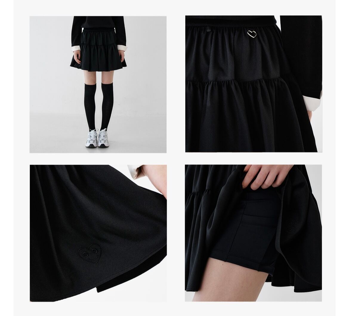 GOXO ゴーエックスオー ゴルフウェア スマイルハートダブルフレアスカート ブラック