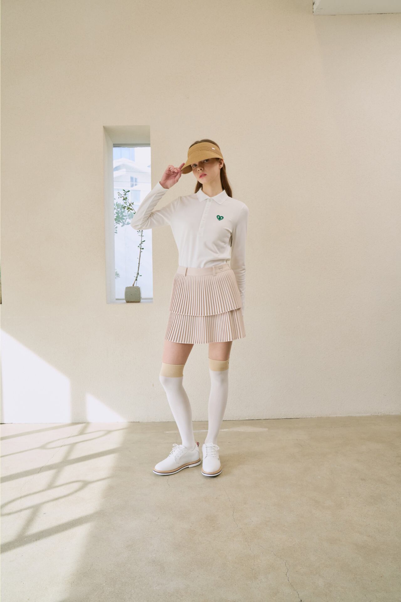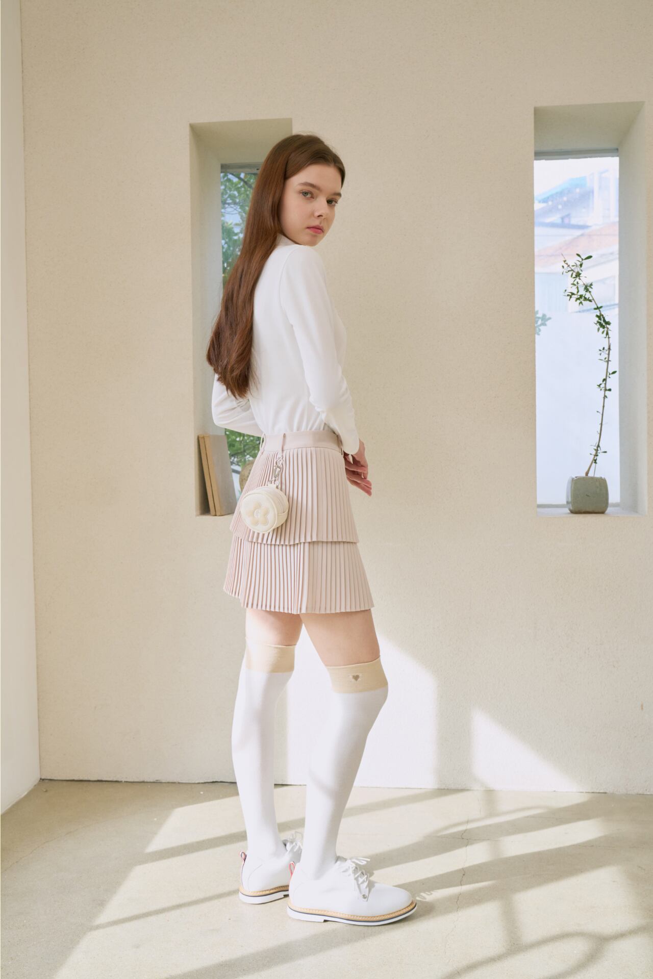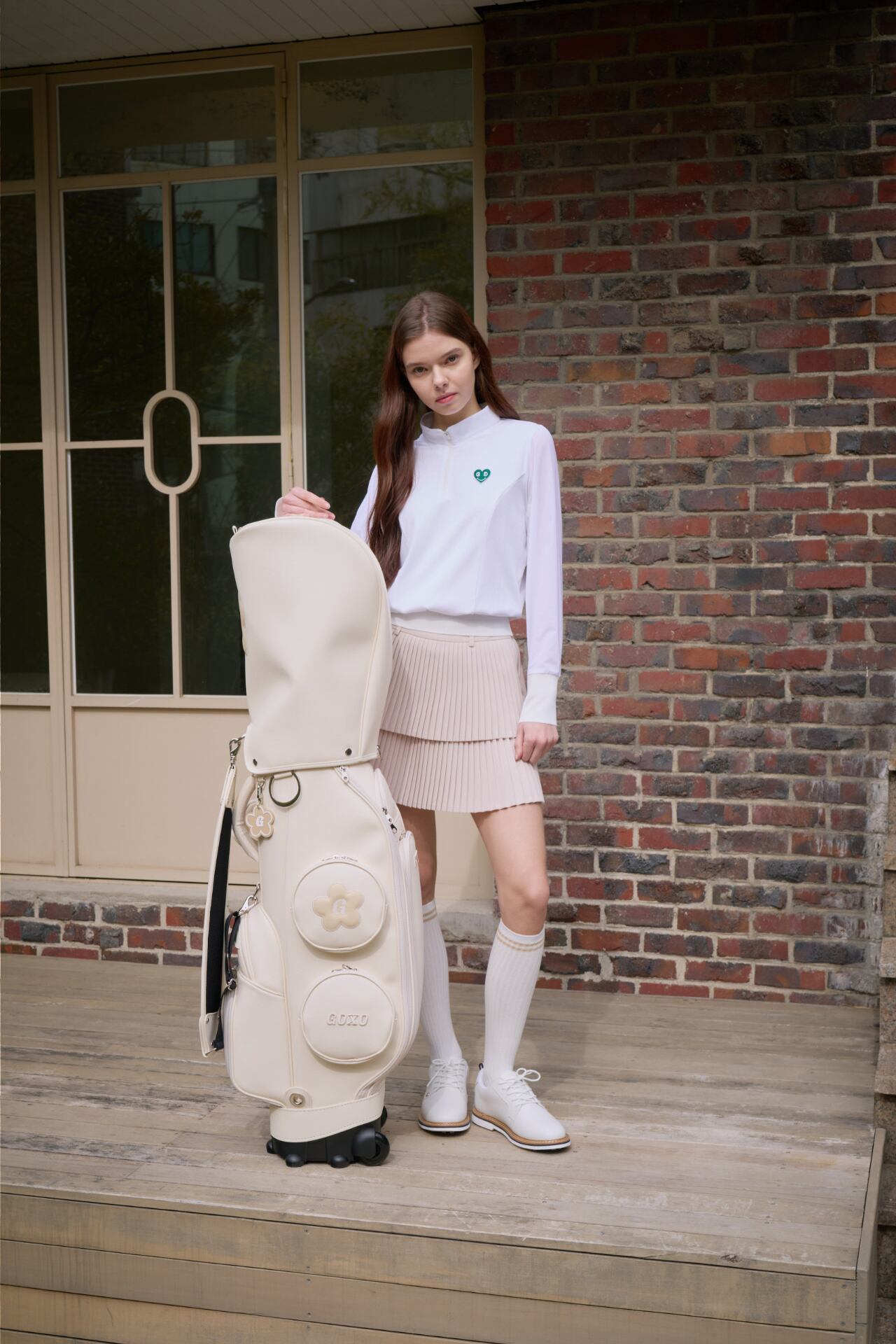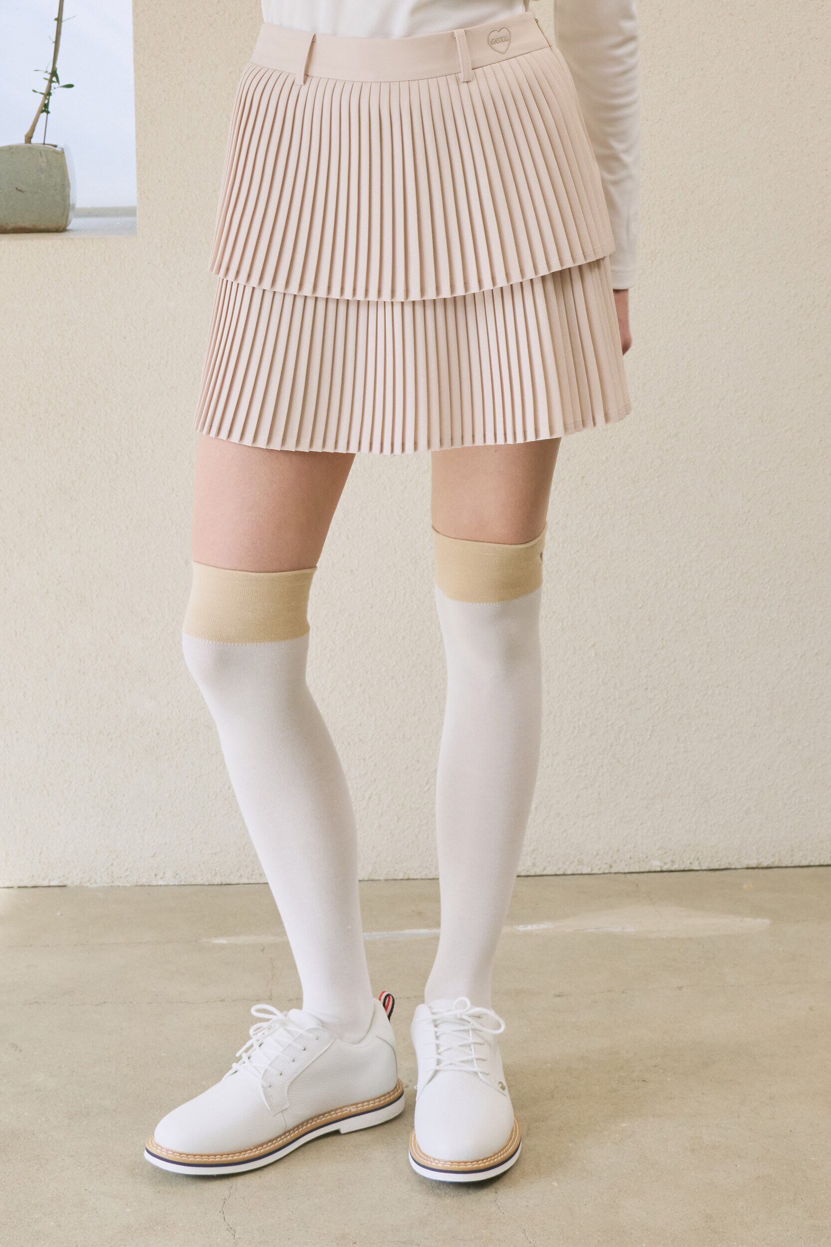 GOXO ゴーエックスオー ハートロゴダブルジャンプリーツスカート ベージュ
