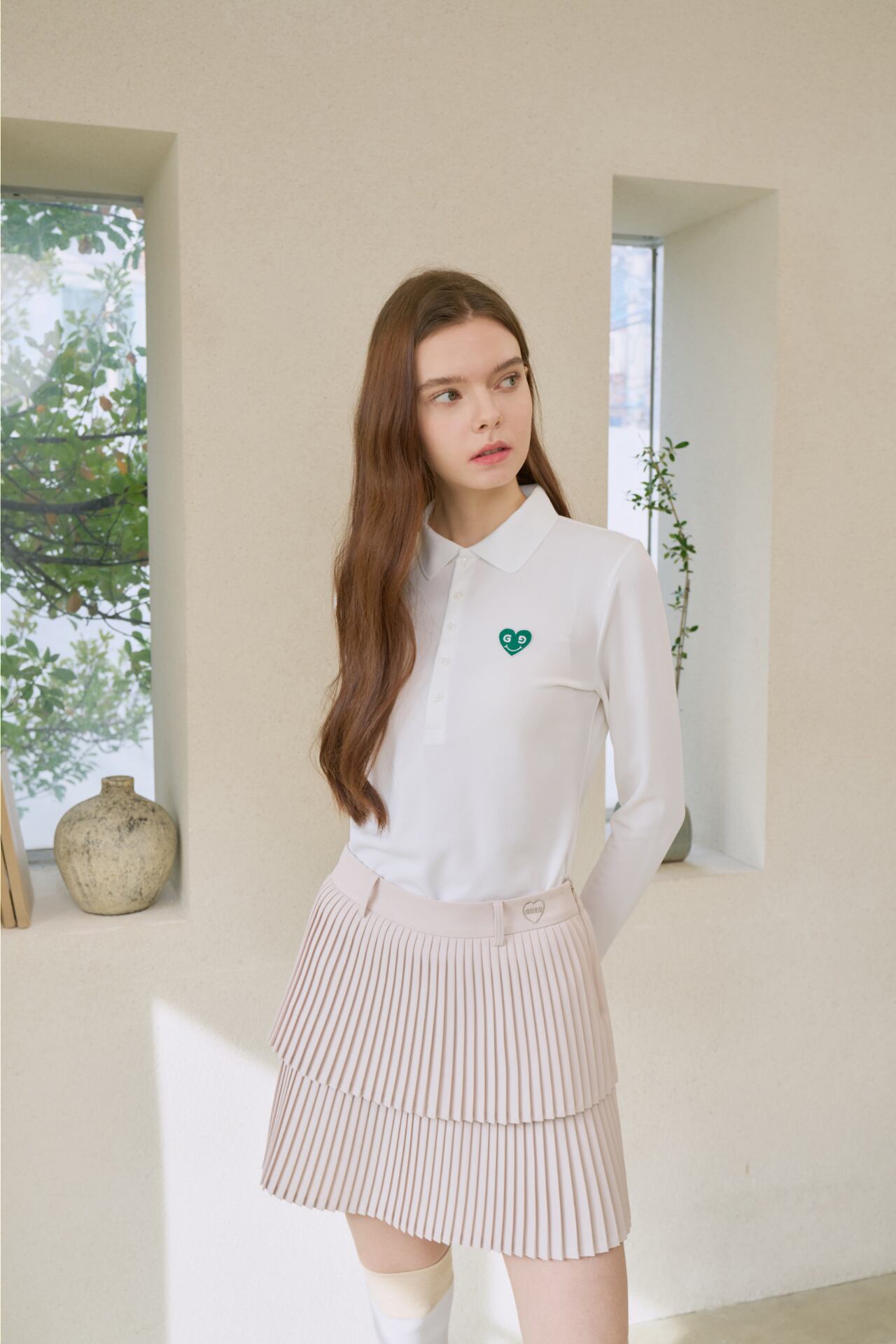 ハートロゴが特徴のダブルジャンプリーツスカートです。