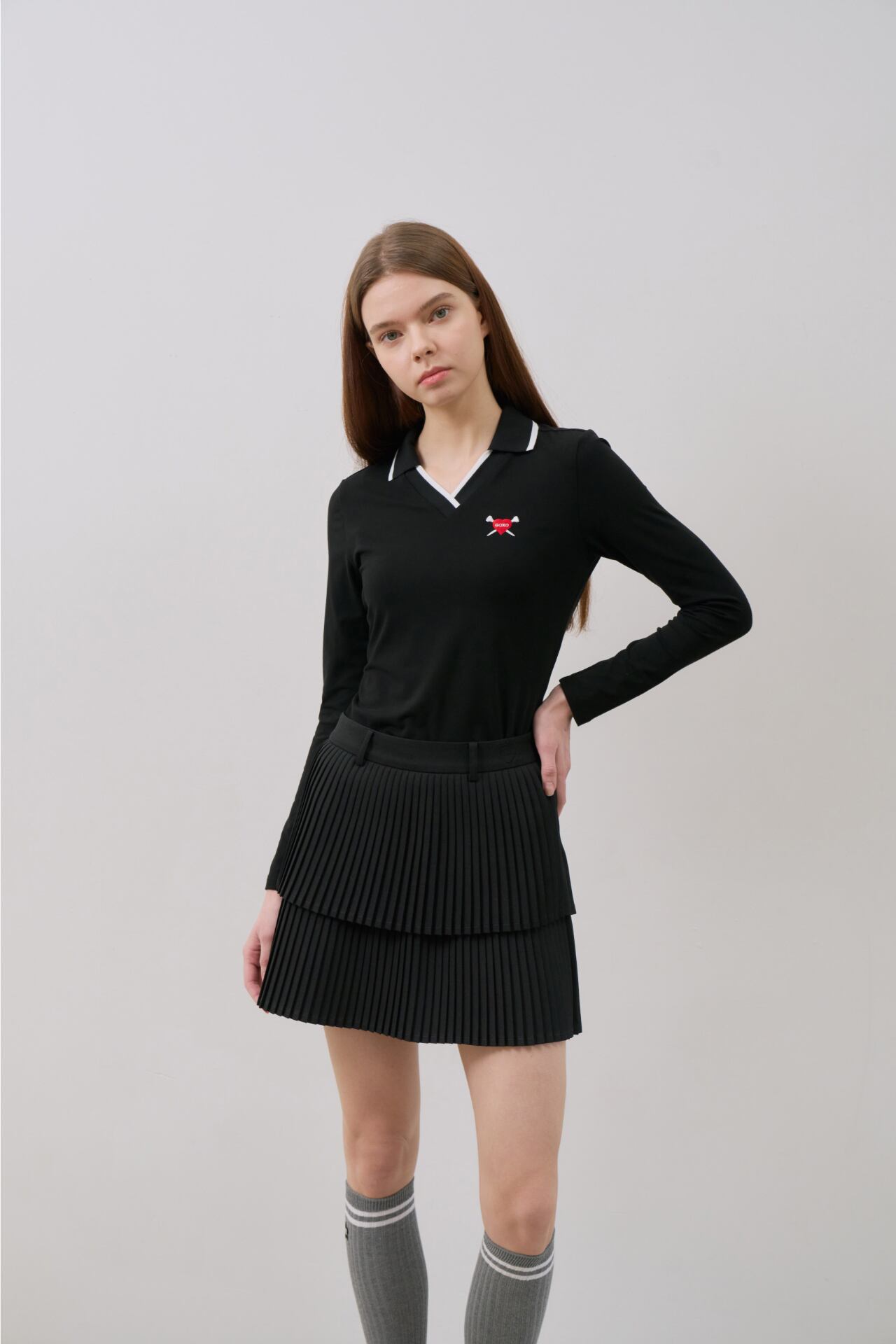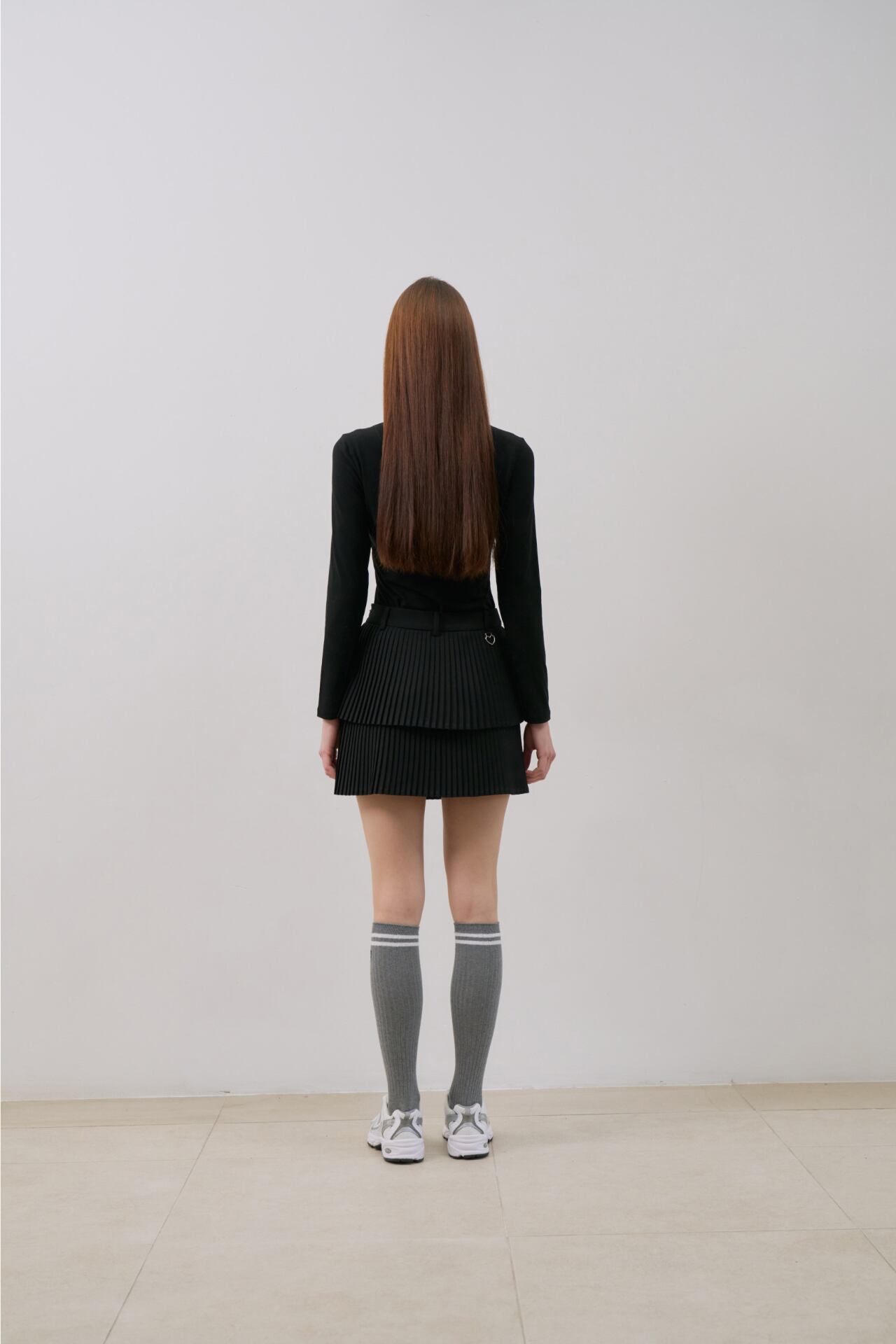 GOXO ゴーエックスオー ハートロゴダブルジャンプリーツスカート ブラック