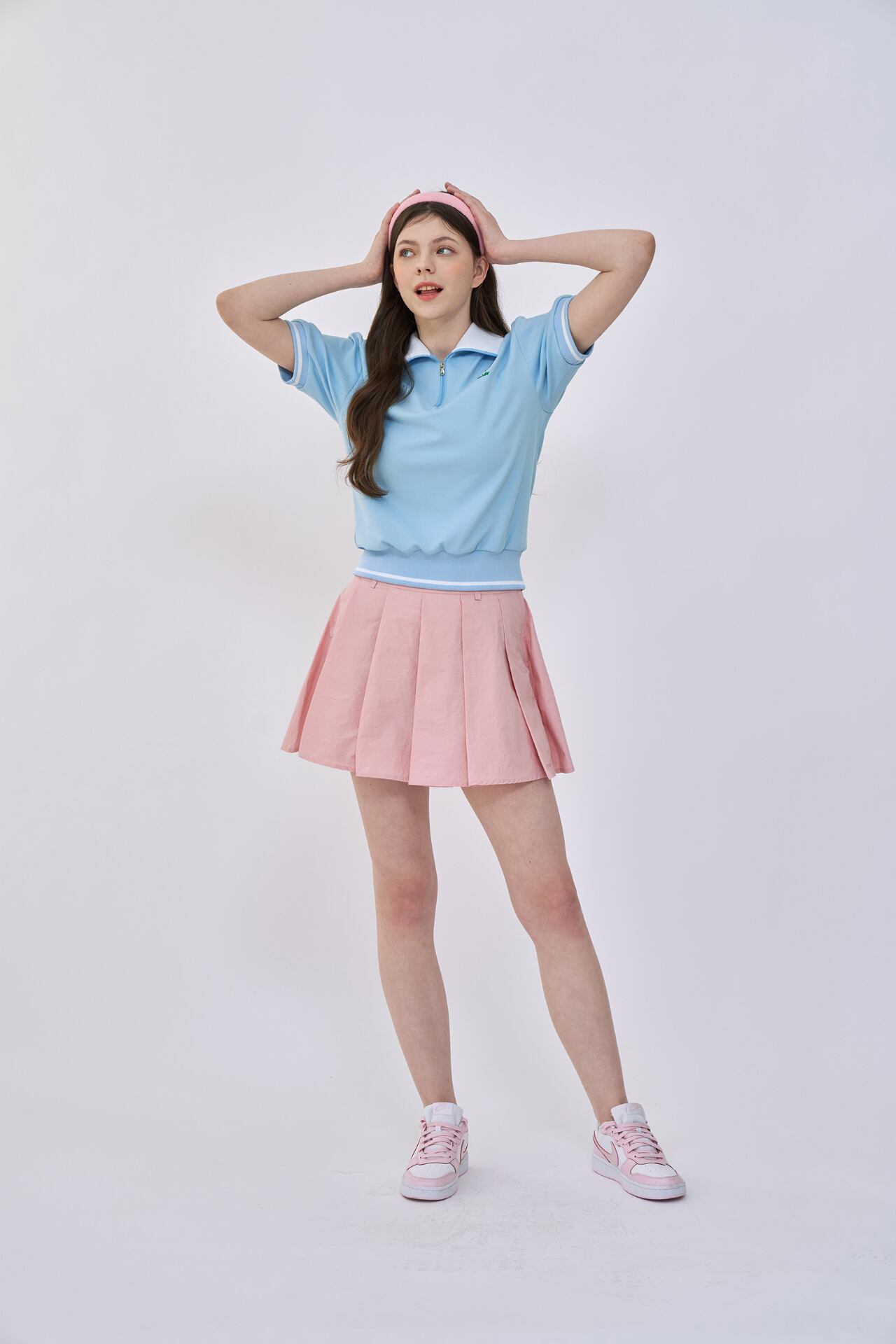 フレアなシルエットは動きを優雅に演出し、ゴルフウェアとしてだけでなく、日常のスタイルにも取り入れやすいアイテムです。
