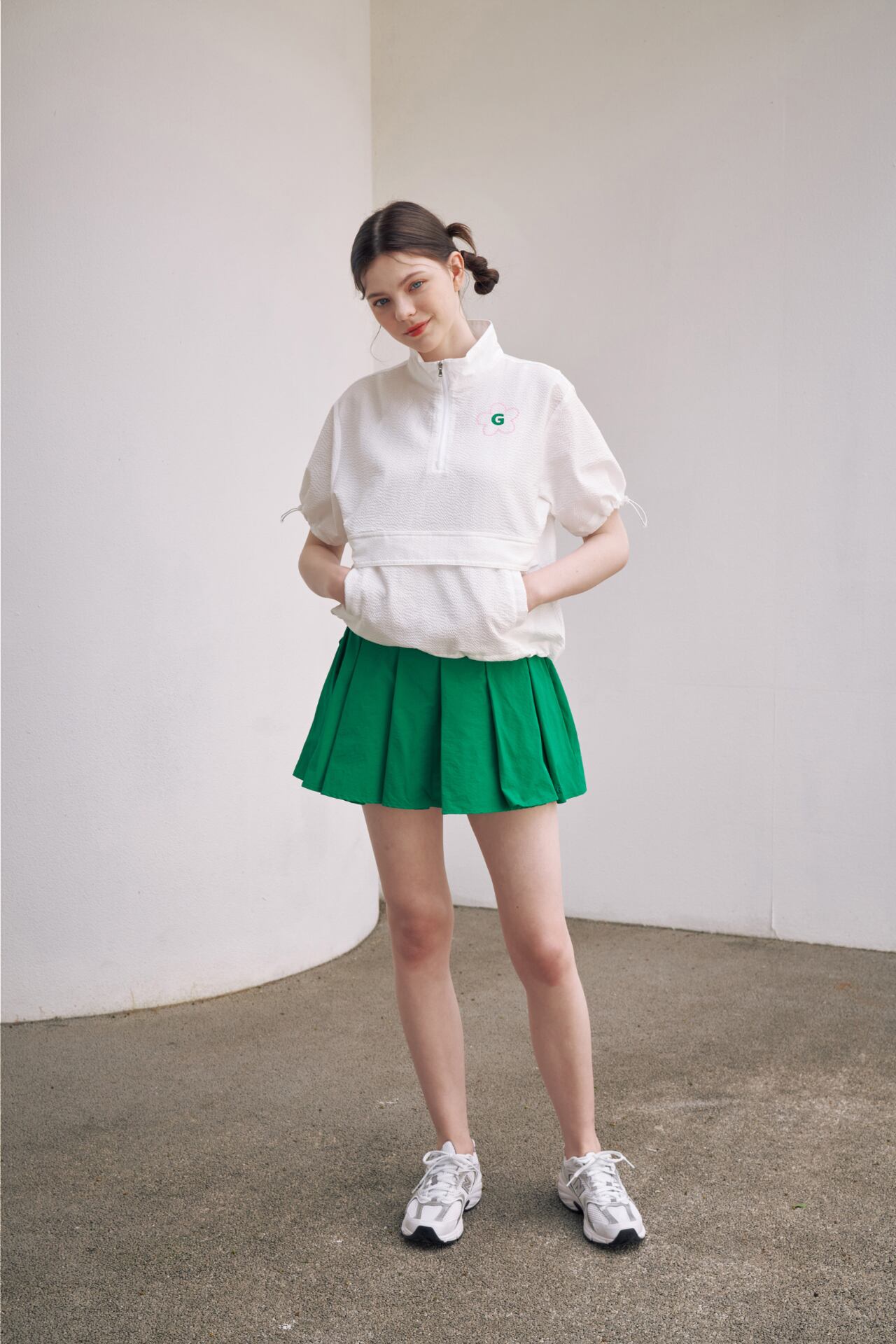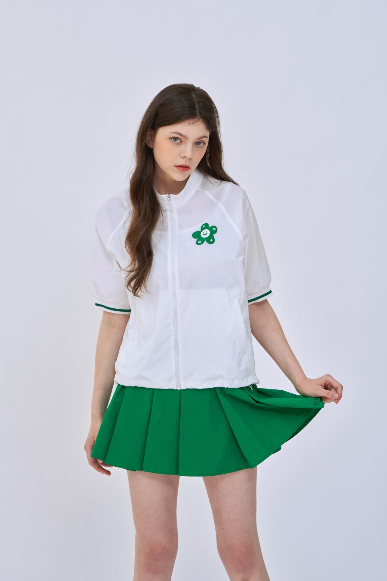 フレアなシルエットは動きを優雅に演出し、ゴルフウェアとしてだけでなく、日常のスタイルにも取り入れやすいアイテムです。