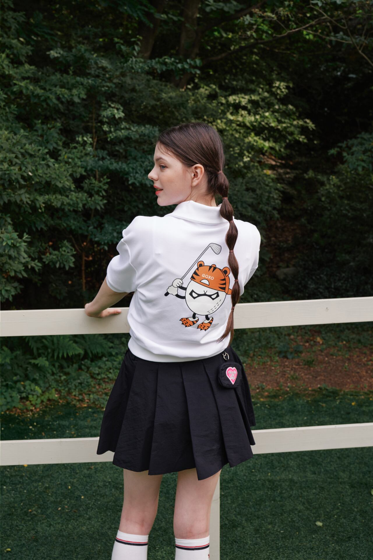 フレアなシルエットは動きを優雅に演出し、ゴルフウェアとしてだけでなく、日常のスタイルにも取り入れやすいアイテムです。