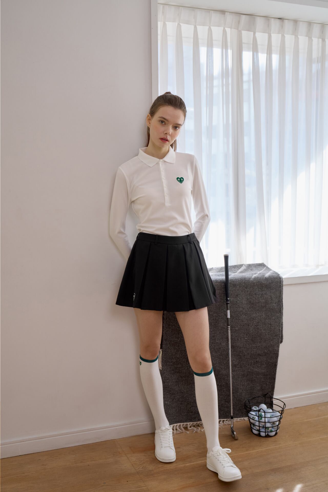 GOXO ゴーエックスオー グリーンハートダブルプリーツスカート ブラック