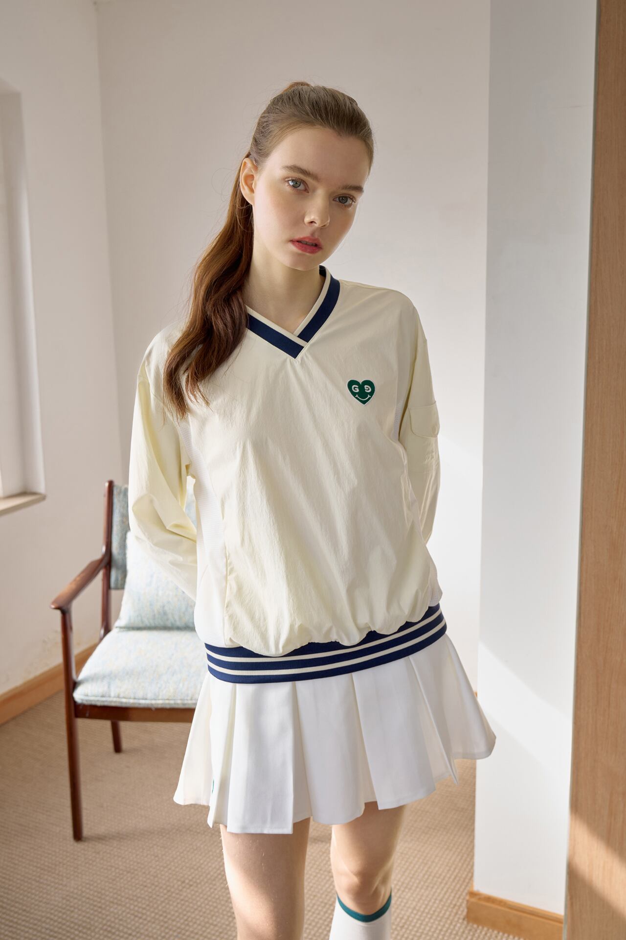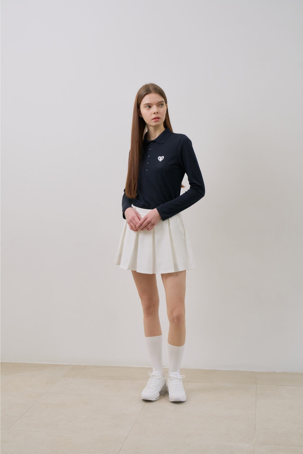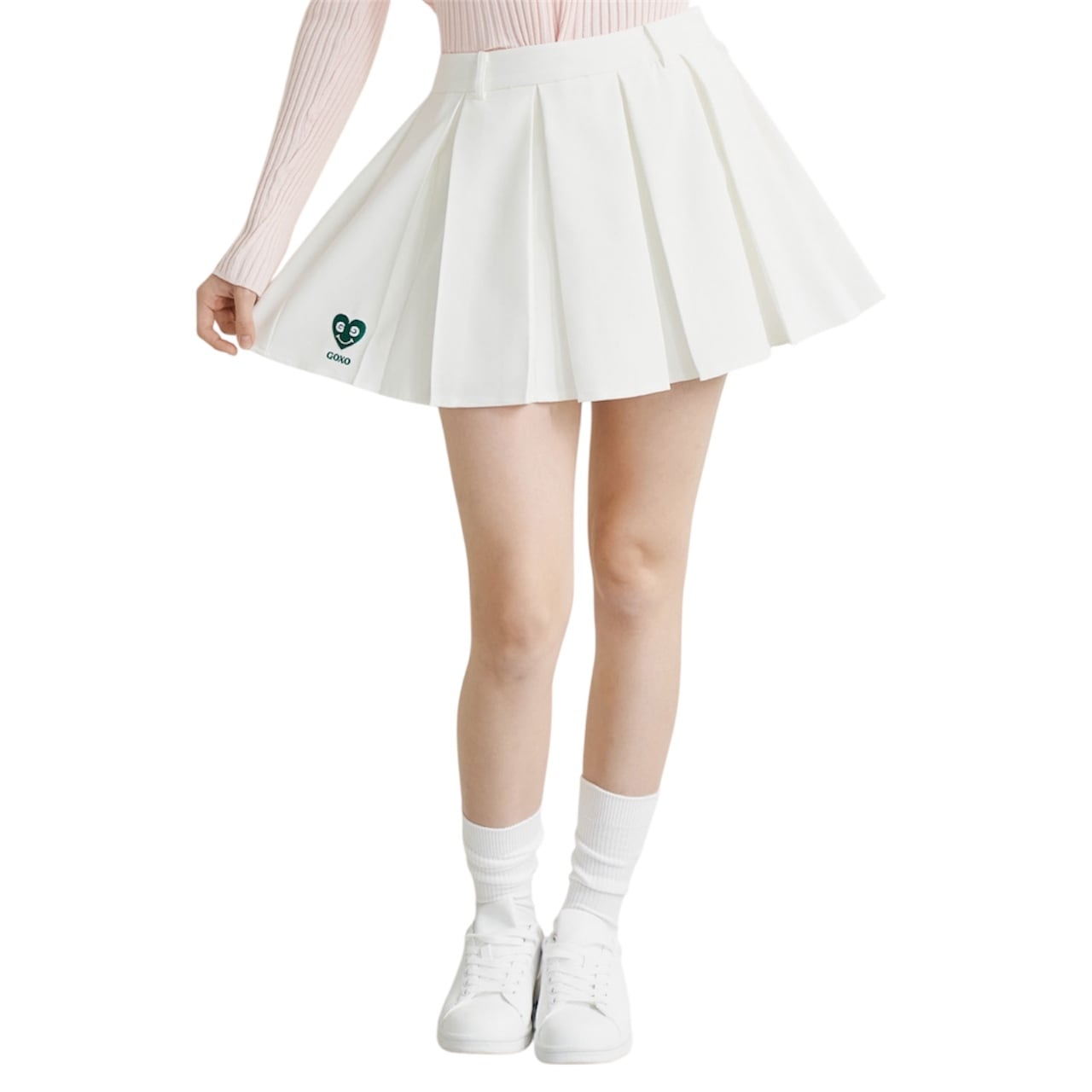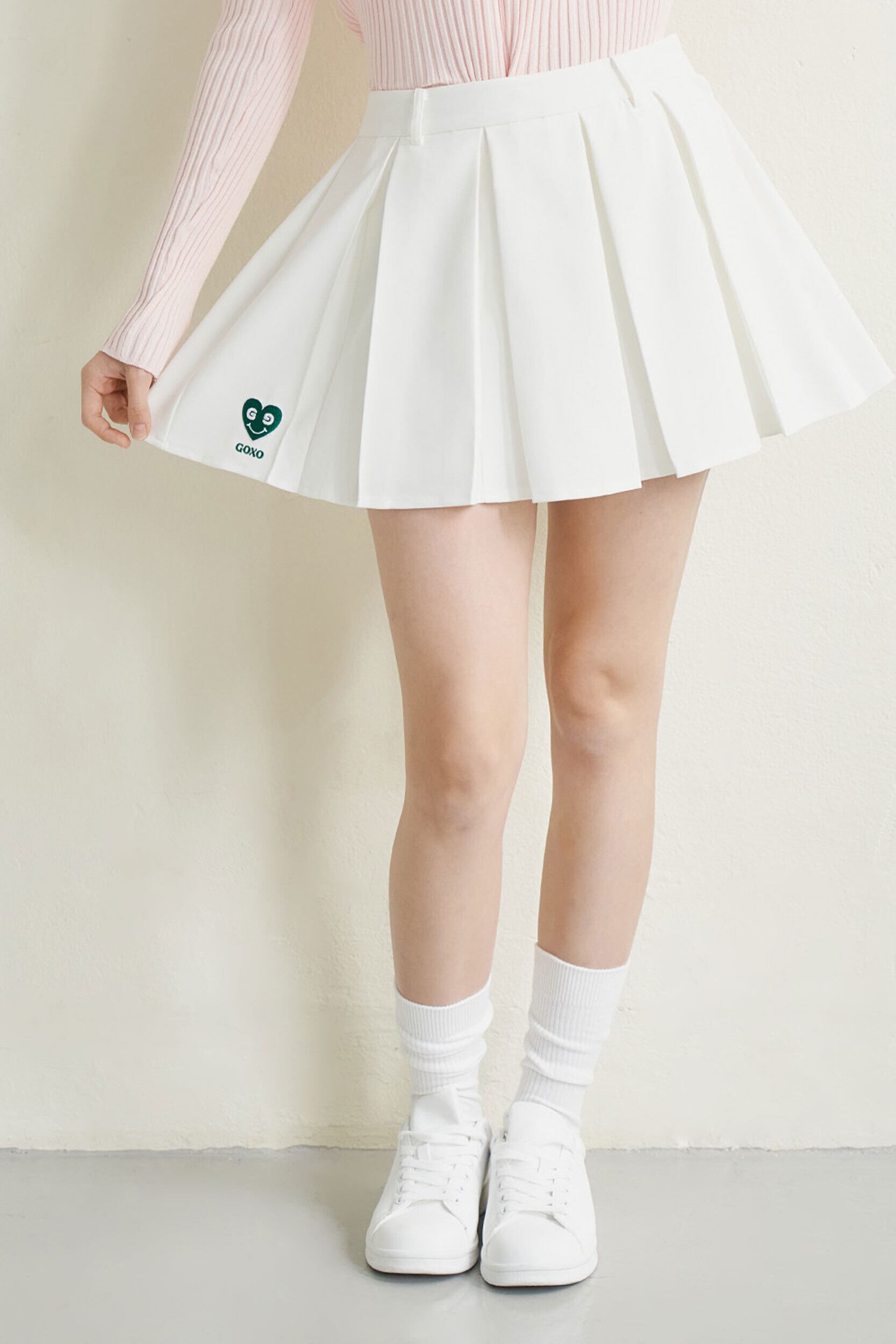 GOXO ゴーエックスオー グリーンハートダブルプリーツスカート ホワイト
