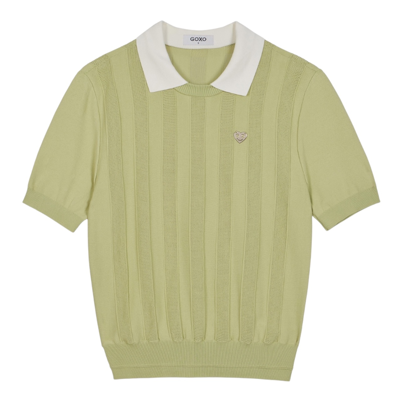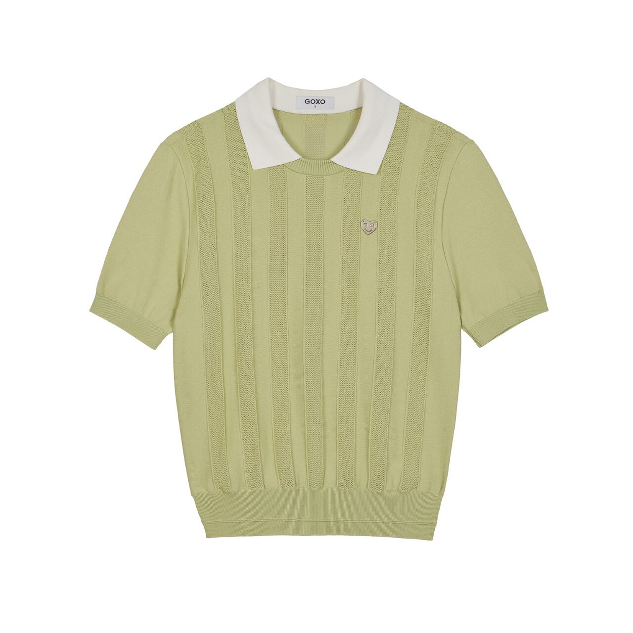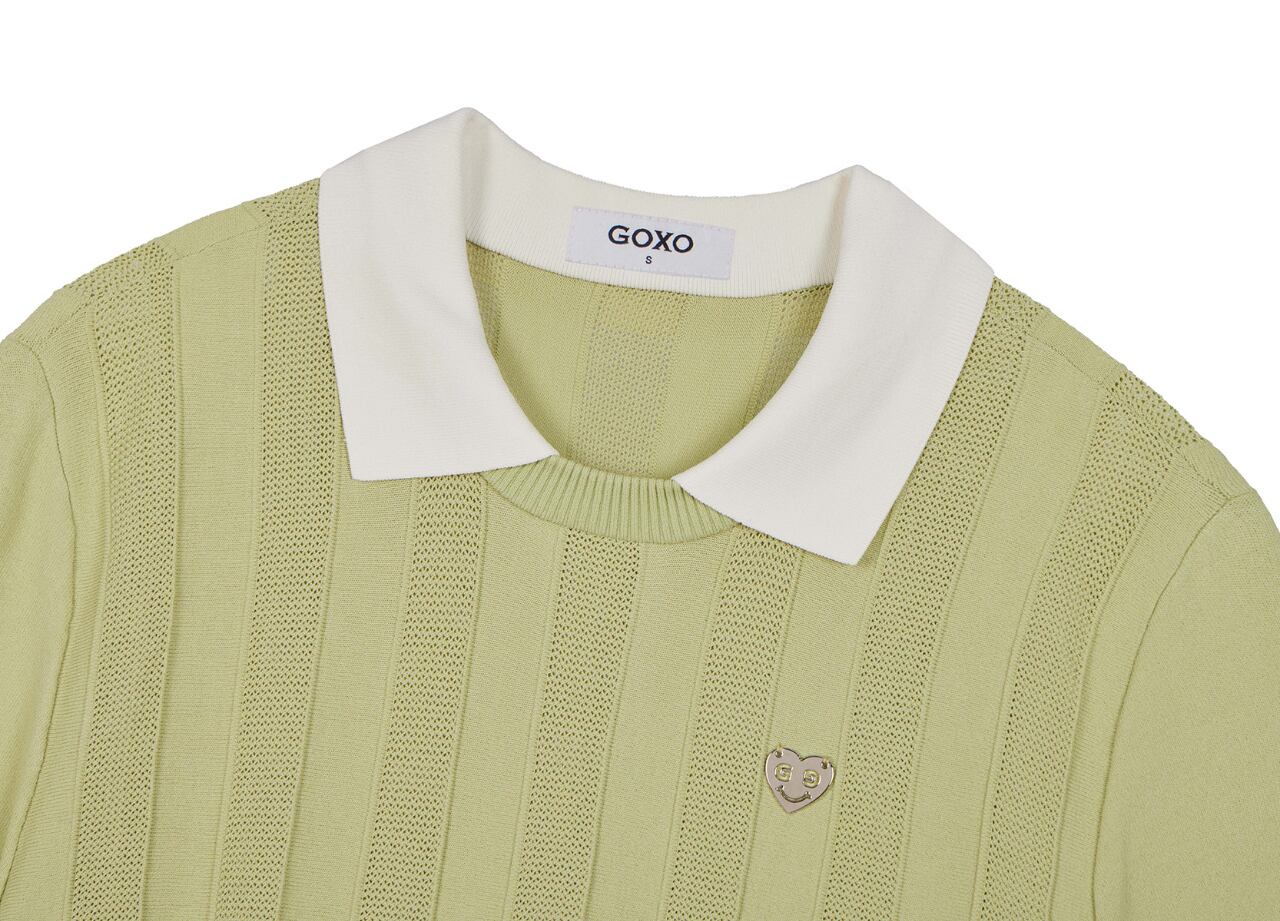 GOXO ゴーエックスオー メタルハートカラー ニットトップ オリーブ
