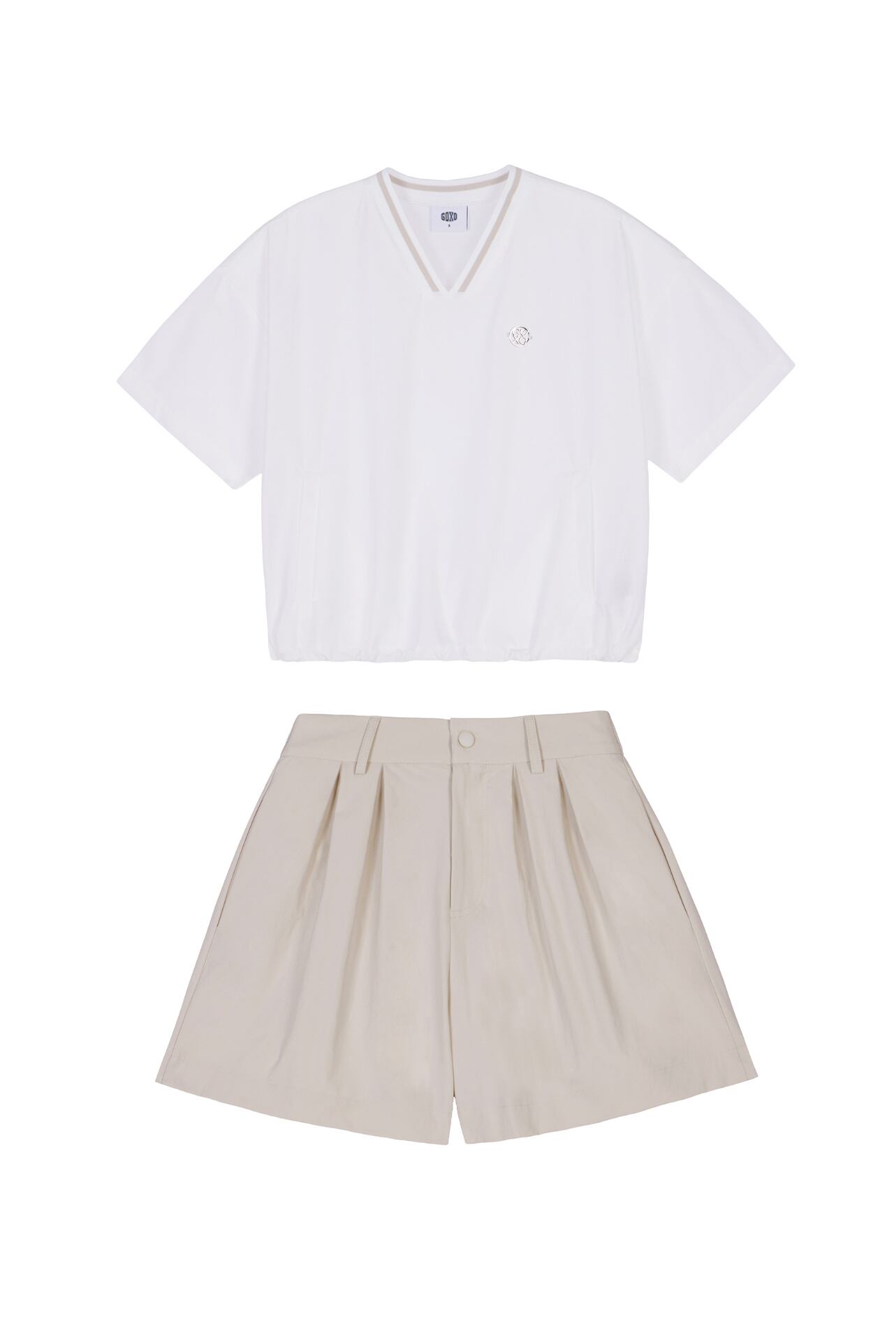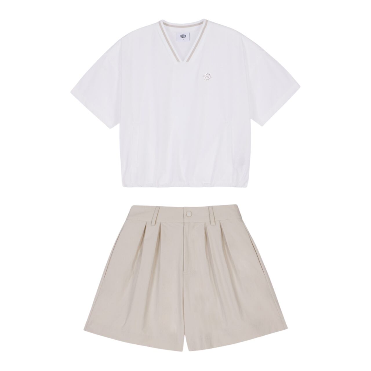 GOXO ゴーエックスオー エッセンシャルVネックセットアップ ベージュ