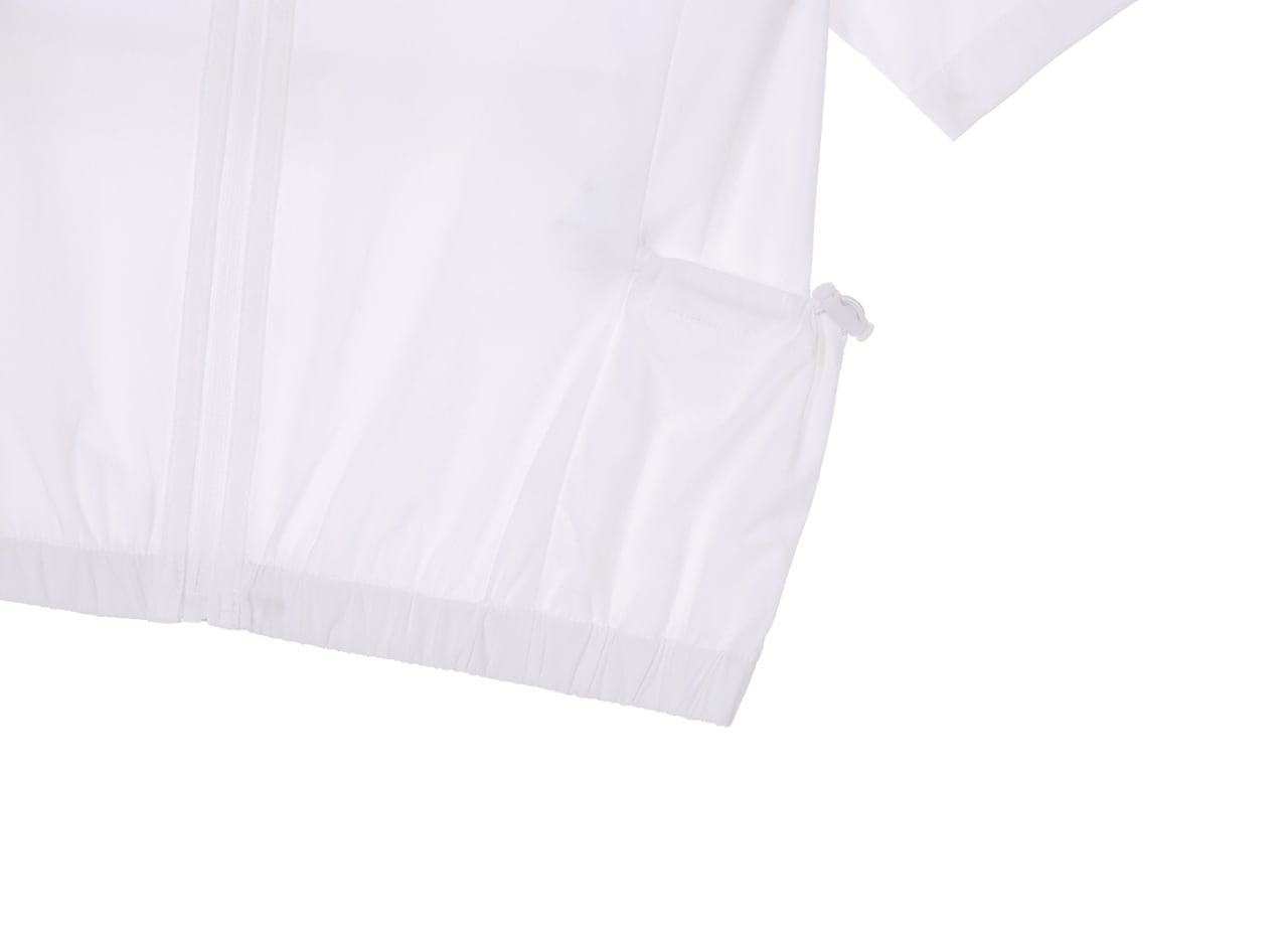 上着はウエストストリングのディテールで体型に合わせて調節が可能で、自然に女性らしいシルエットを演出できます。