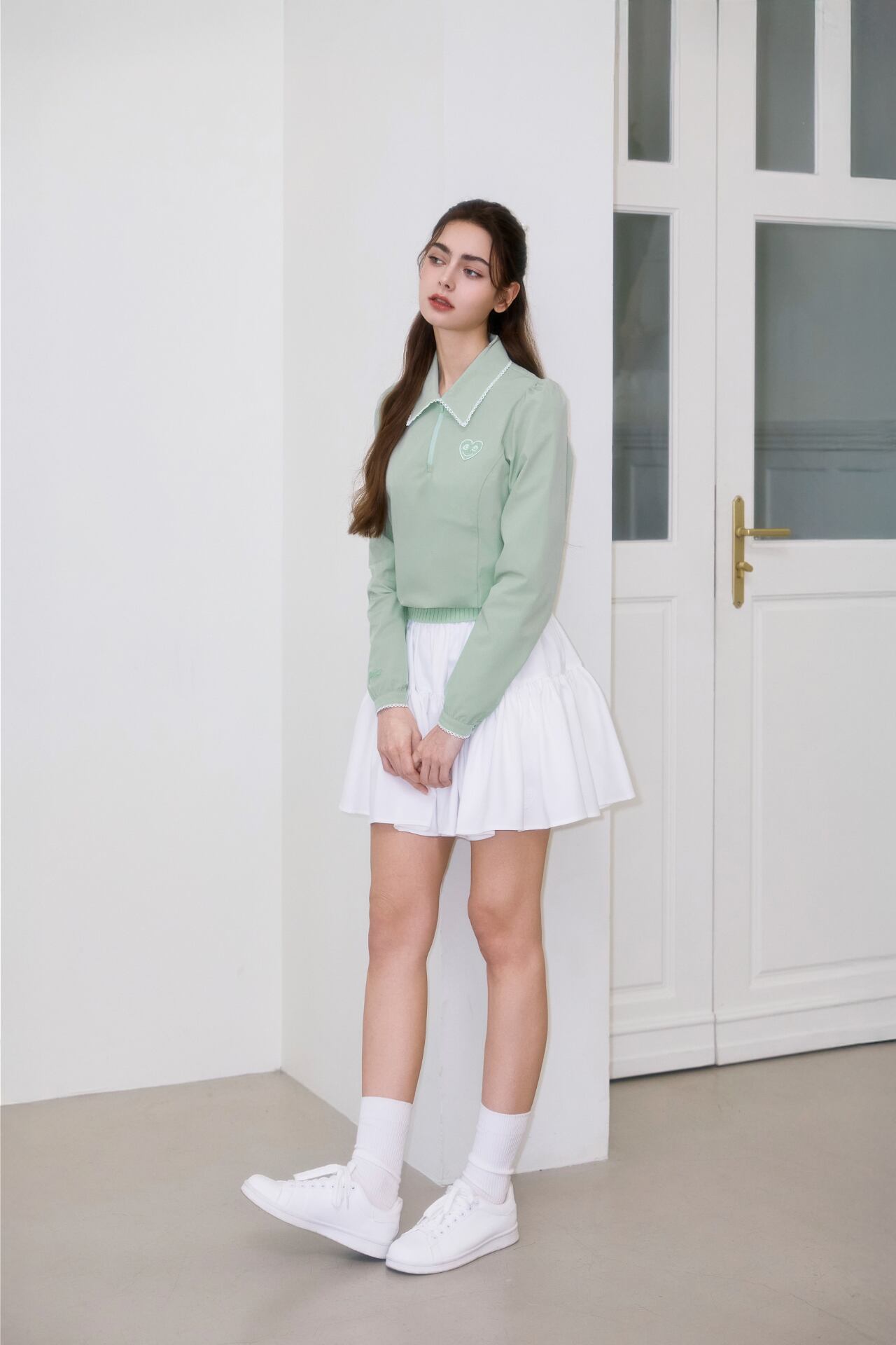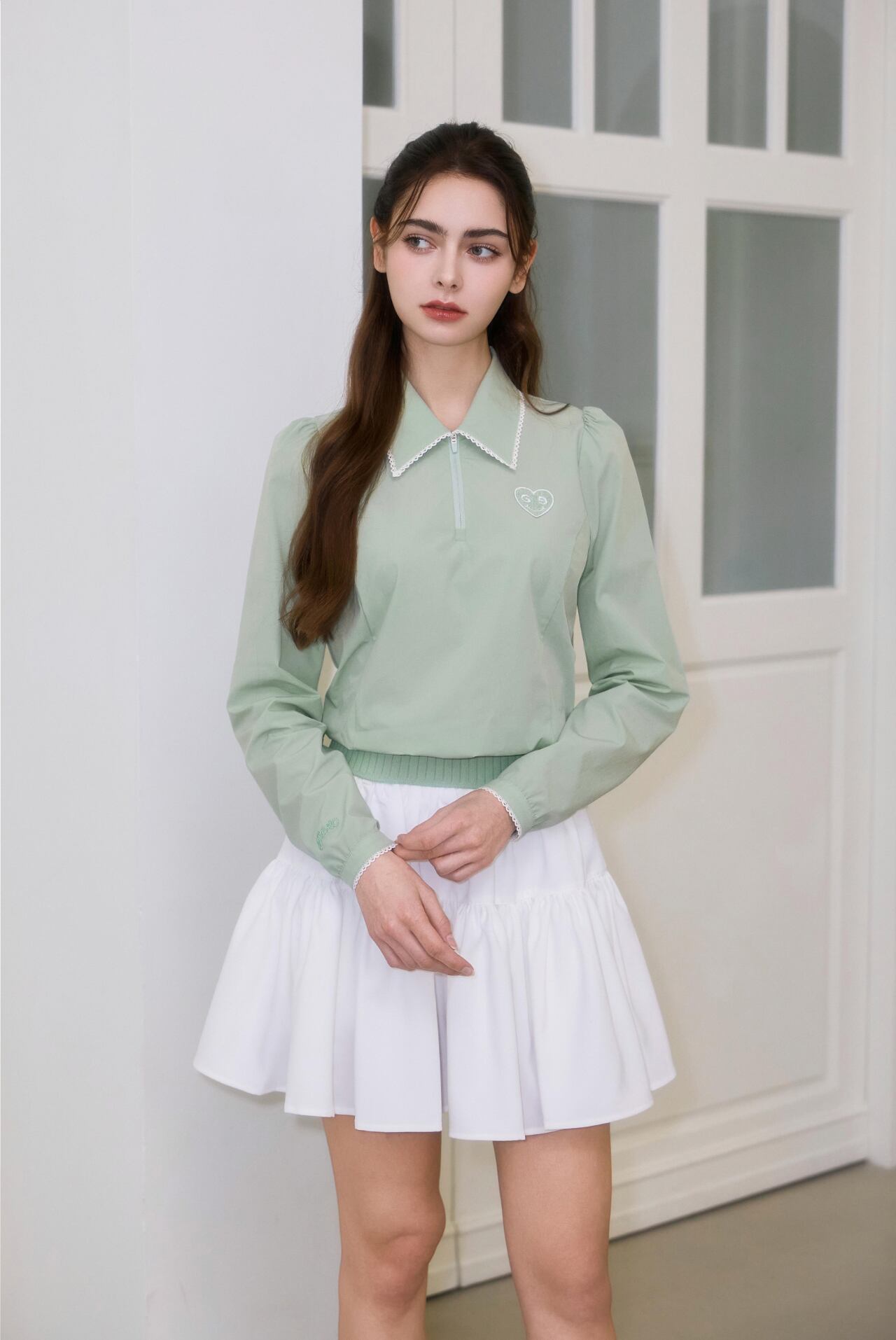 GOXO ゴーエックスオー スマイルハートレースウーブンハーフジップアップ ミント
