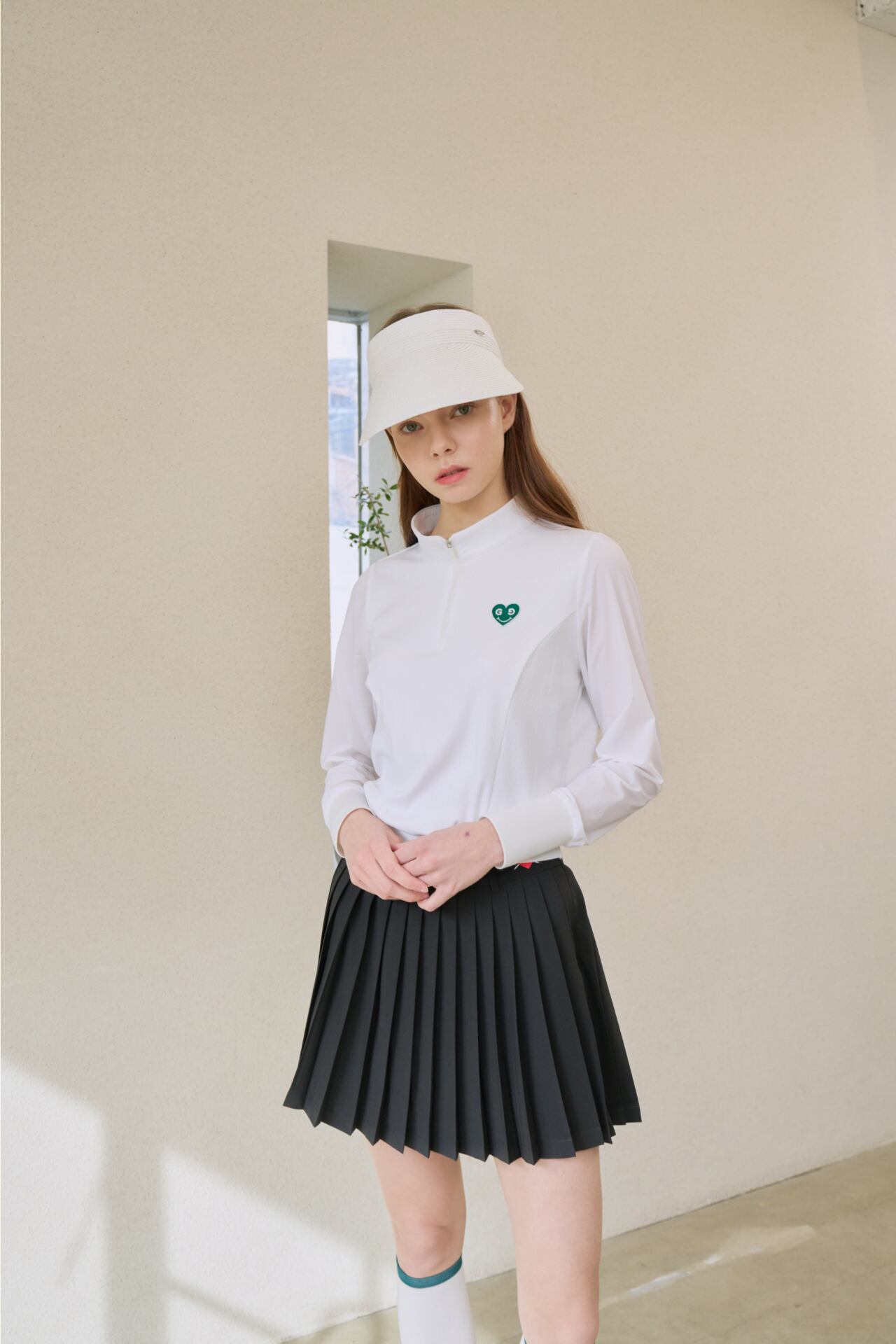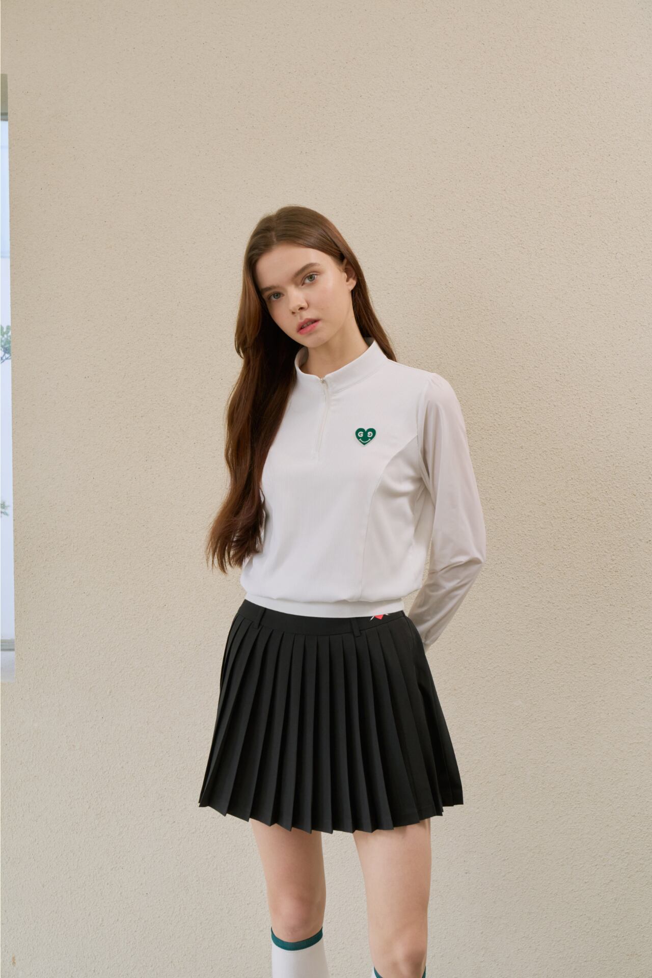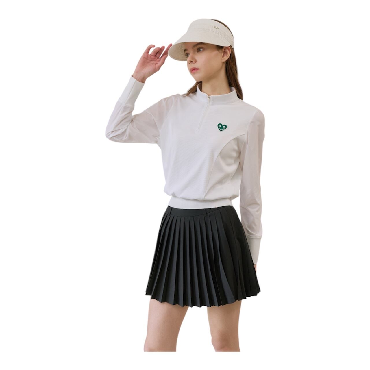 GOXO グリーンハートモックネックロングスリーブ ホワイト