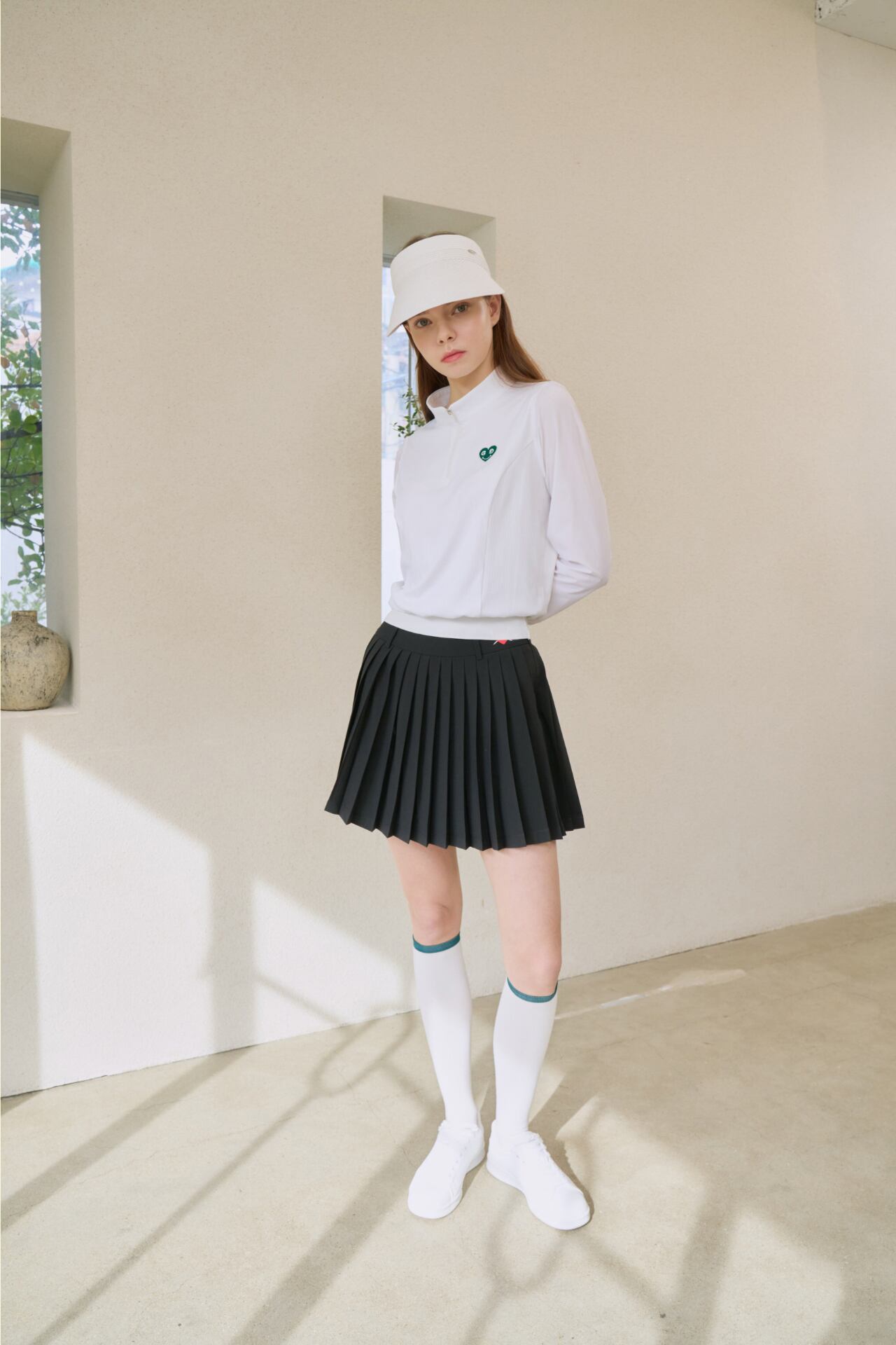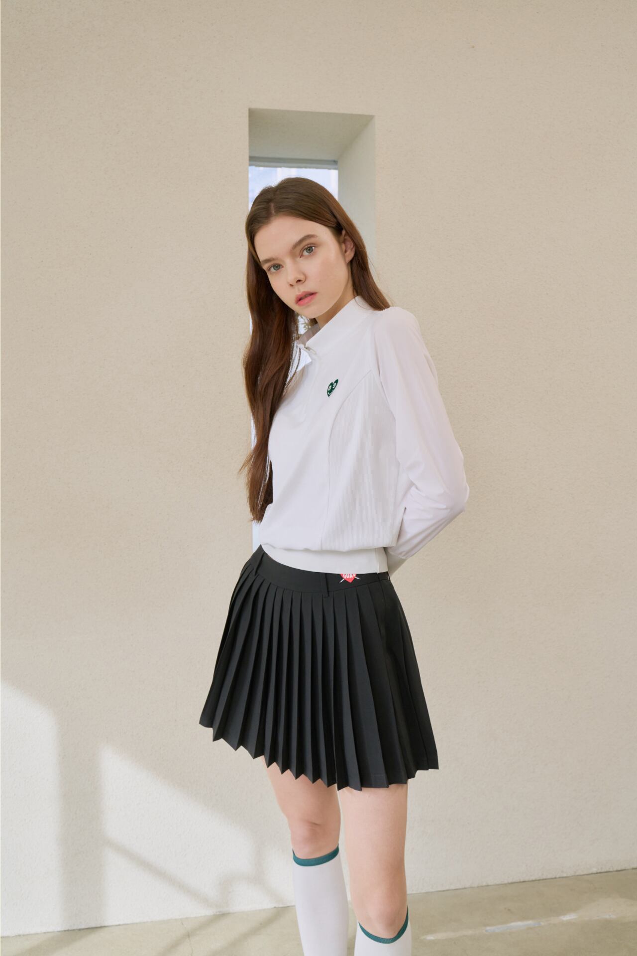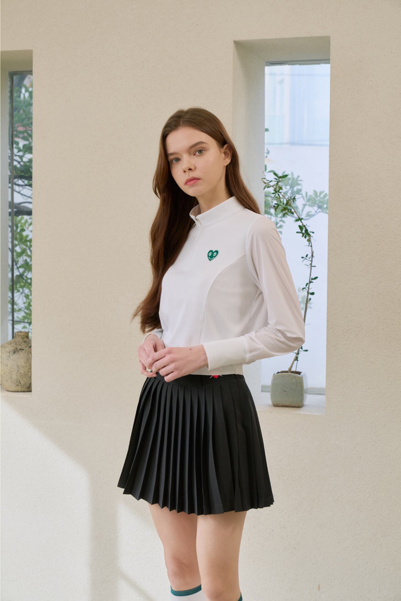 GOXO グリーンハートモックネックロングスリーブ ホワイト