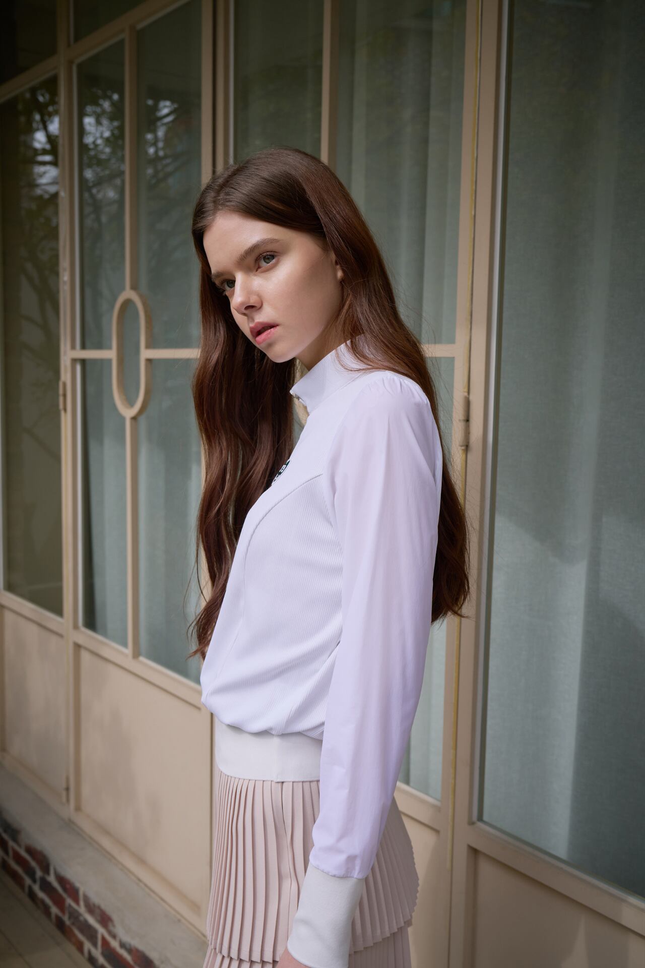 ✓ モックネックが女性らしさを演出