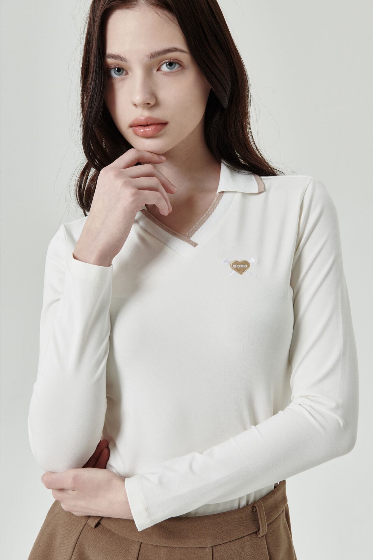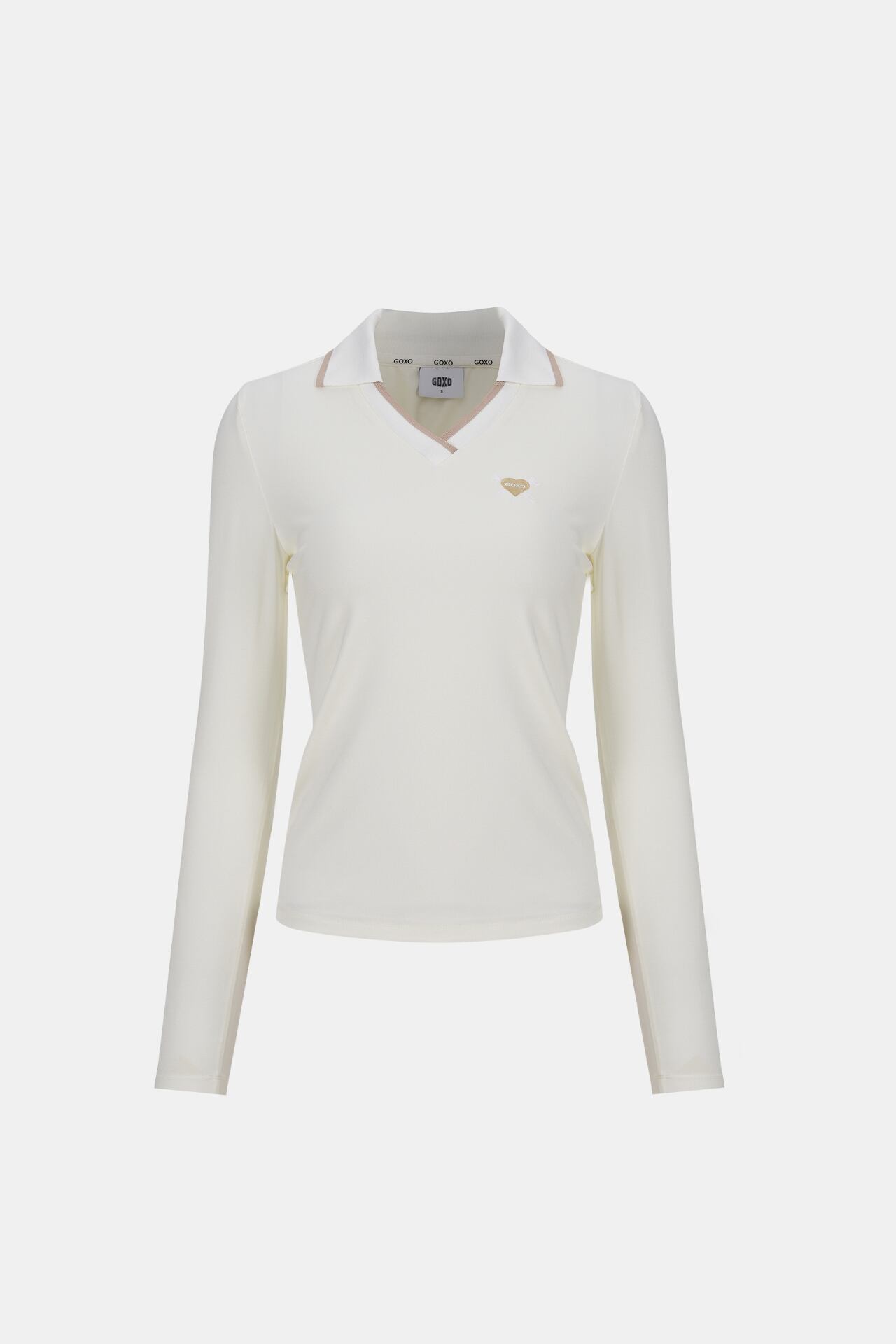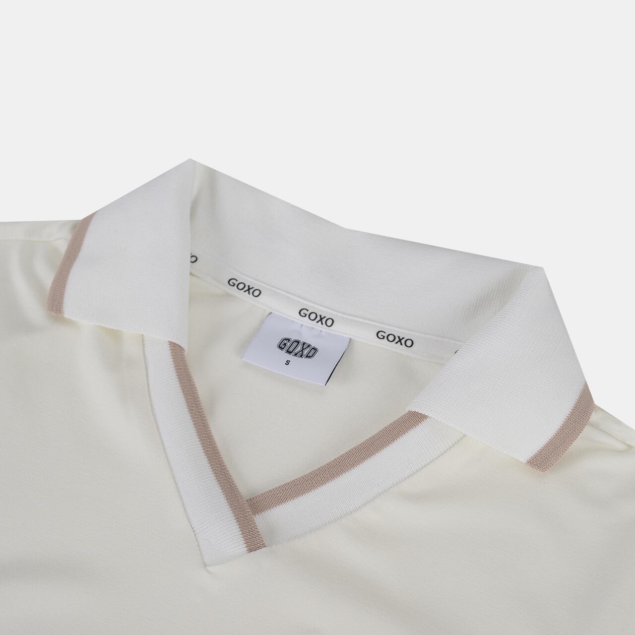 GOXO ゴーエックスオー VネックスリムフィットカラーTシャツ アイボリー