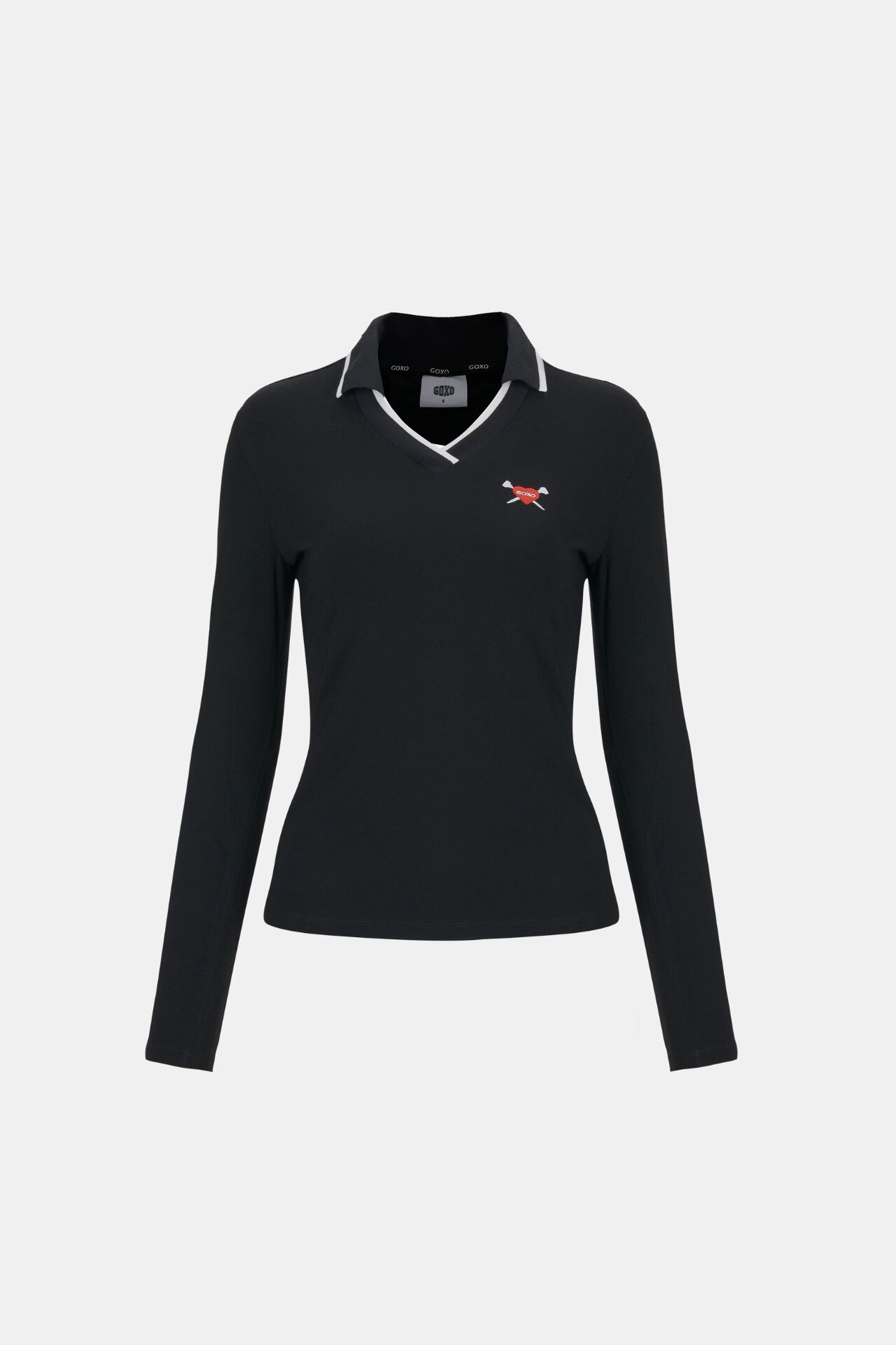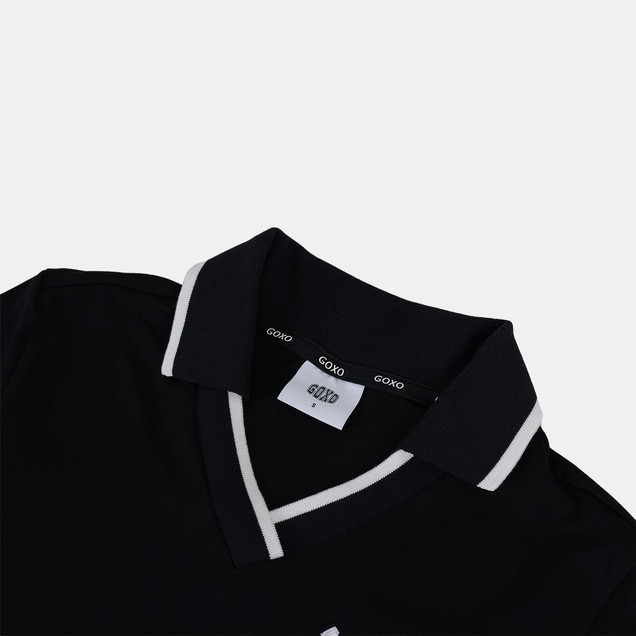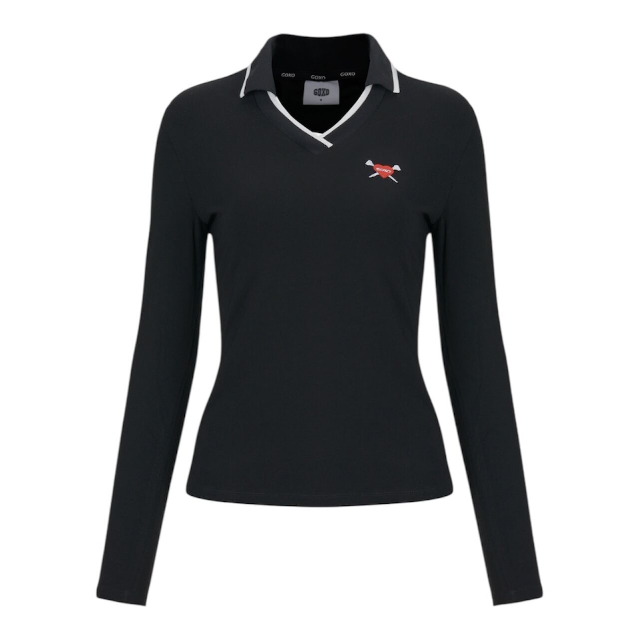 GOXO ゴーエックスオー VネックスリムフィットカラーTシャツ ブラック
