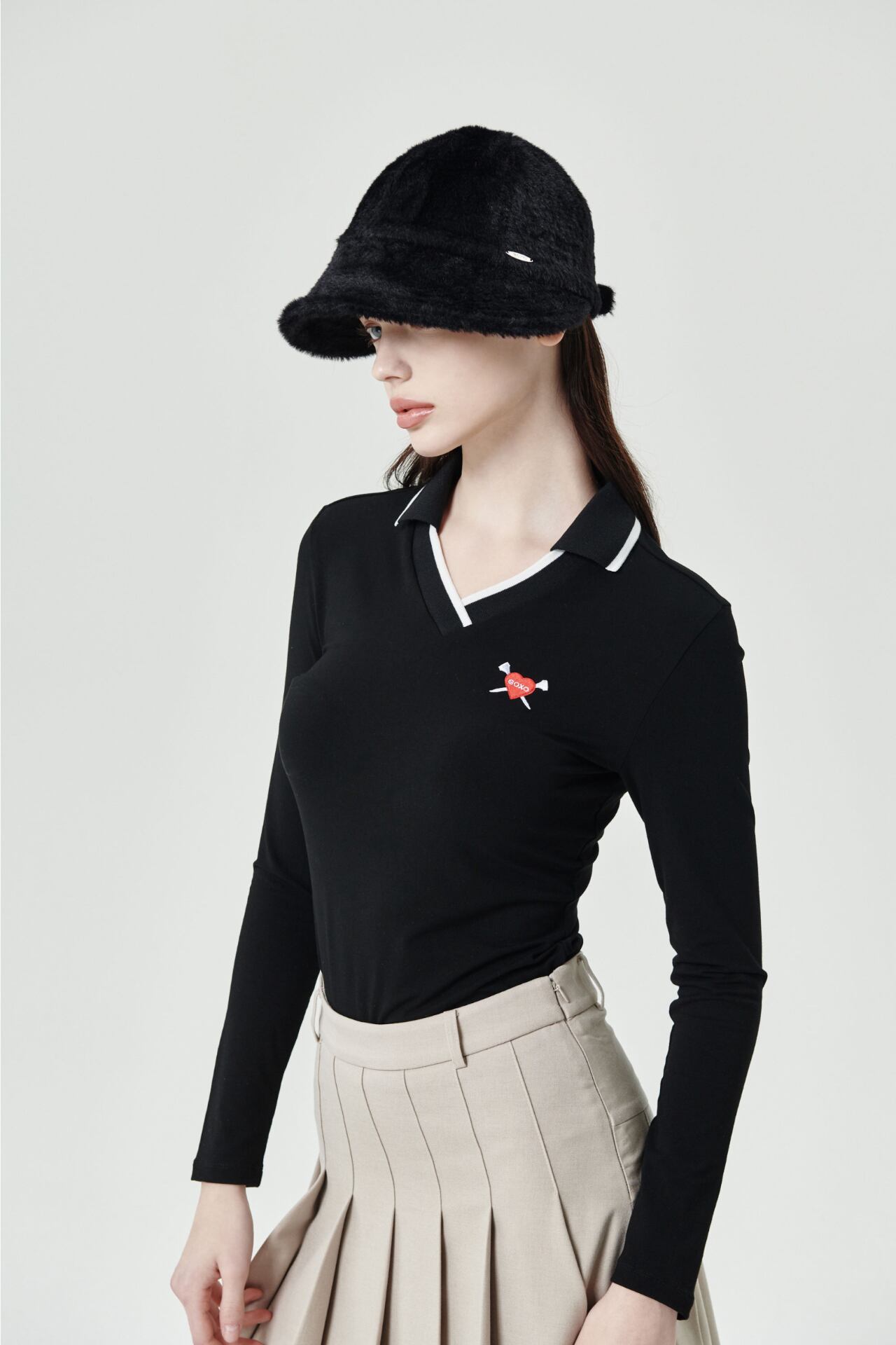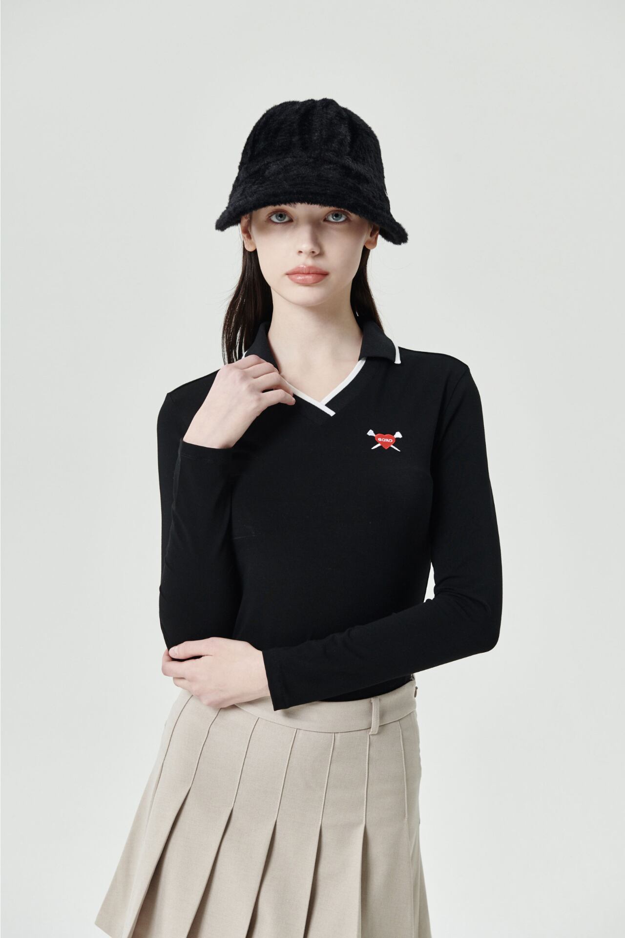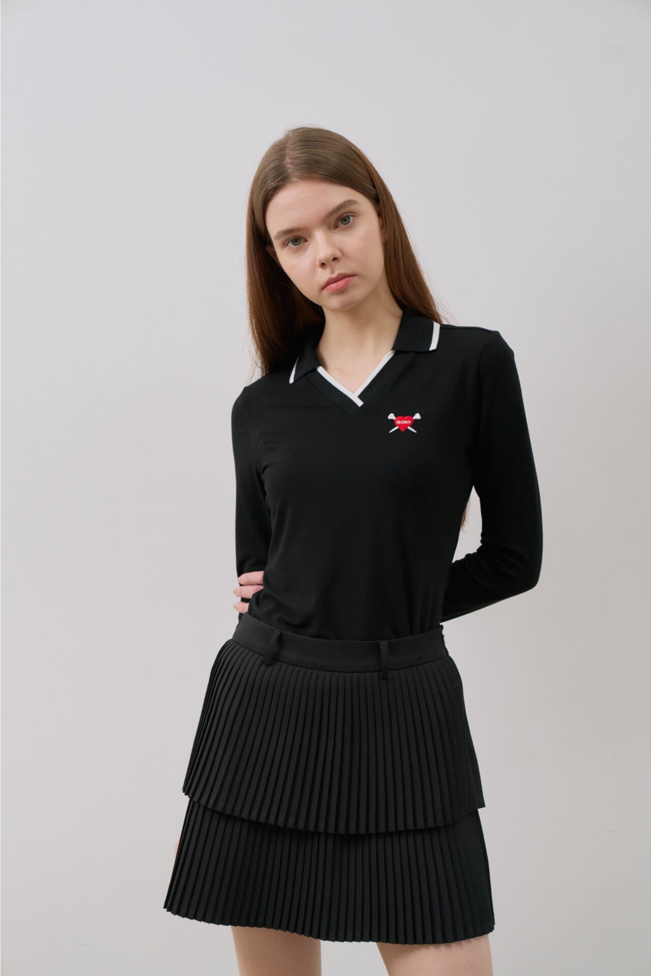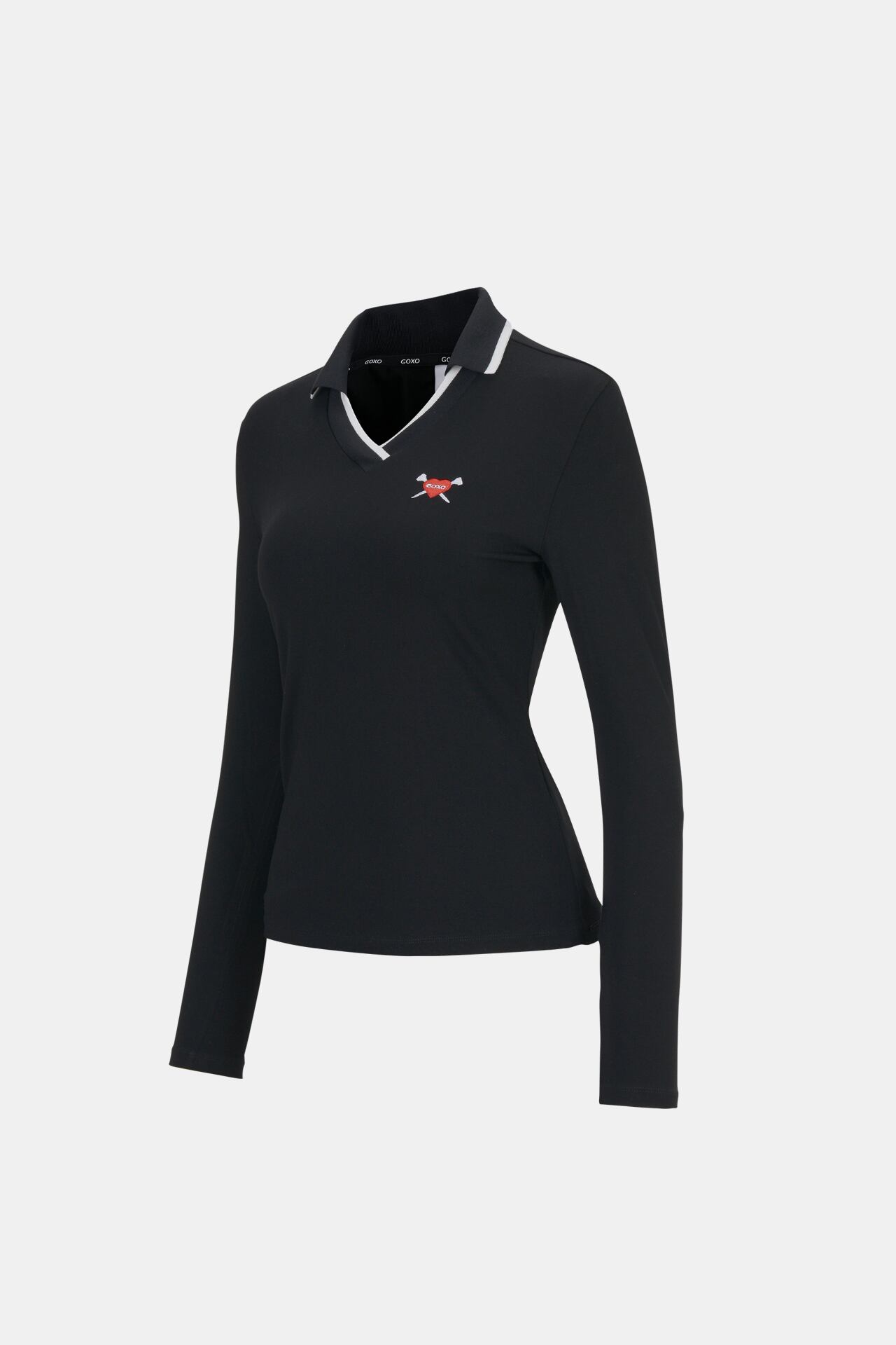 GOXO ゴーエックスオー VネックスリムフィットカラーTシャツ ブラック