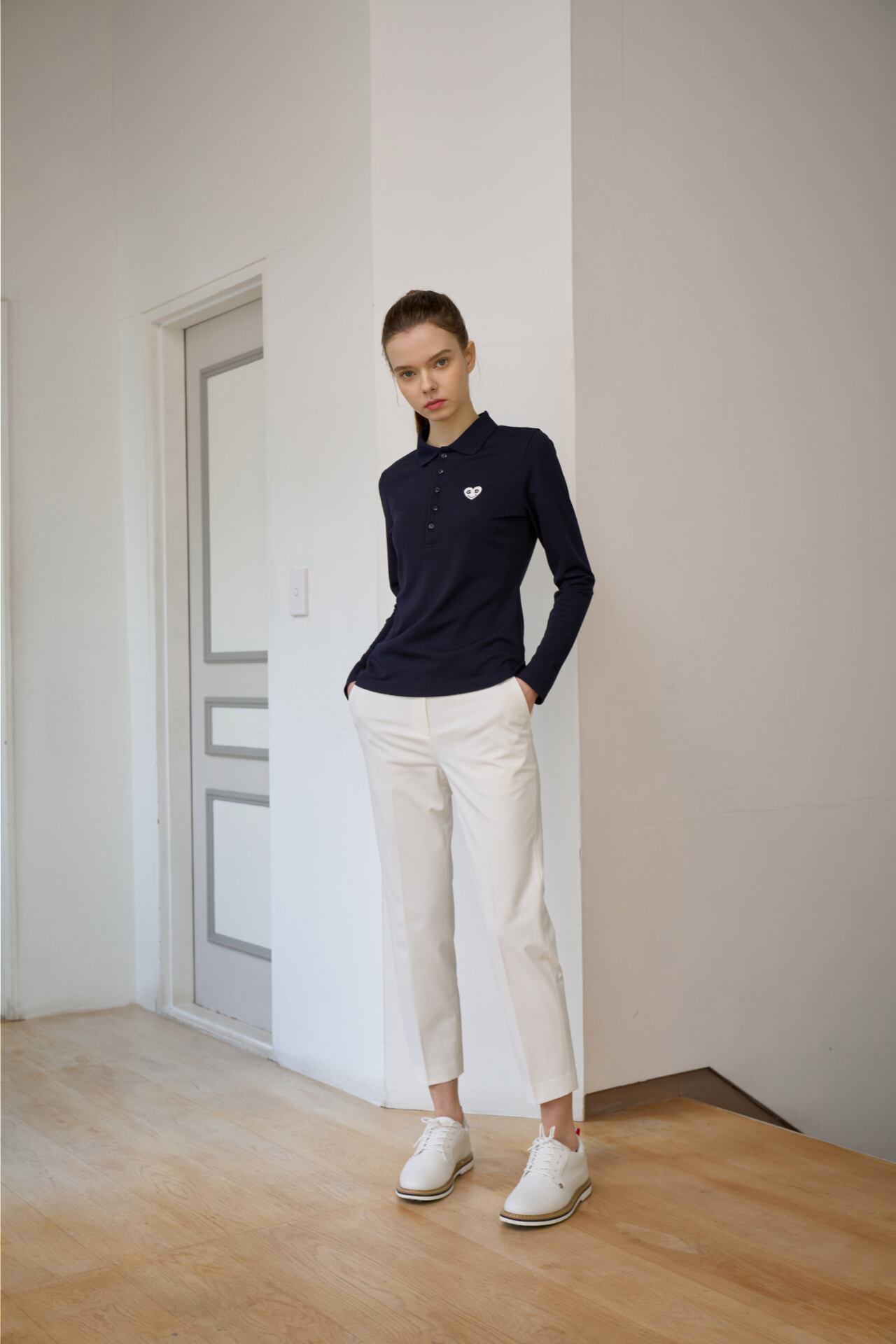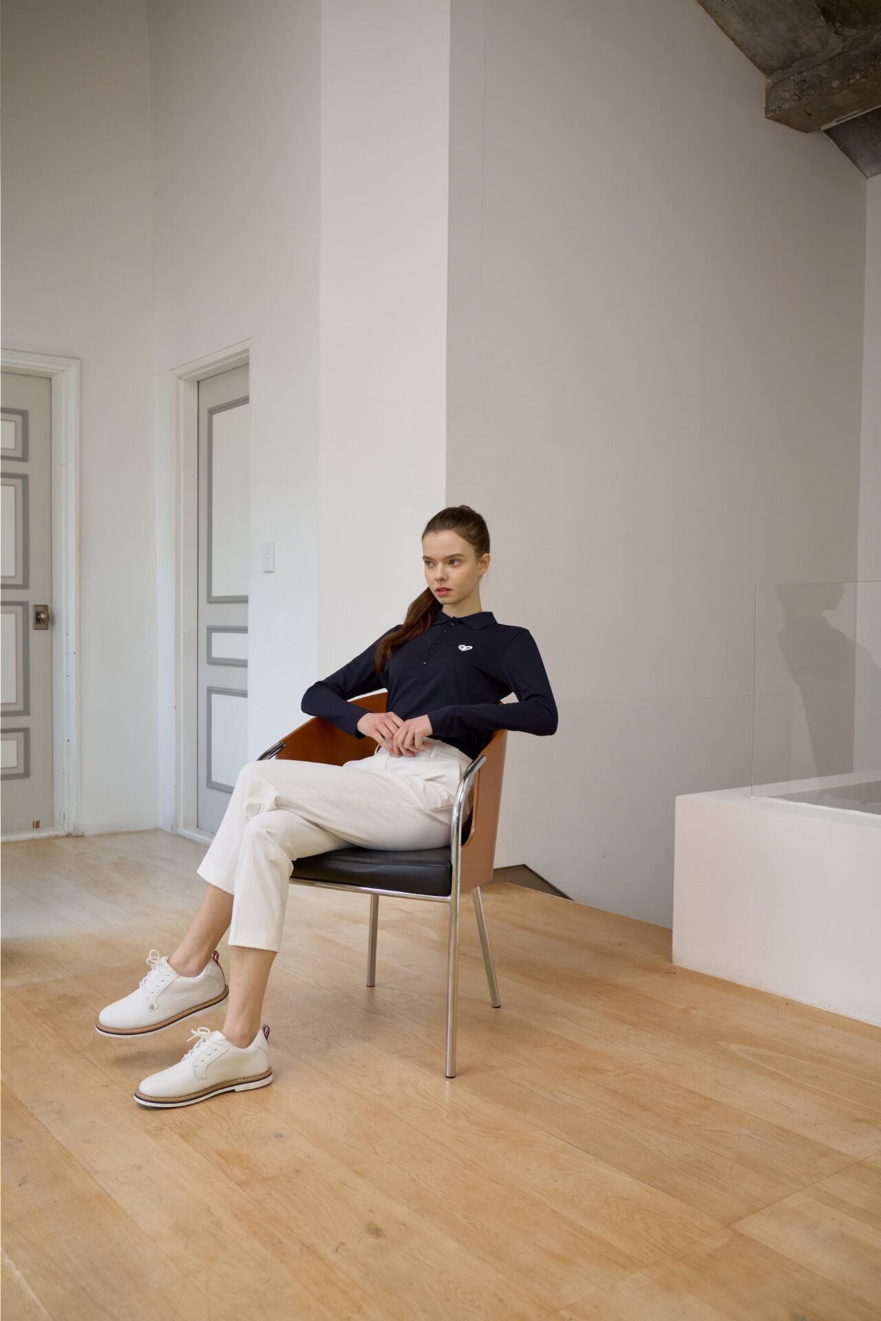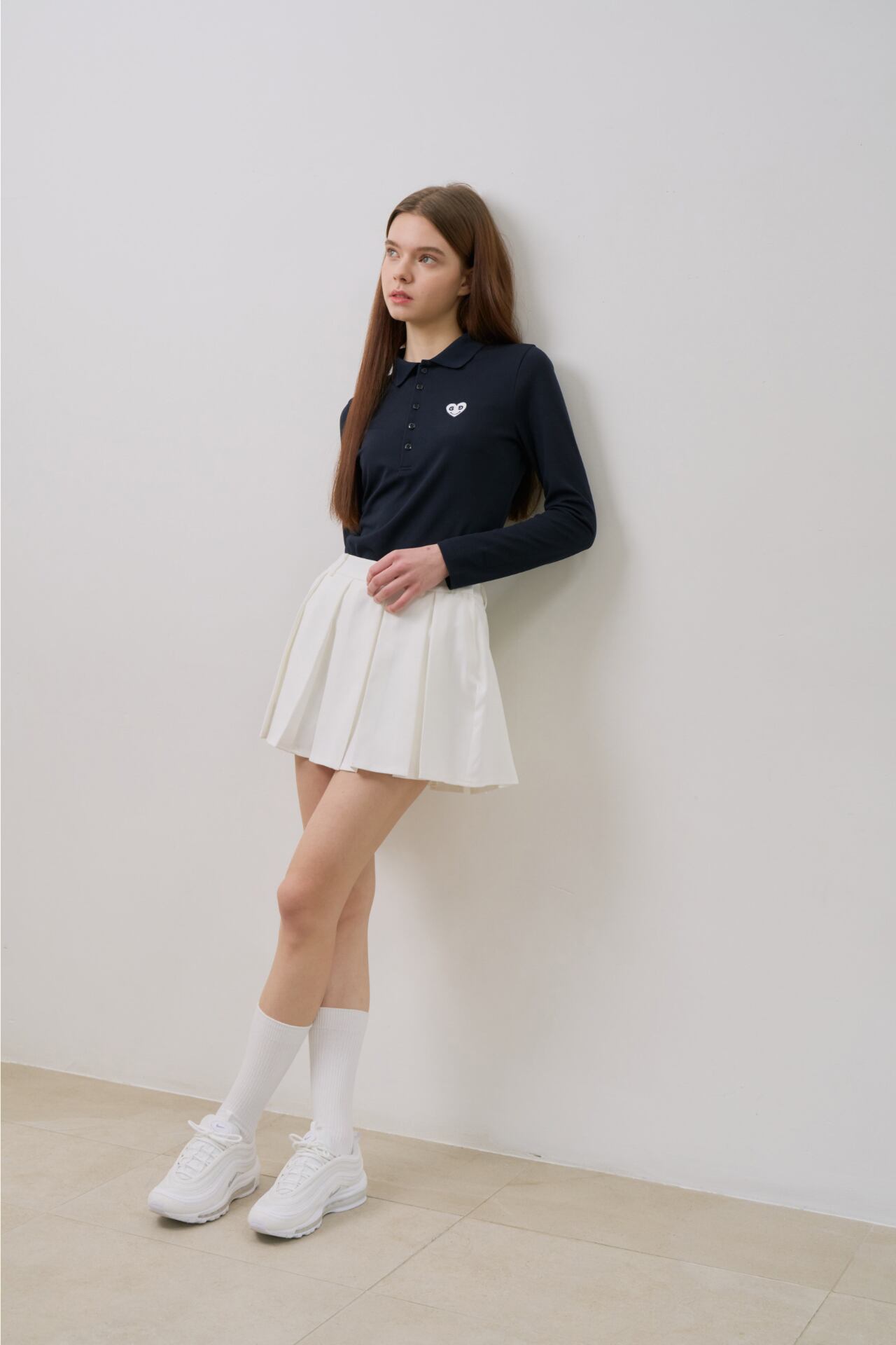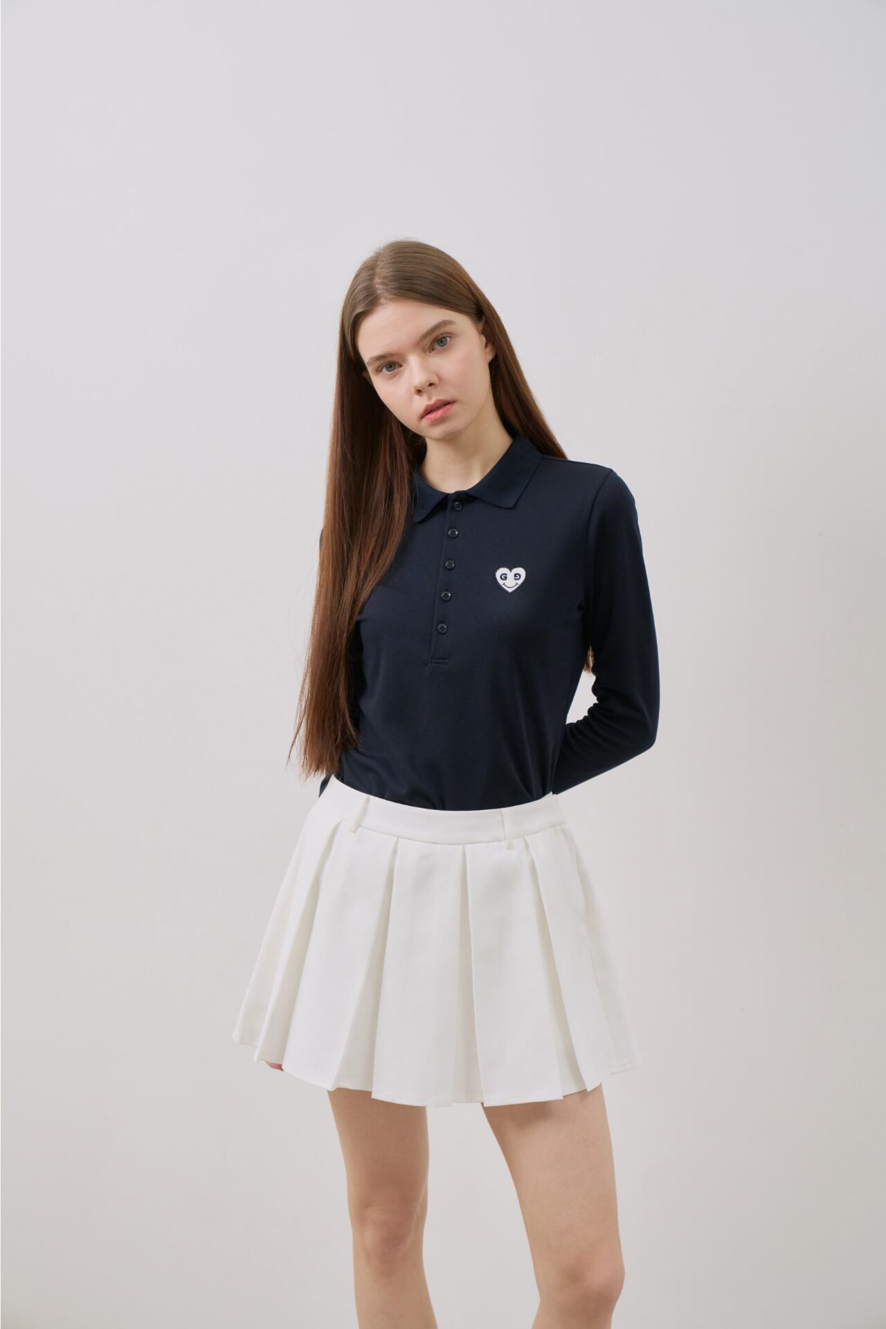 左胸にはGOXOのアイコニックなスマイルハートロゴをあしらい、遊び心溢れるアクセントに仕上がっています。