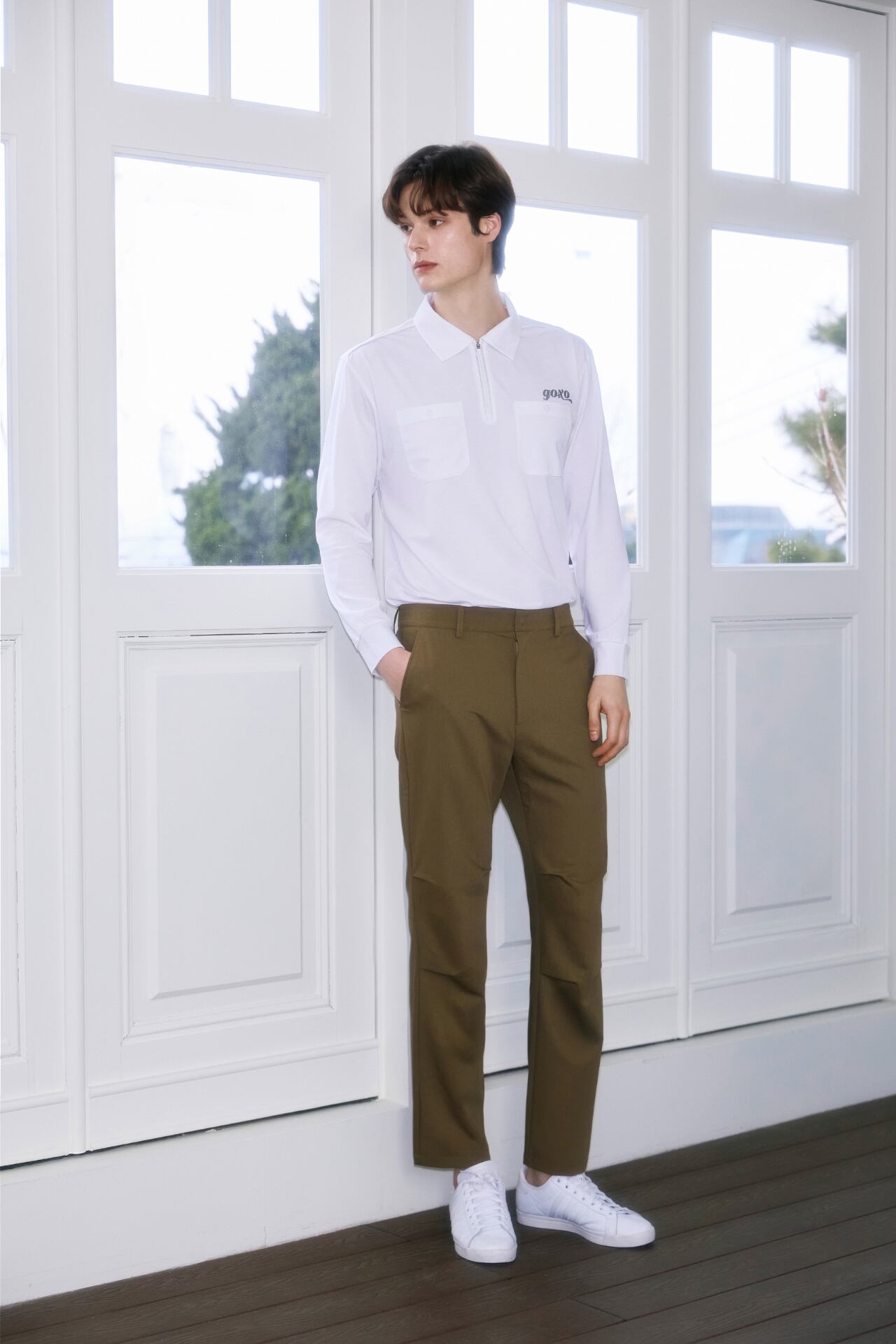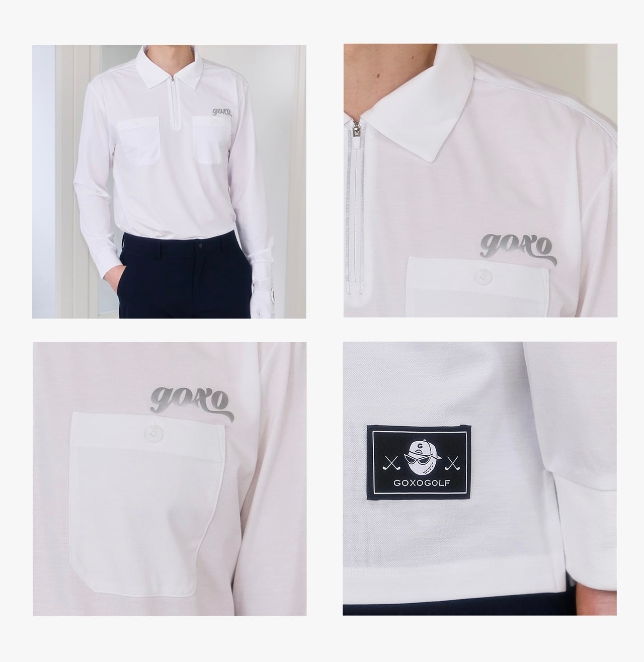 GOXO ゴーエックスオー ロゴツーポケットカラーロングスリーブ ホワイト