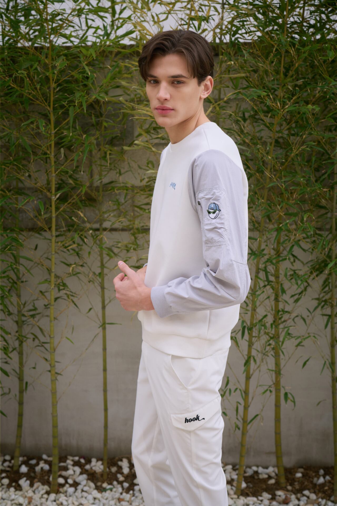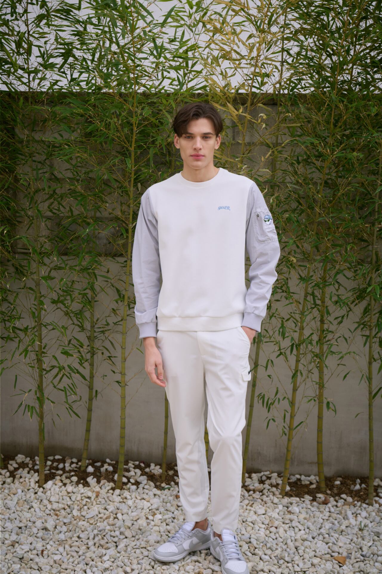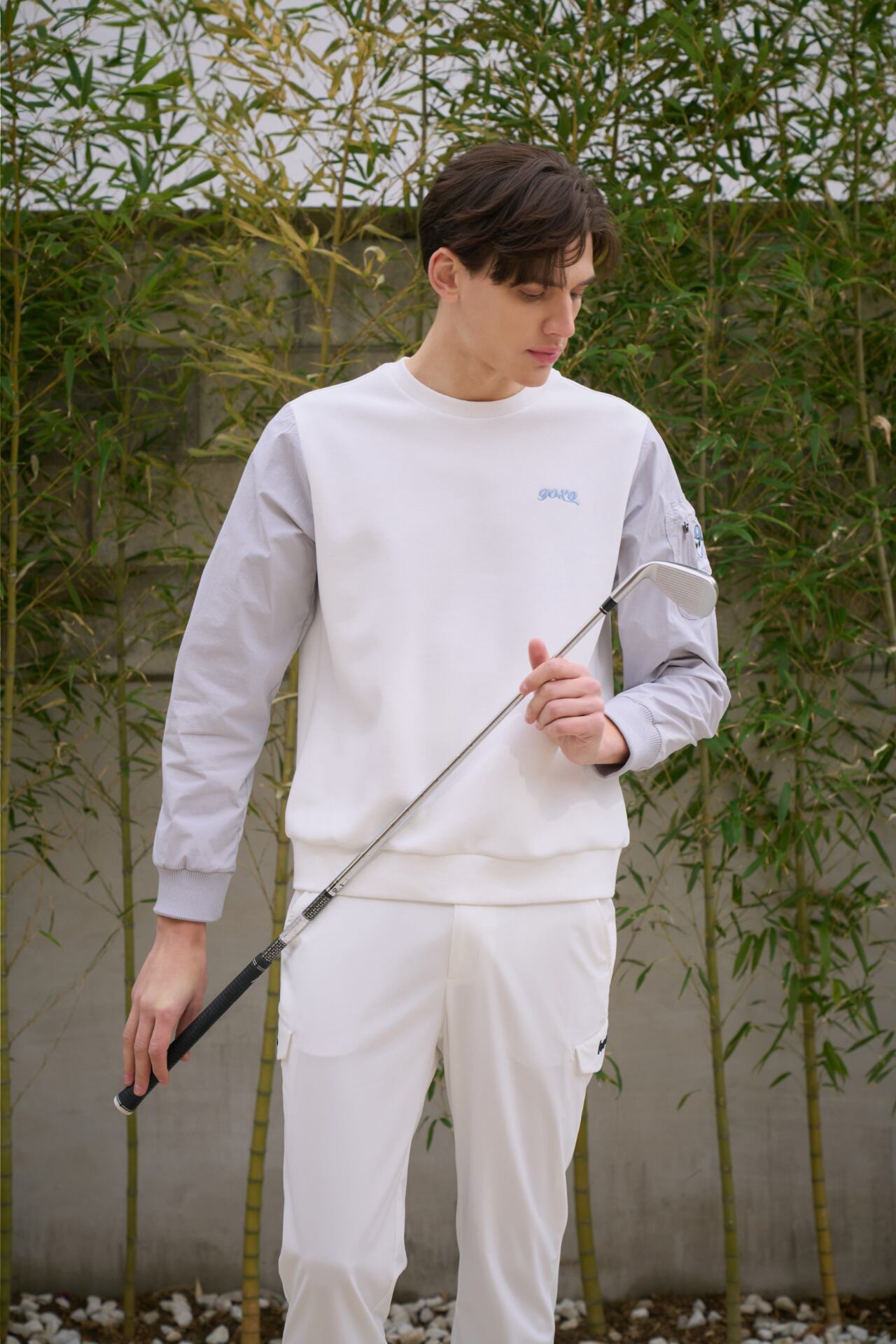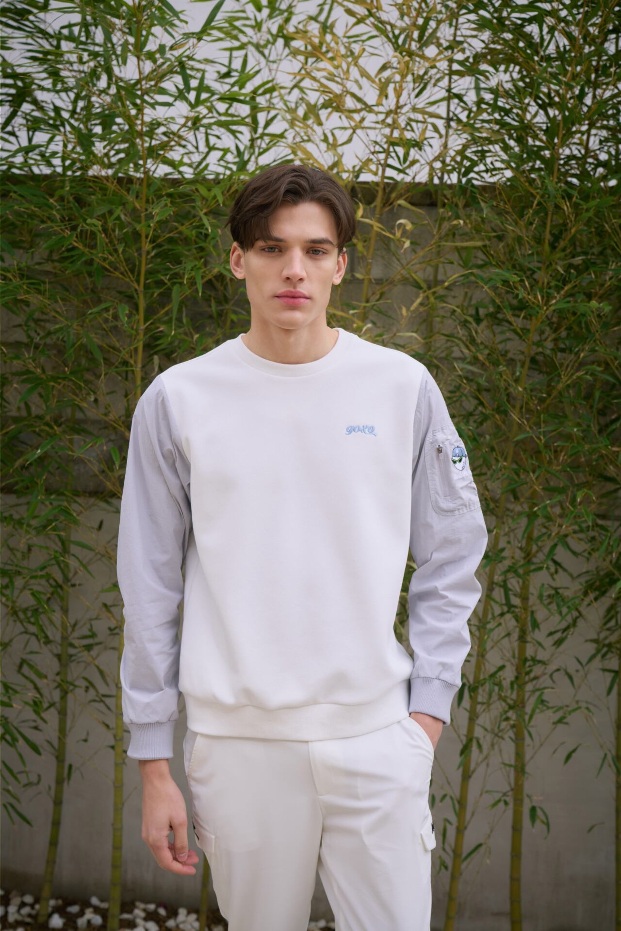 GOXOのスタイリッシュで先進的なデザインのスワッグボールウーブンハイブリッドTシャツです。
