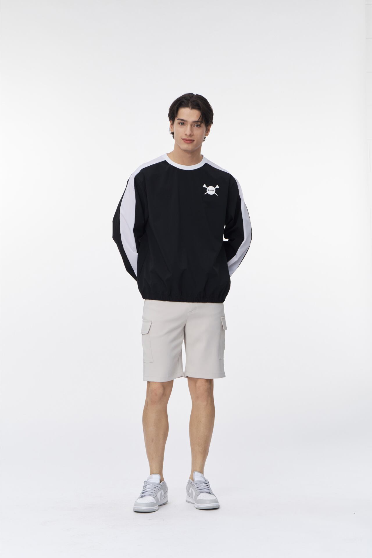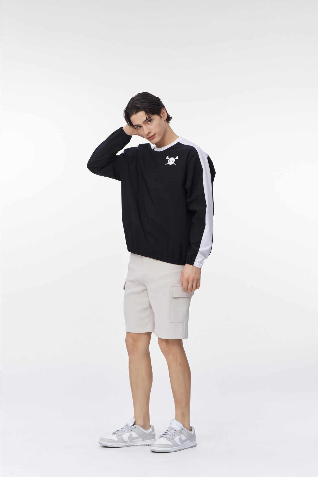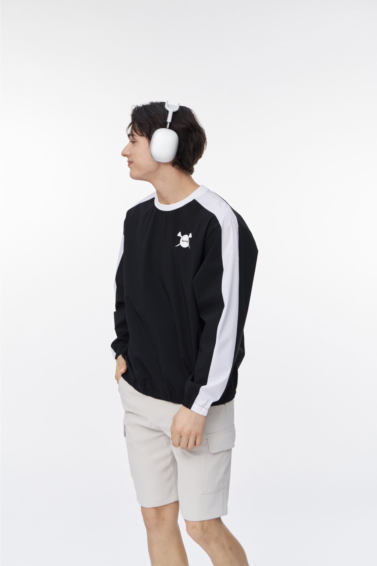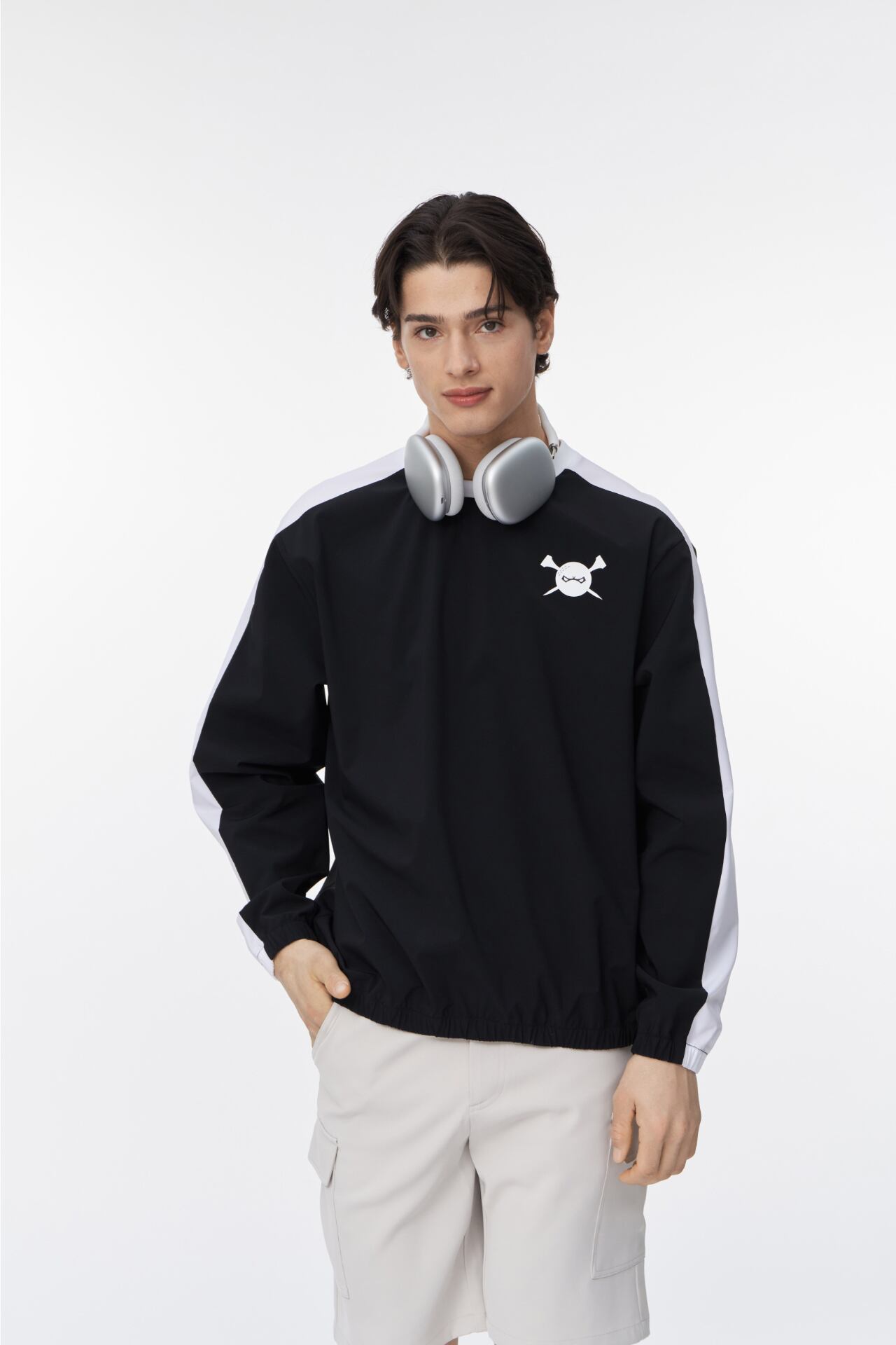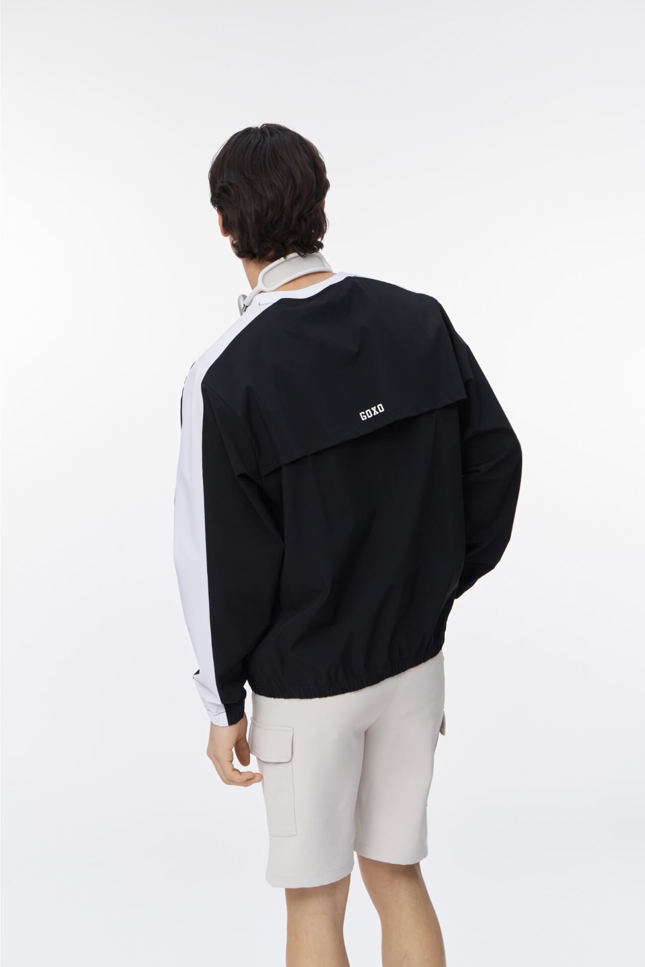 GOXOの洗練されたデザインが光るライン配色ウーブンマンツーマンです。