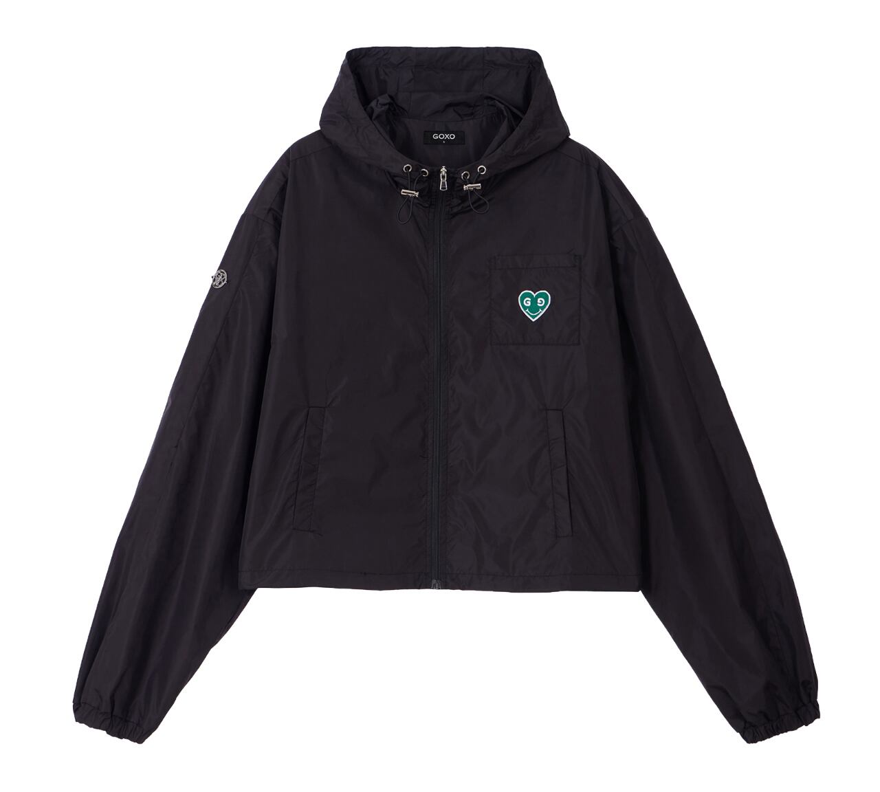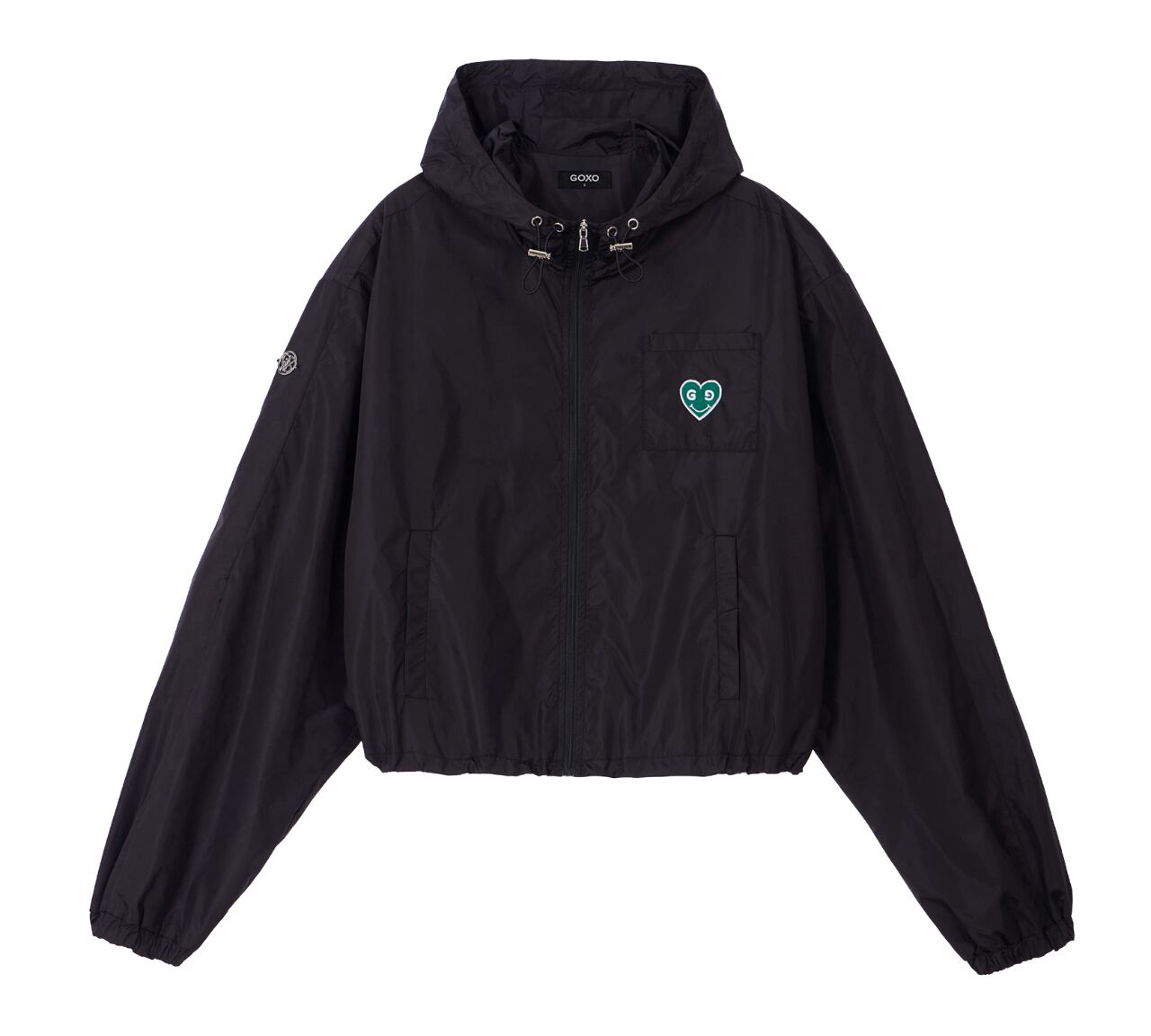 GOXO ゴーエックスオー グリーンハートフードウインドブレーカー ブラック