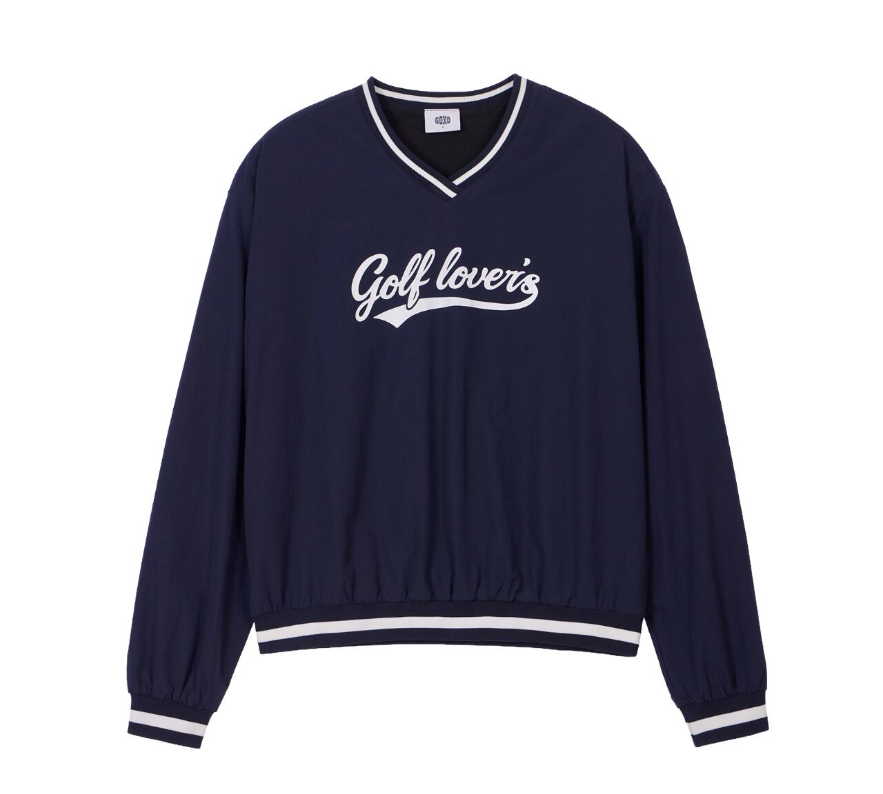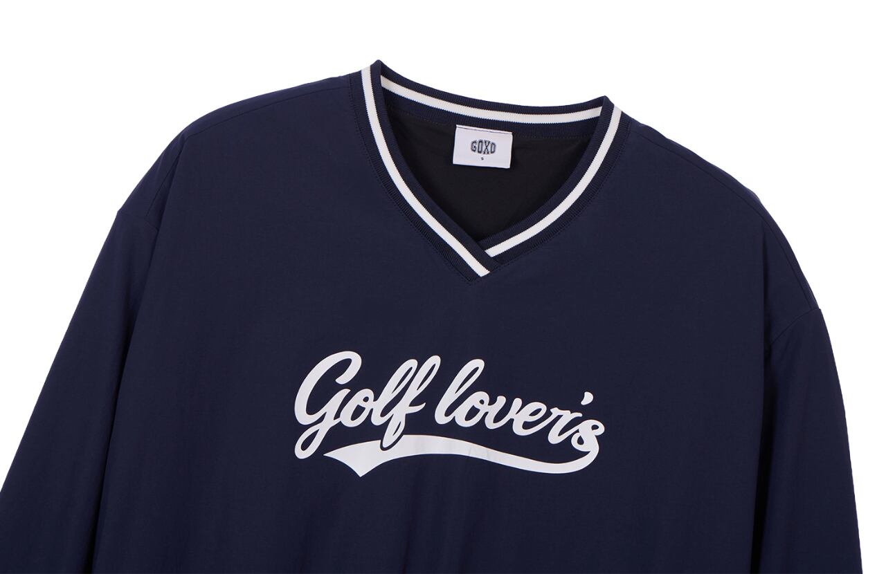 フロントに感覚的なGolf lover'sレタリングプリンティングを加えてクラシックながらも軽快なムードを演出したVネックマンツーマンです。