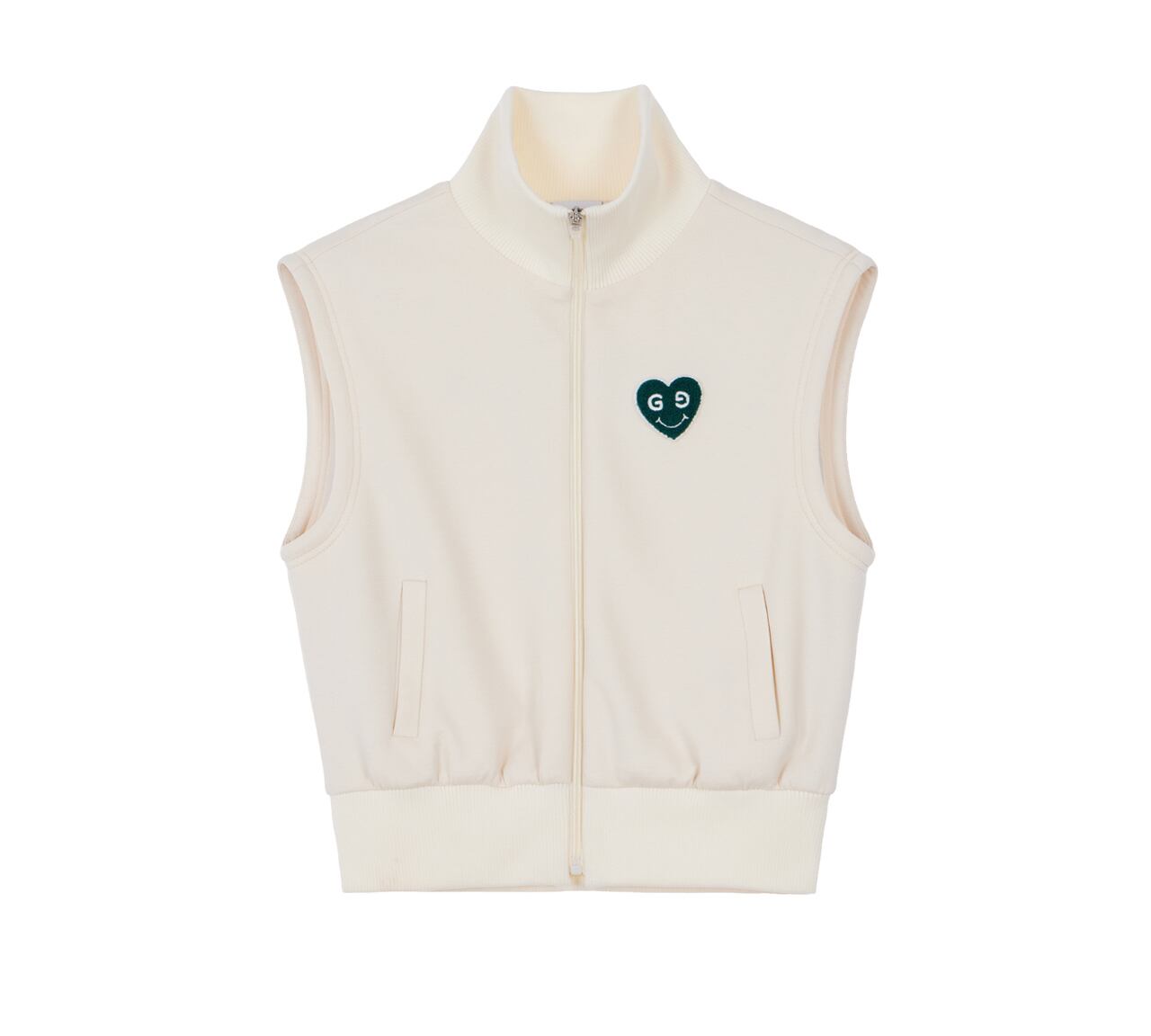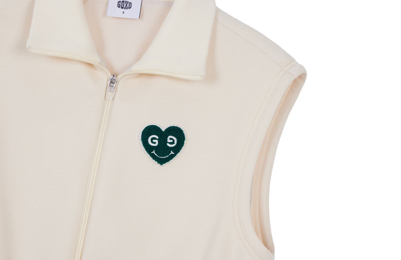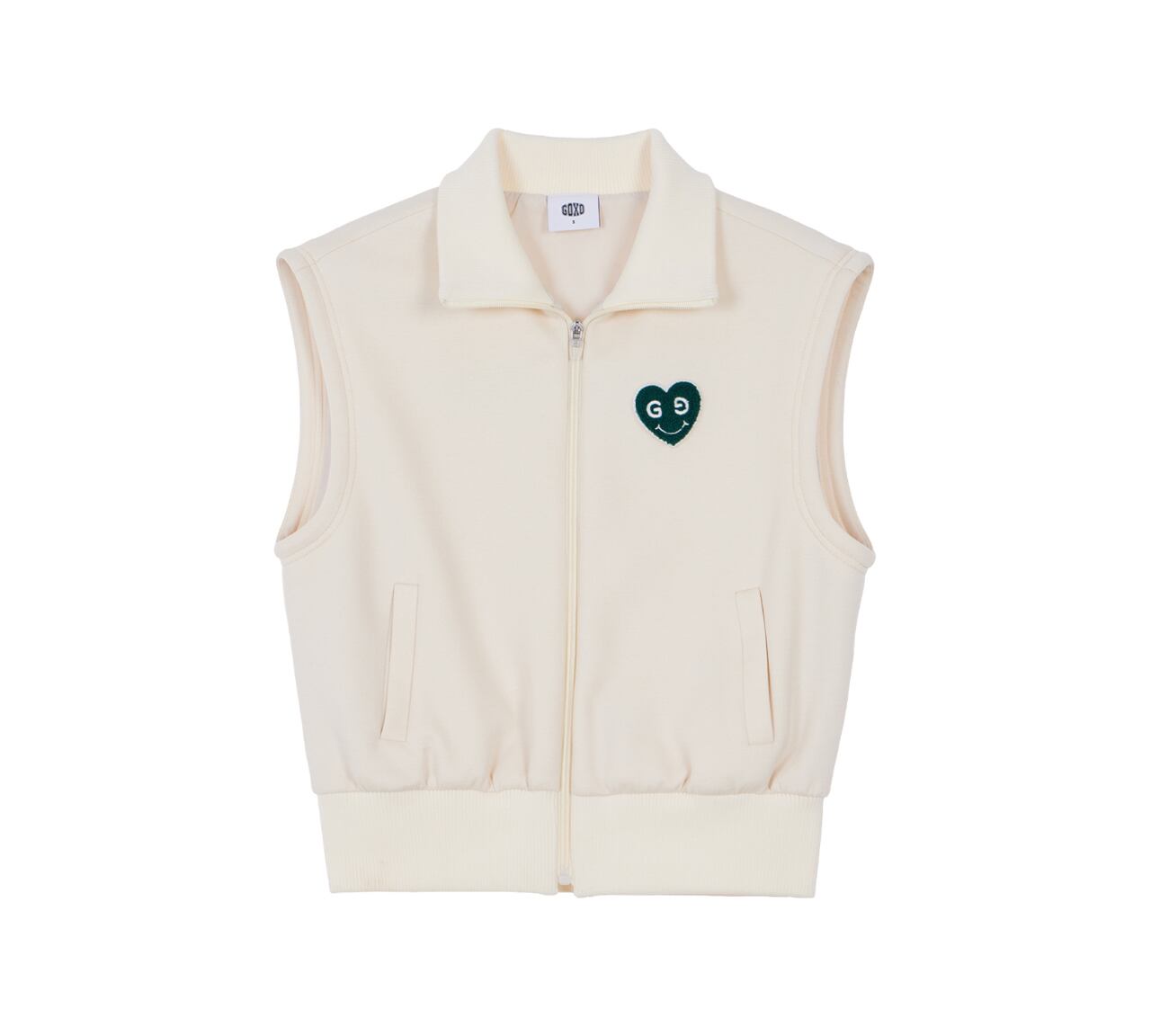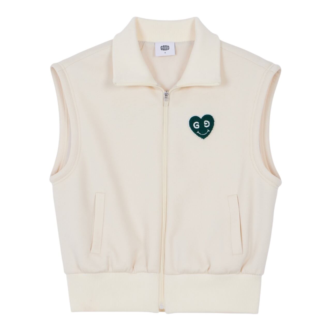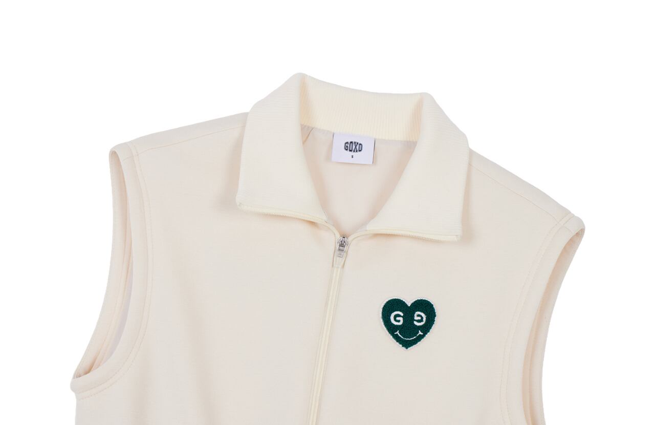 GOXO ゴーエックスオー グリーンハートジップアップベスト クリーム