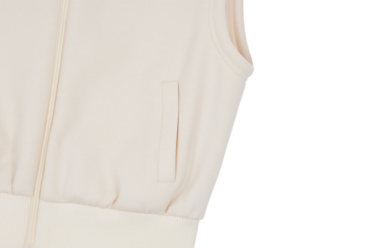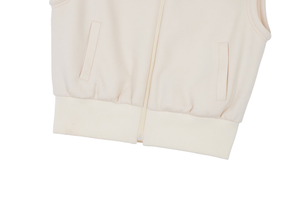 ふかふかのタッチ感が目立つ大丸生地で作られたジップアップベストです。