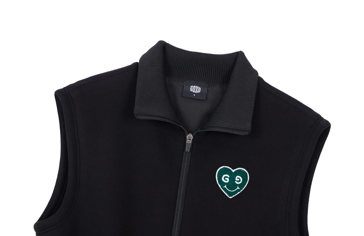 GOXO ゴーエックスオー グリーンハートジップアップベスト ブラック