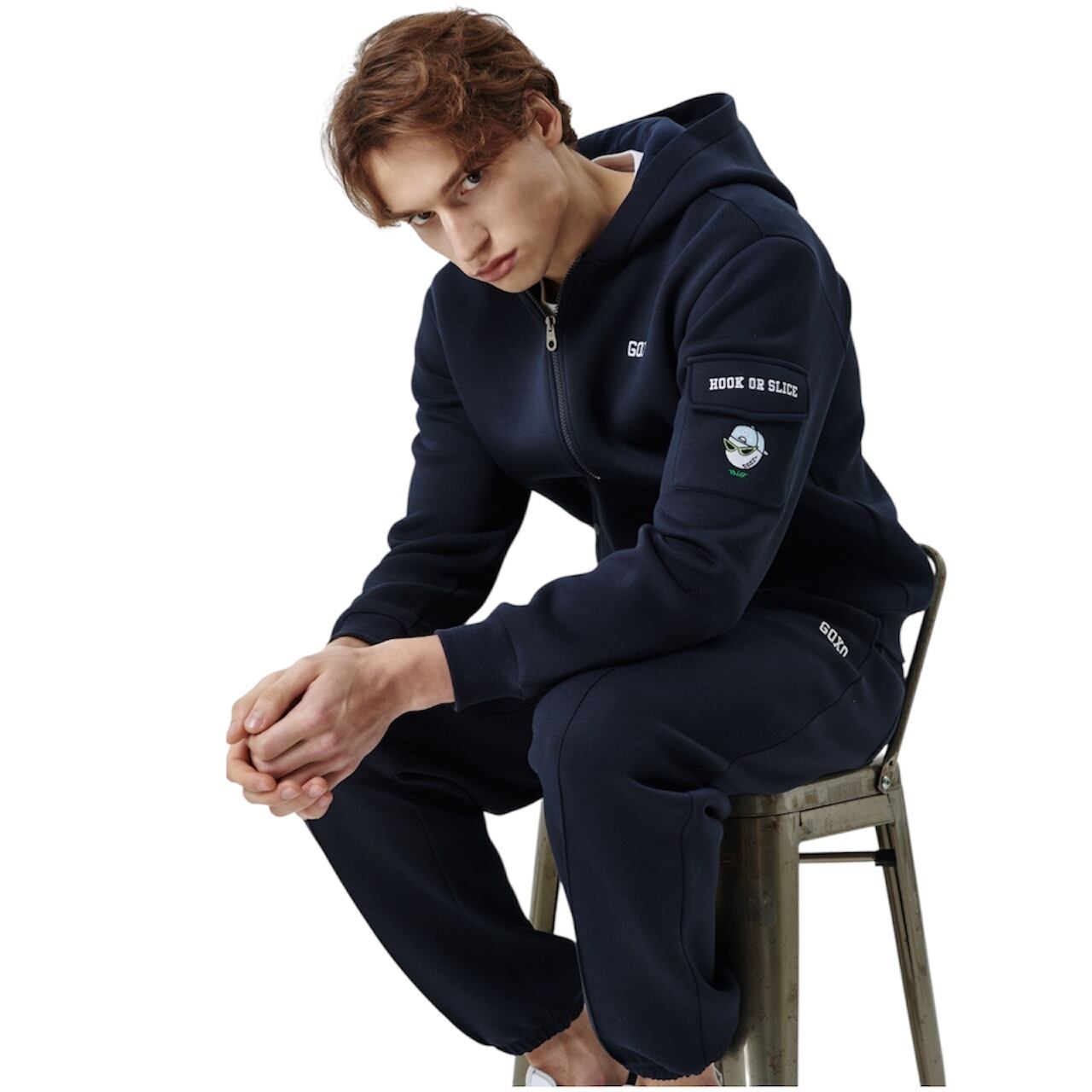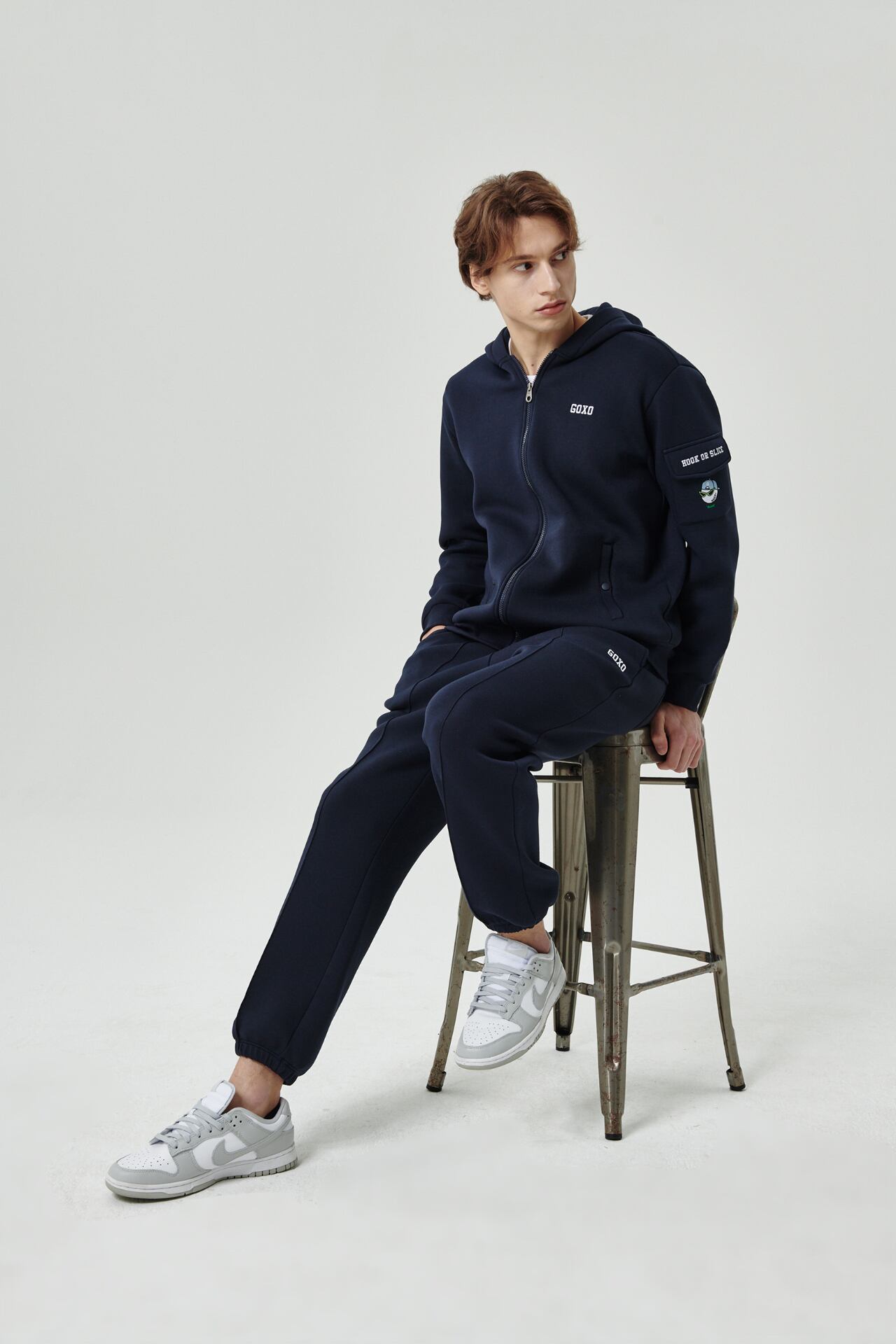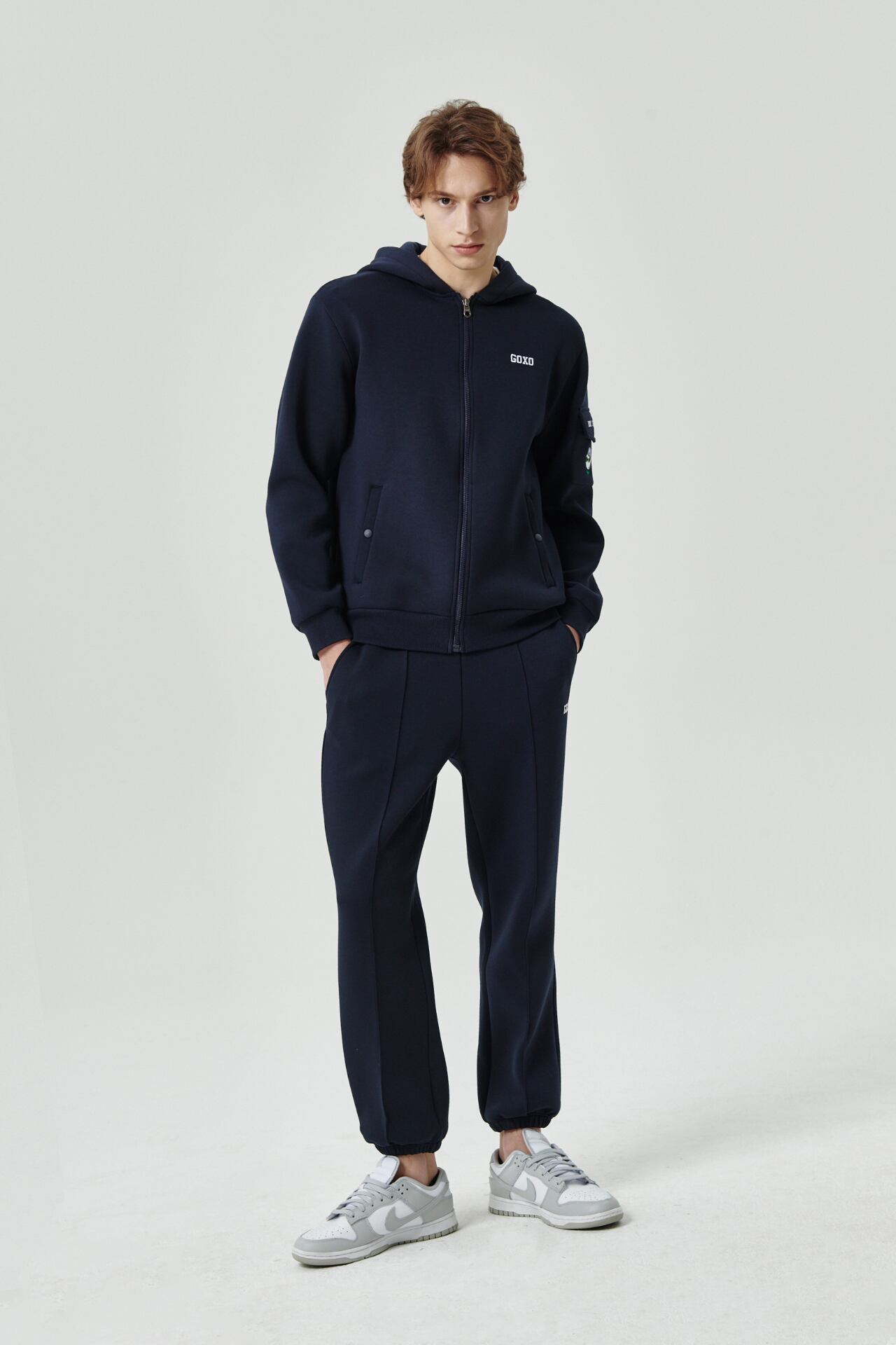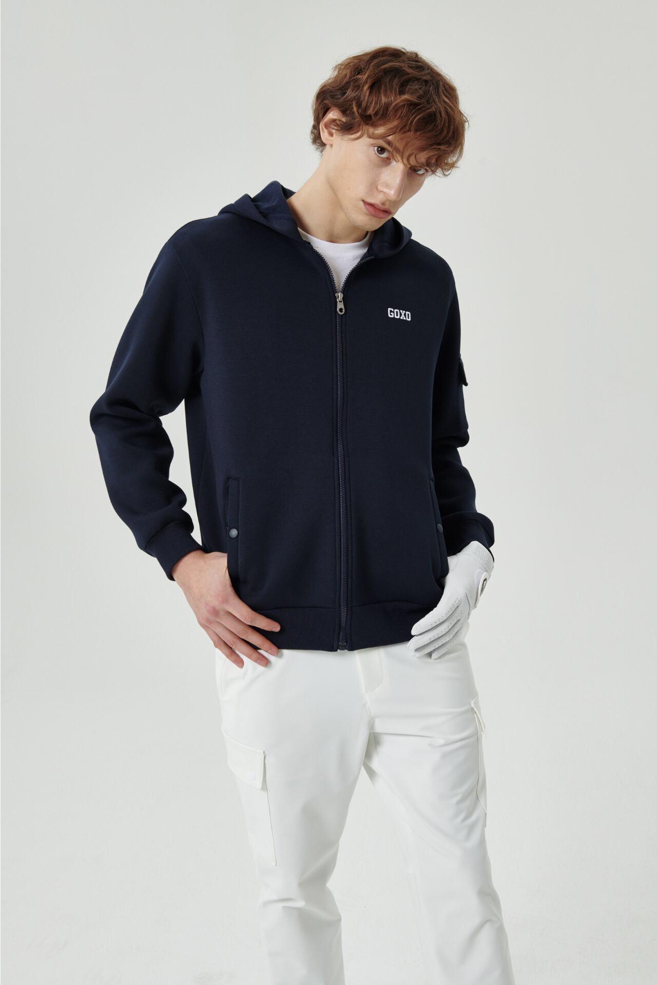 GOXO ゴーエックスオー フックスライスコージーポケットフードジップアップ ネイビー