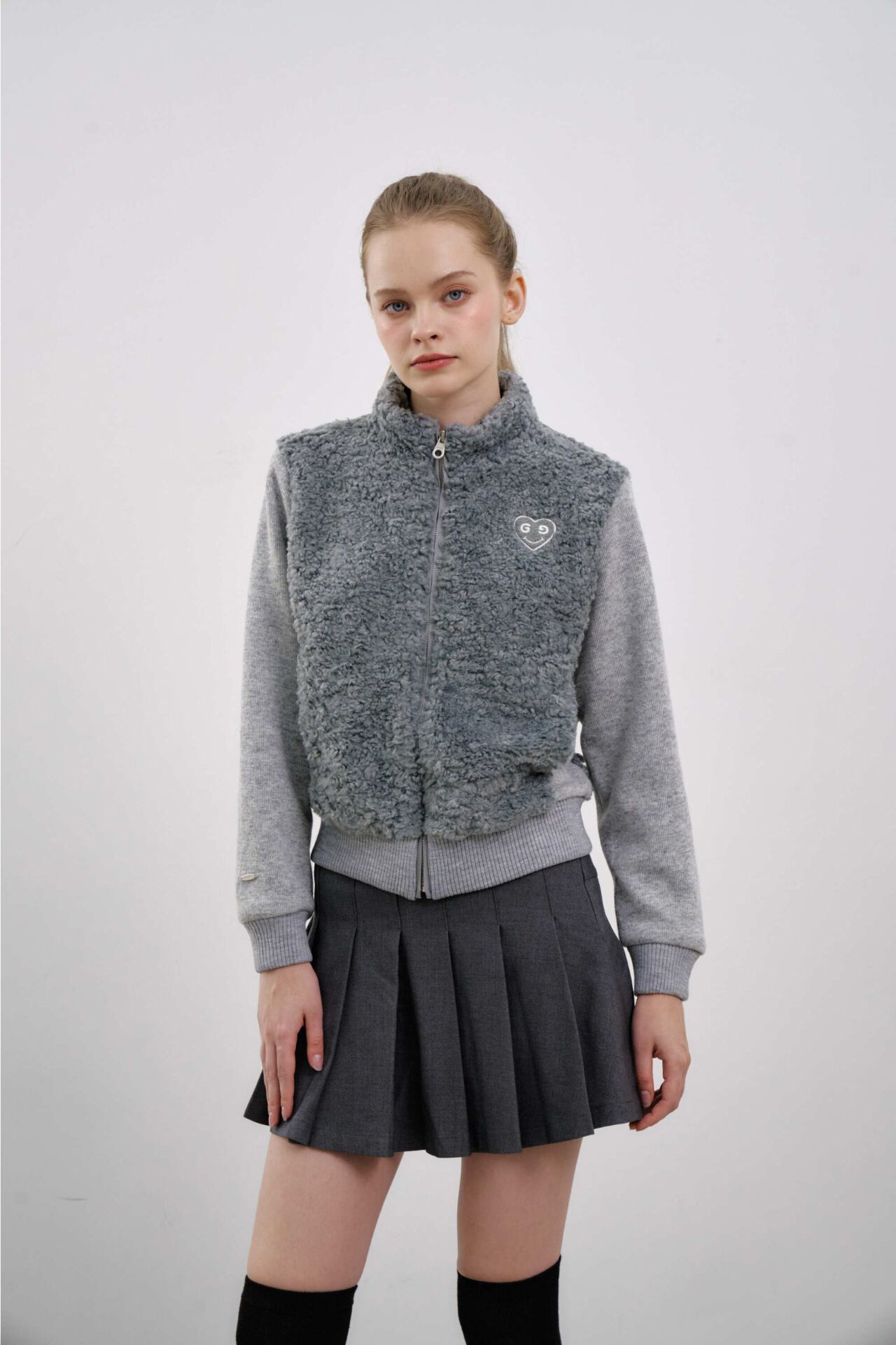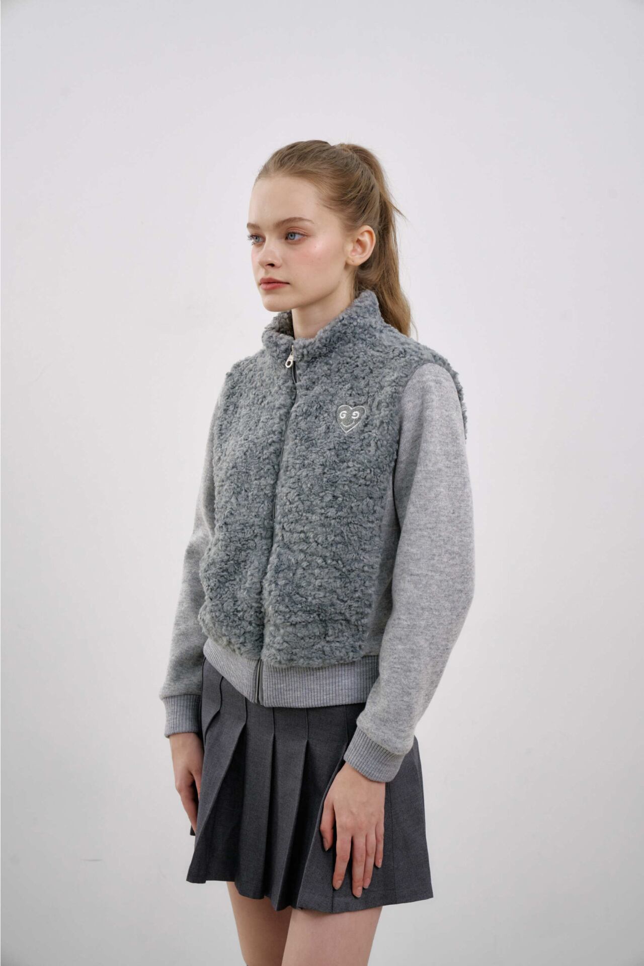 GOXO ゴーエックスオー スマイルハートダンブルジップアップジャンパー グレー