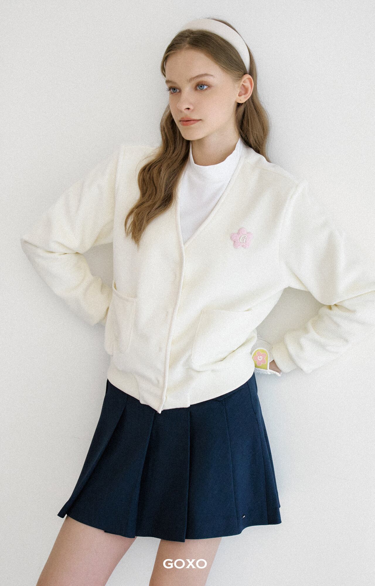 GOXO ゴーエックスオー ギブミーバディフリースポケットカーディガン クリーム