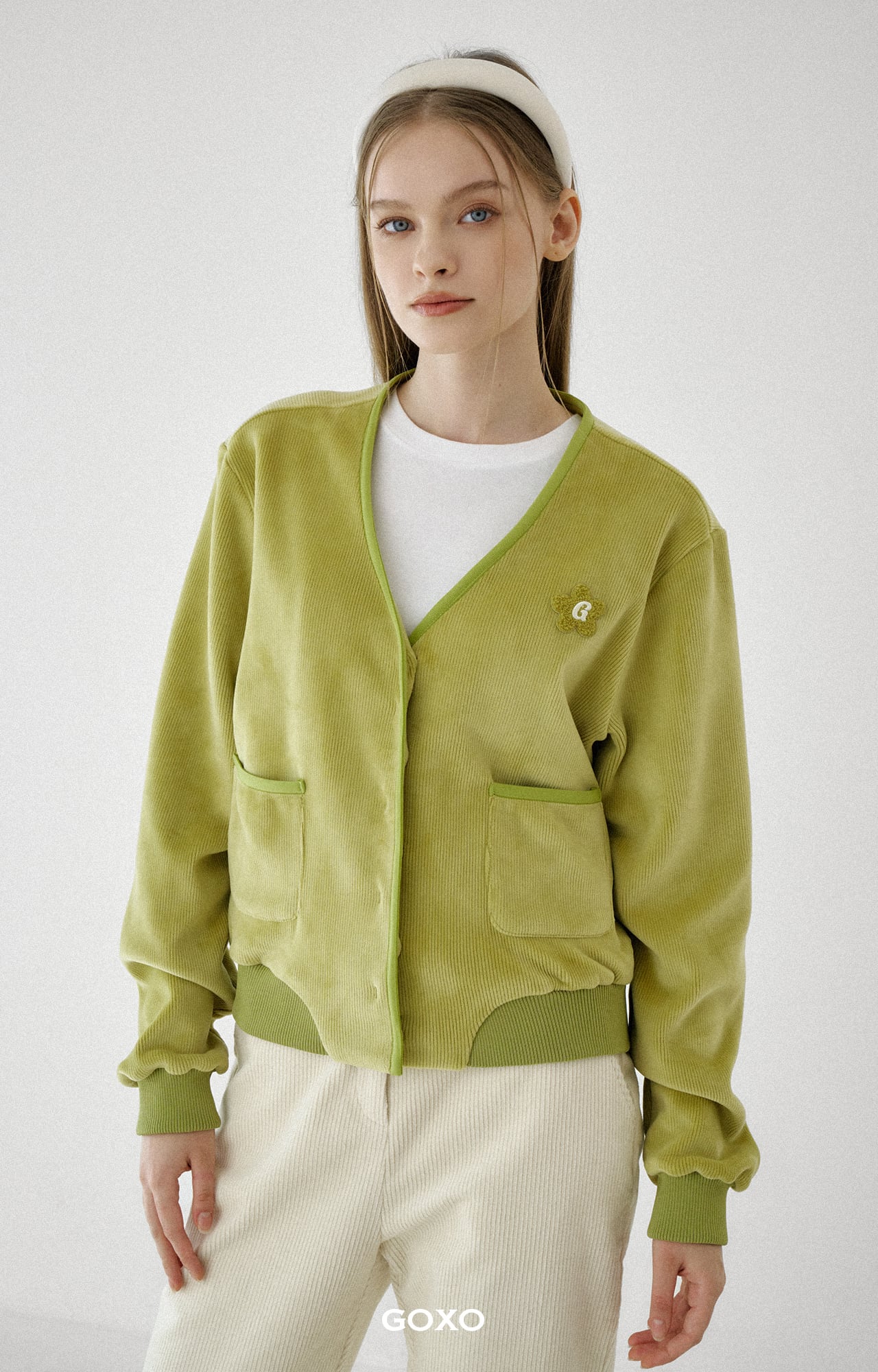 GOXO ゴーエックスオー ギブミーバディフリースポケットカーディガン オリーブ