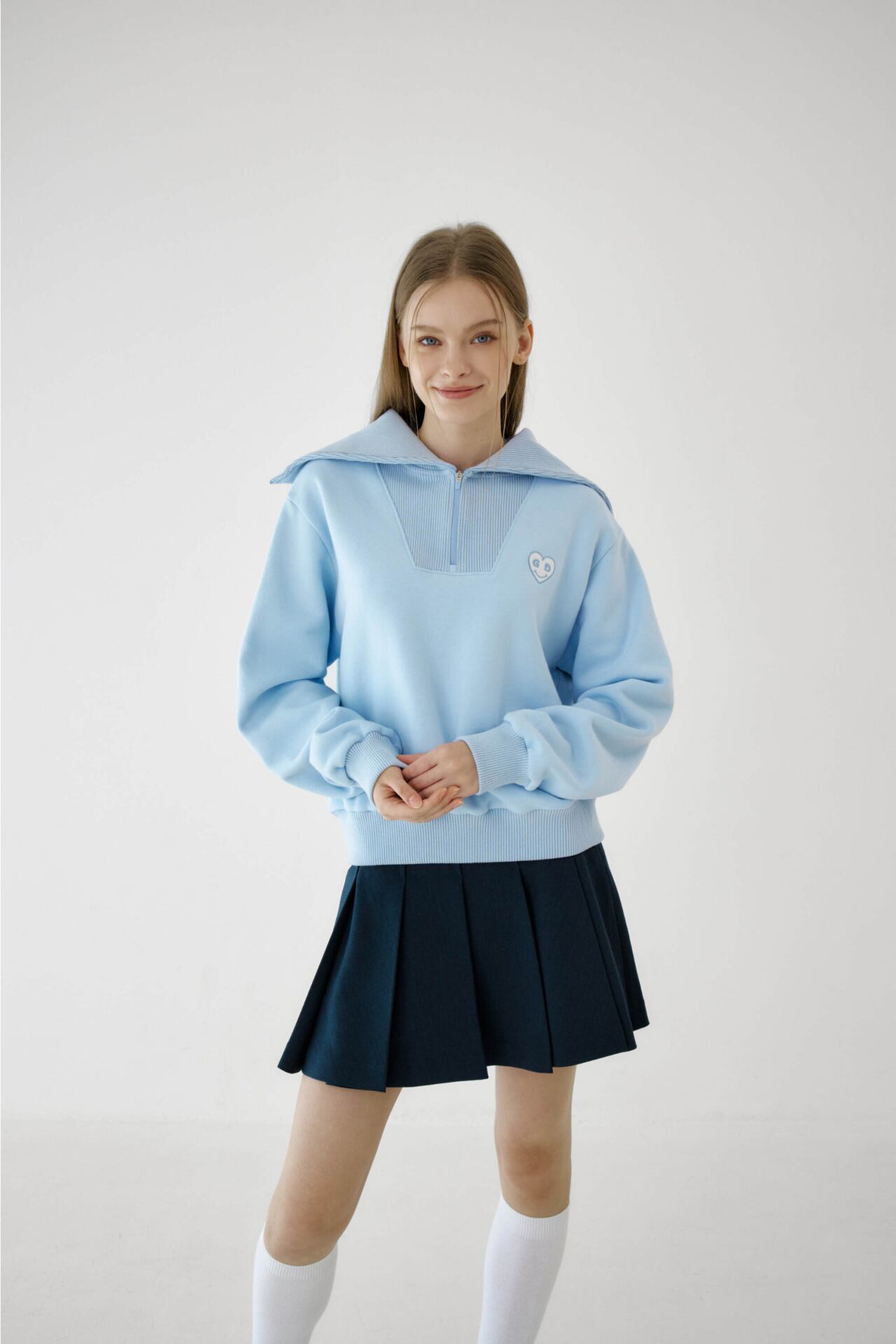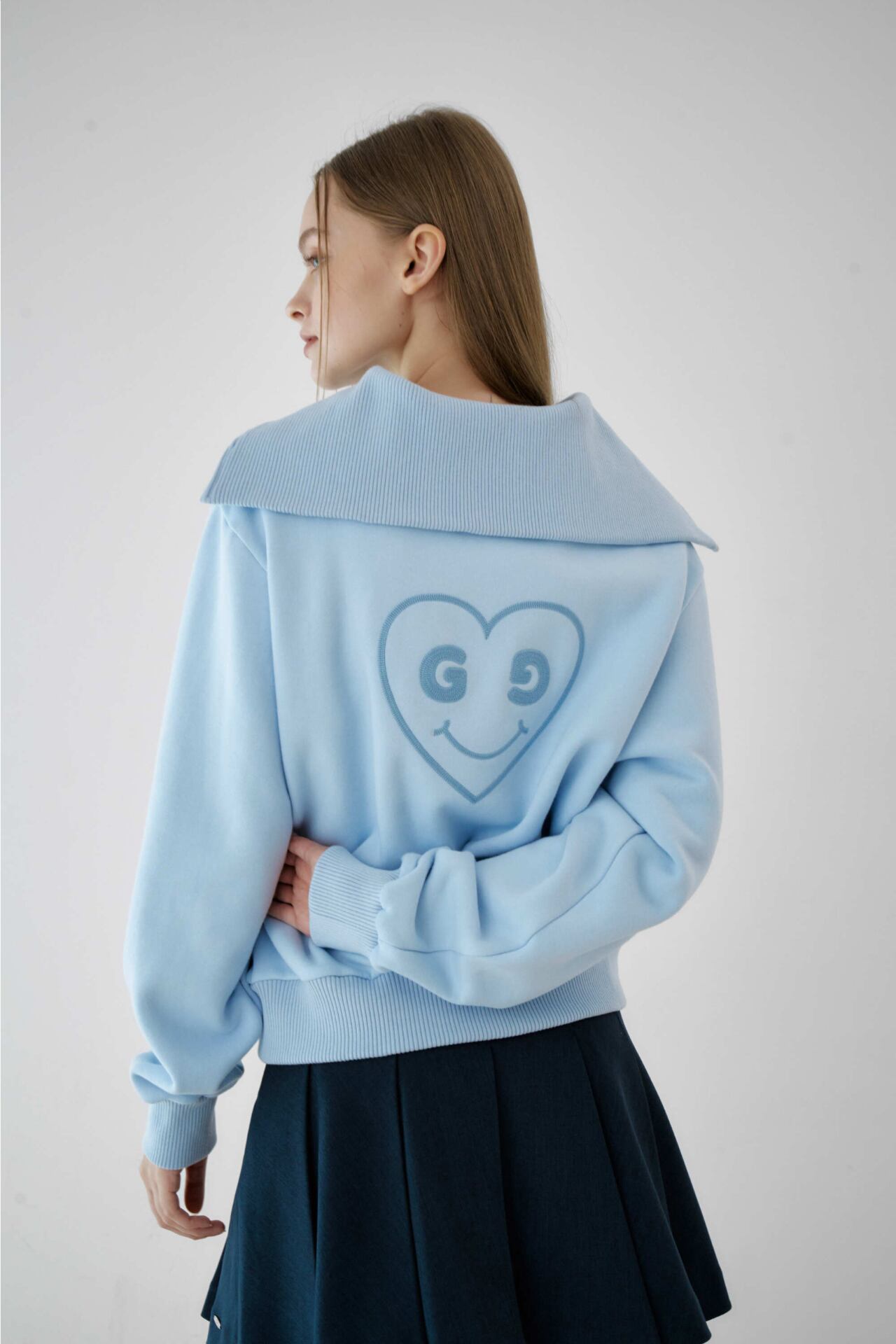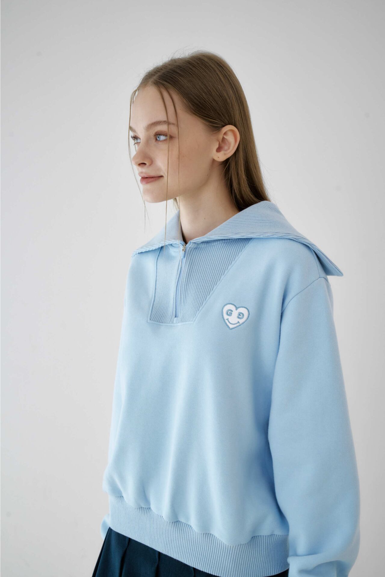 GOXO ゴーエックスオー スマイルハートセーラーカラー起毛マンツーマン ブルー
